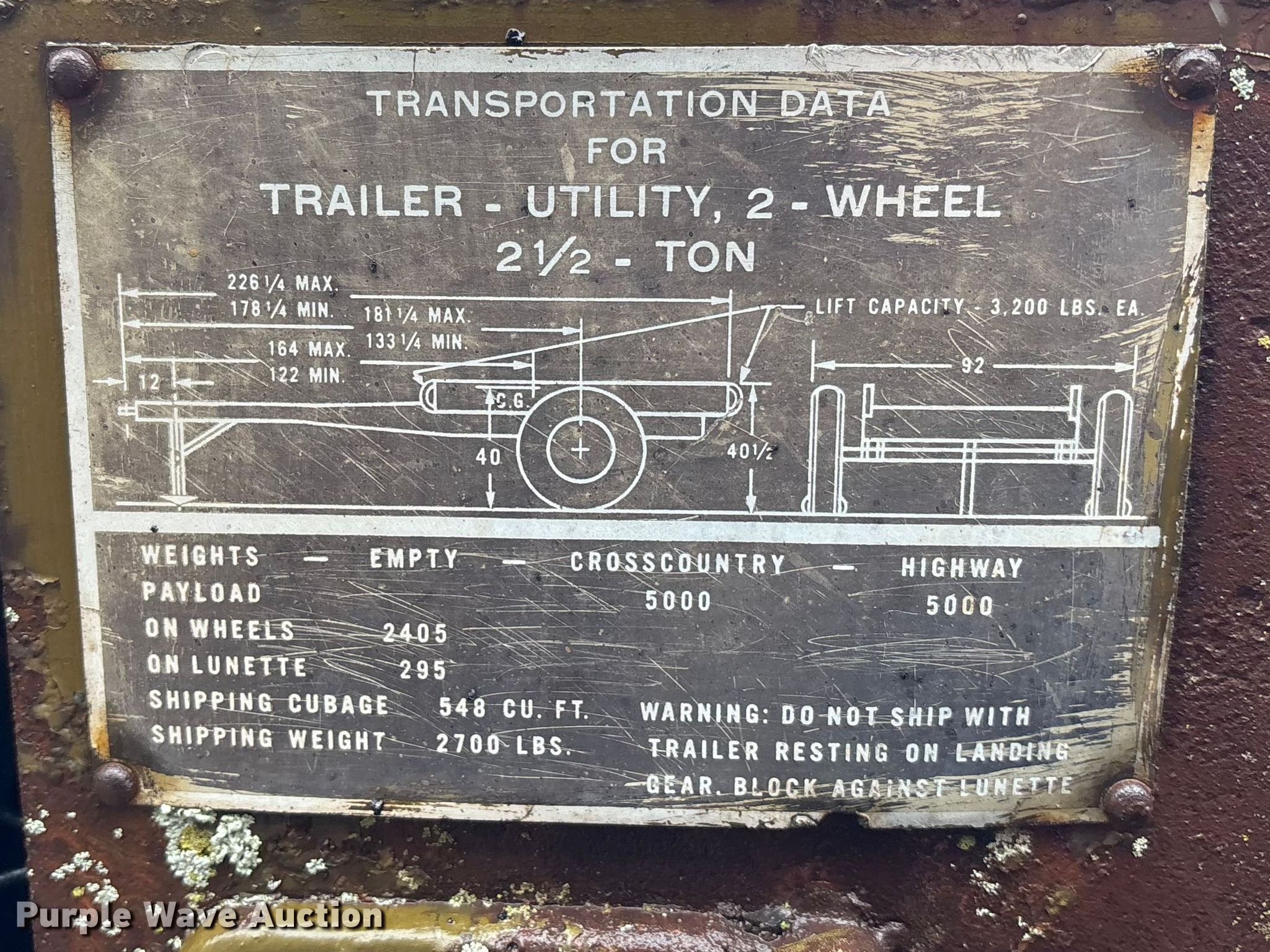 1964 SS LOADCRAFT M-11 utility trailer. Serial: MB-640553. Dimensions Overall Length: 185", Width: 96". Chassis Hitch: Pintle, Landing gear: Single, Suspension: Spring, GVWR: 7,580 lbs. Tires Steel wheels, Size: 9.00R20... Missouri municipality owned asset. No title will be provided. Transfer of ownership documentation will be a notarized bill of sale in accordance with MSR 301.260. Bidders are responsible for verifying if this is sufficient to obtain title in their jurisdiction prior to bidding. Transfer of ownership documentation will be a bill of sale. City of Salisbury, MO. Salisbury, MO 65281