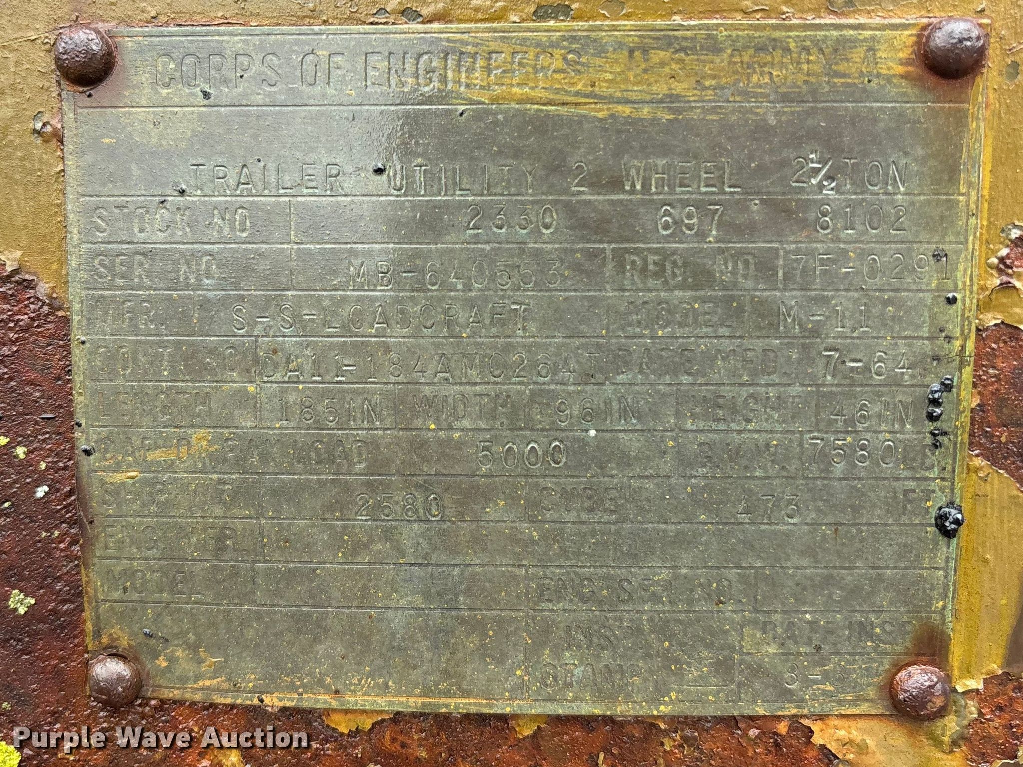 Purple Wave is selling a used Trailer Other in Missouri. This item is a 1964 SS LOADCRAFT M-11 utility trailer with the following: Serial: MB-640553
