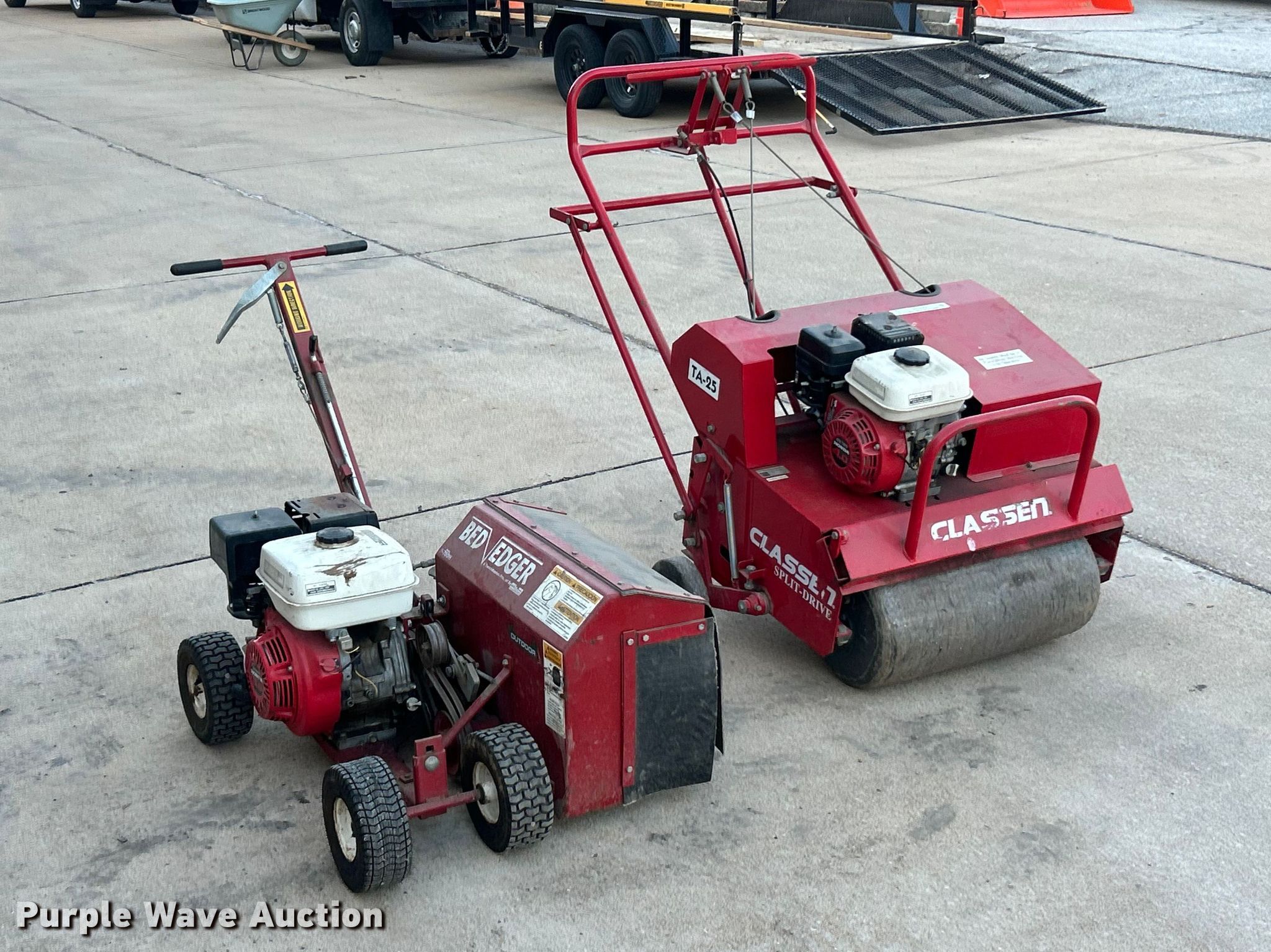 Lawn equipment. Brown F780H Bed edger. Honda engine, Cylinders: 1, Fuel type: Gas. Notes Non-operational unit, Cranks but does not start. Classen TA-25D Split Drive aerator Honda engine, Cylinder: 1, Fuel type: Gas, Width: 24". City of Webster Groves, MO. Webster Groves, MO 63119