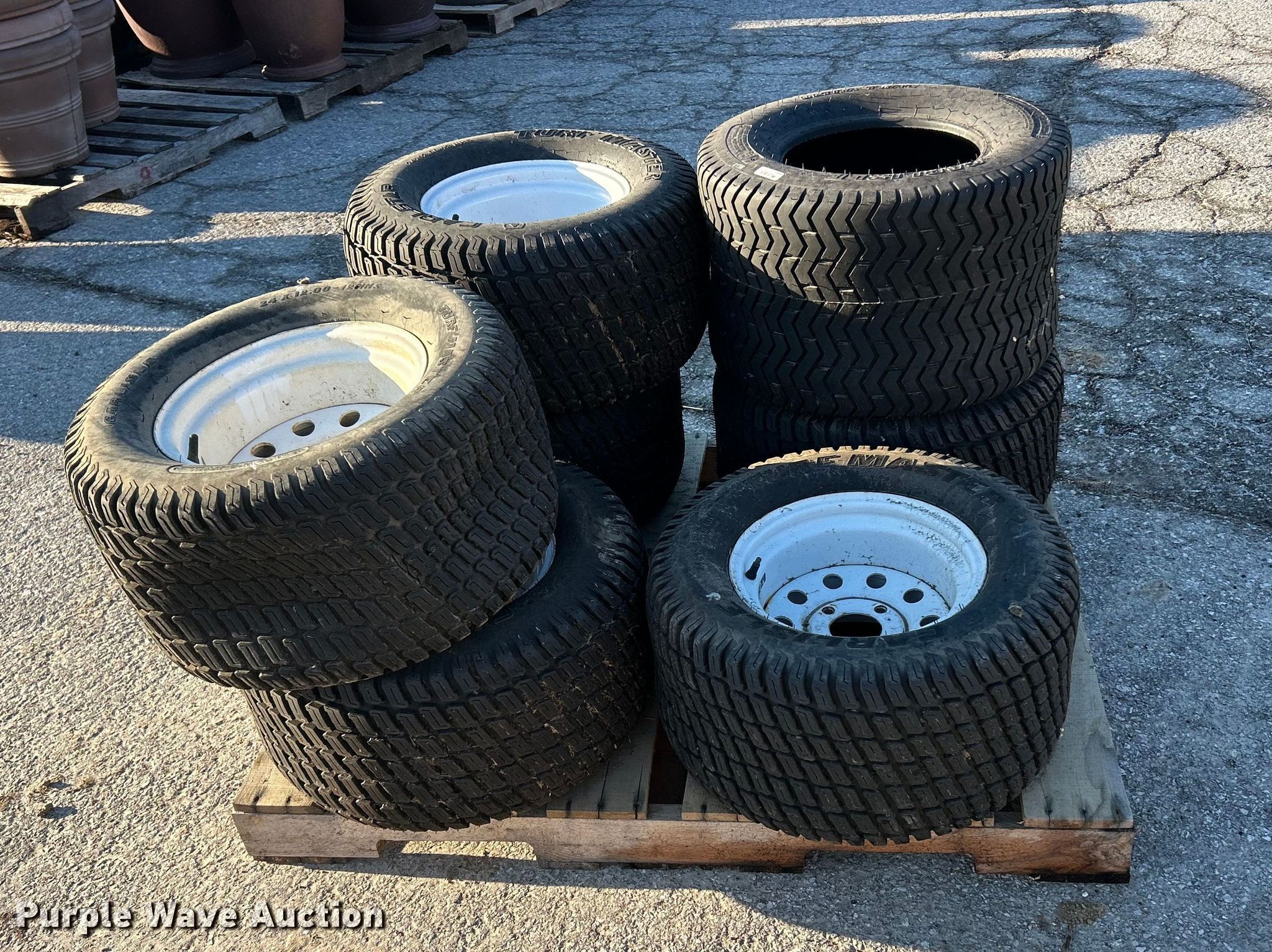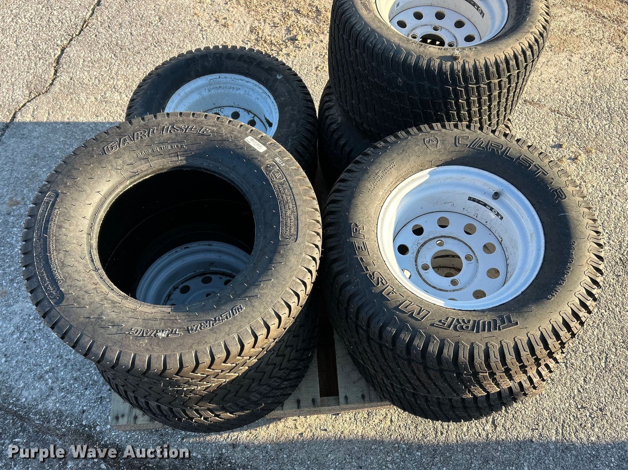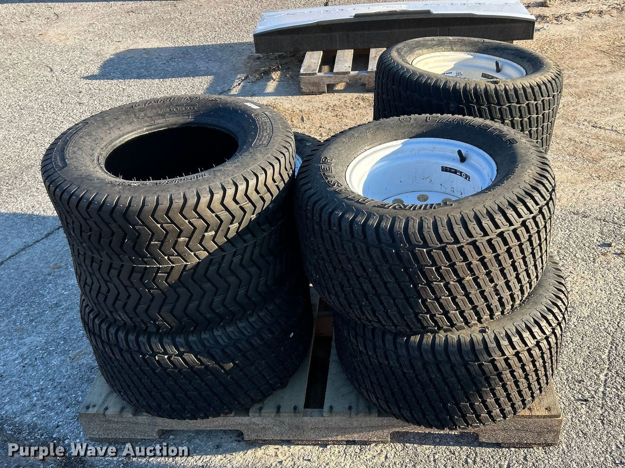 Purple Wave is selling a used Industrial Tires or Tracks in Missouri. This item is a Carlstar mower tires with the following: 24x13.00B12, (6) 24x12.00-12
