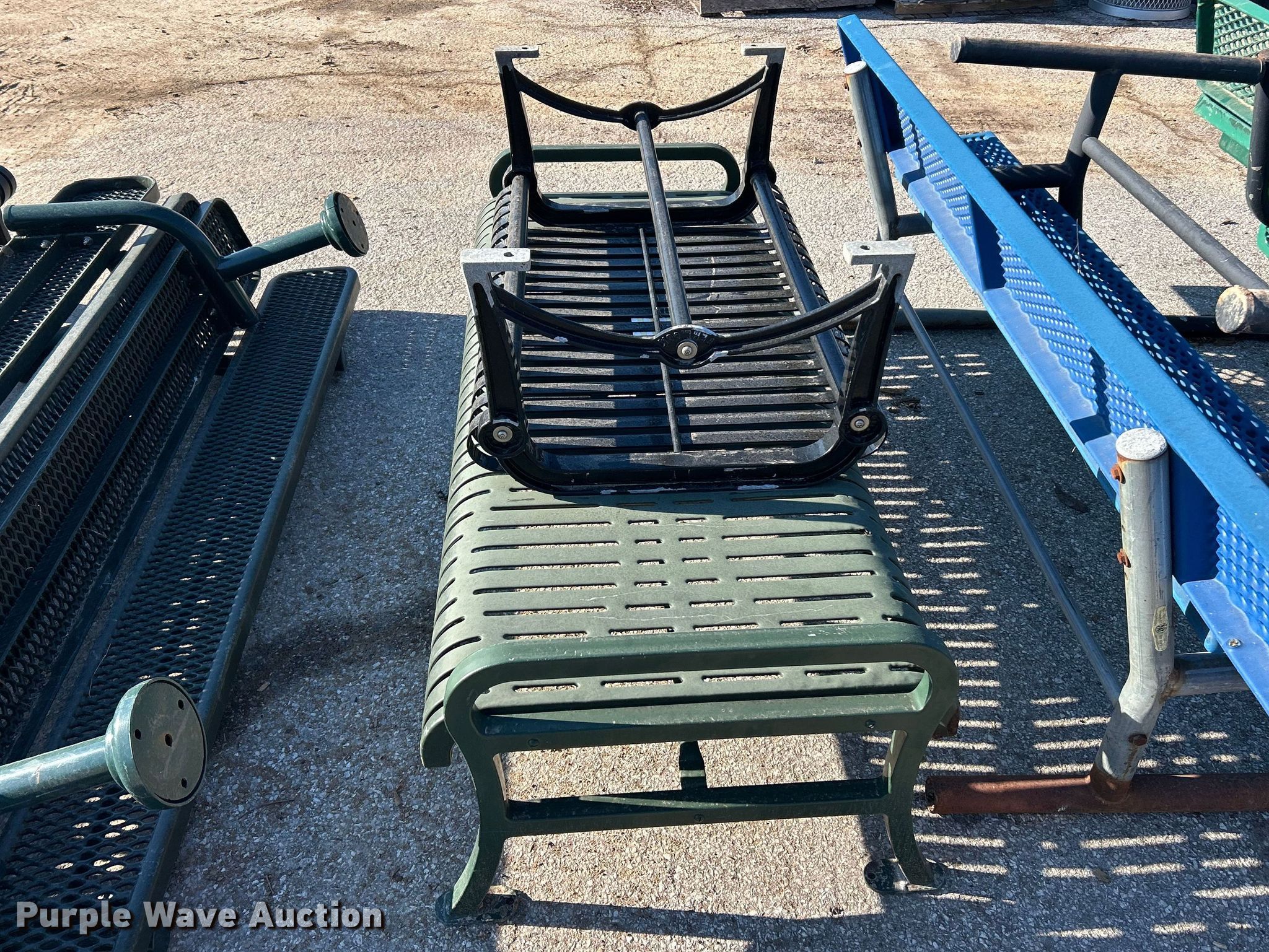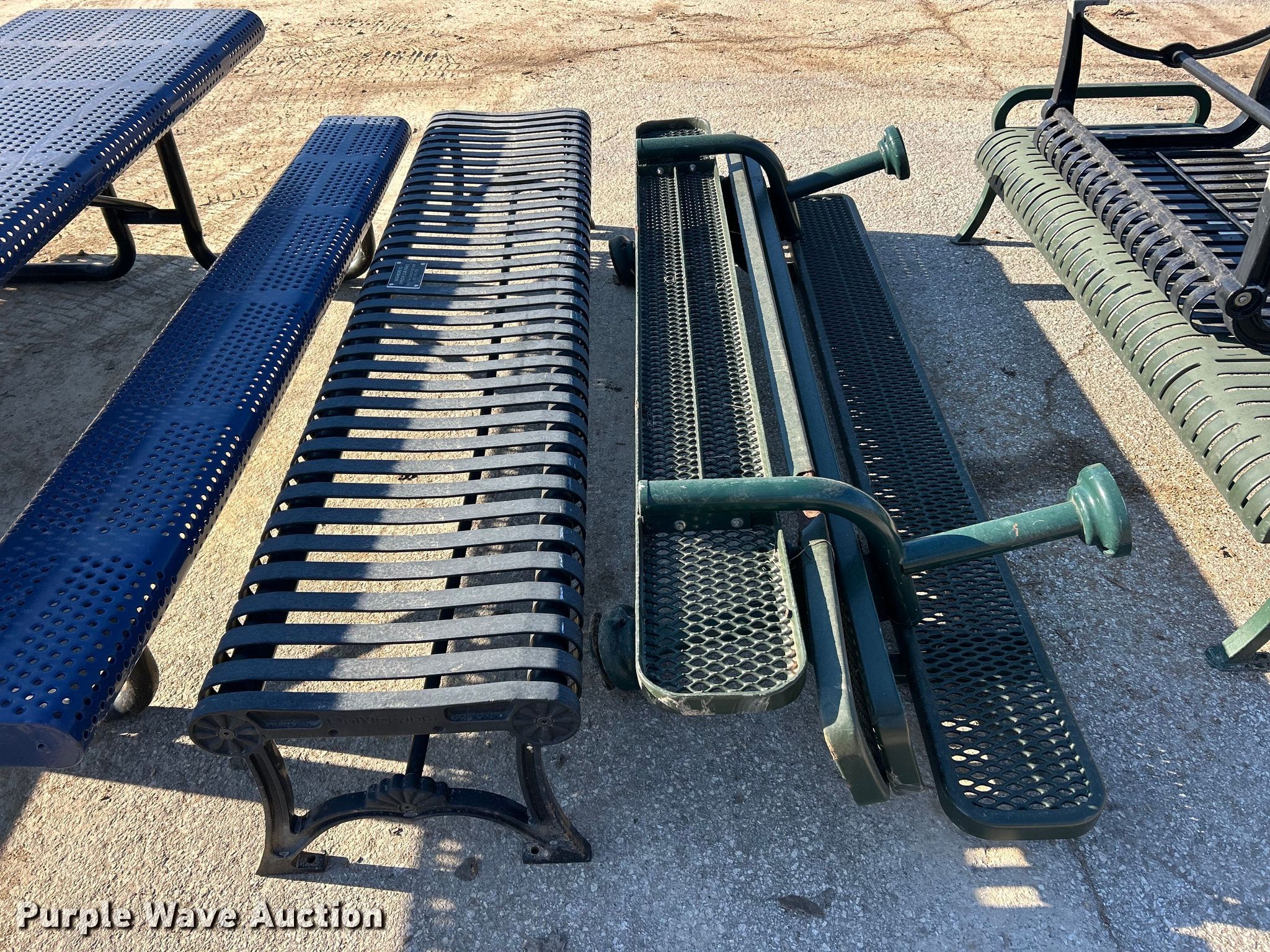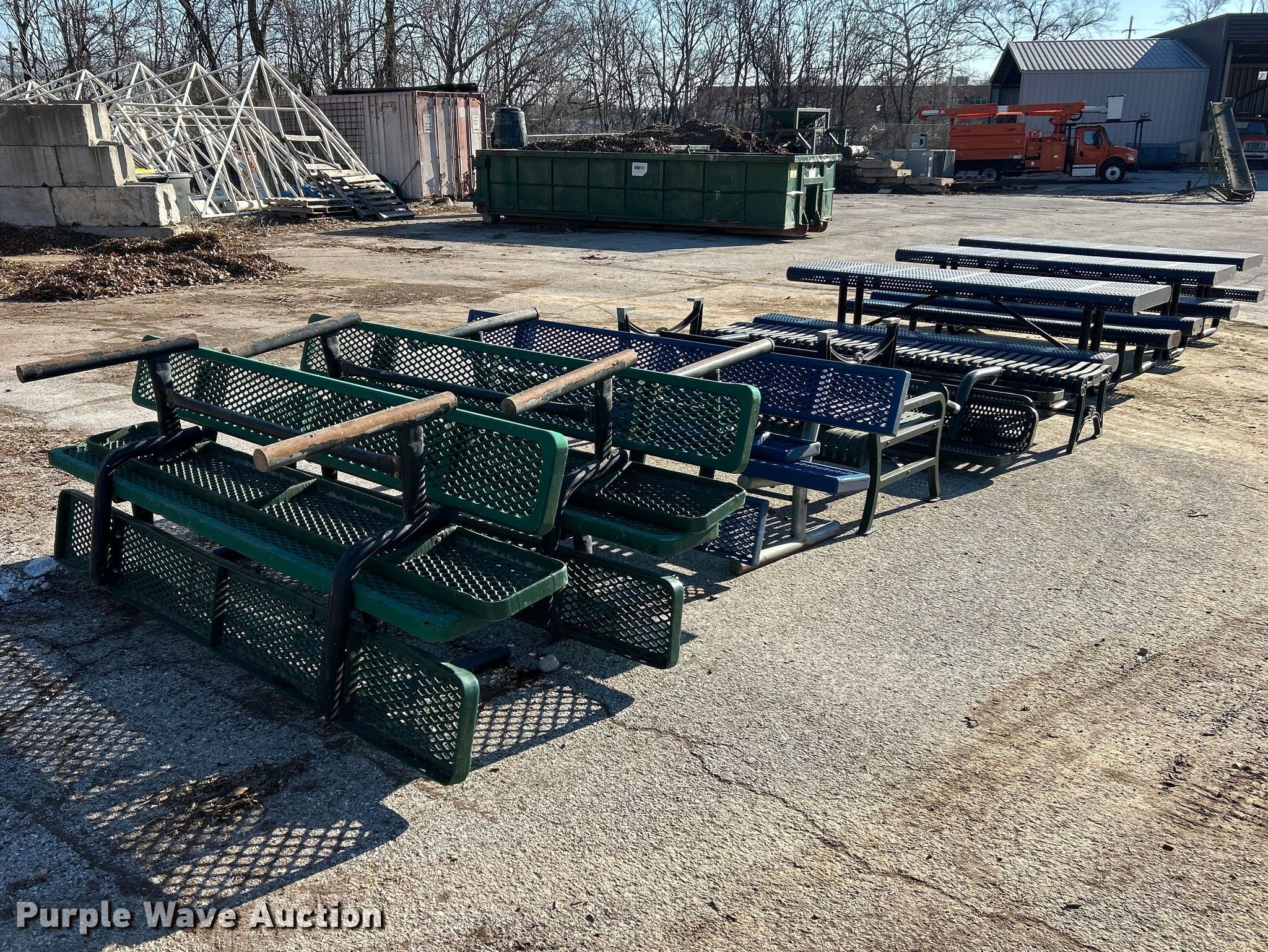 Purple Wave is selling a used Furniture in Missouri. This item is a (14) picnic tables with the following: (3) 8' L, (11) lengths 42" to 98"