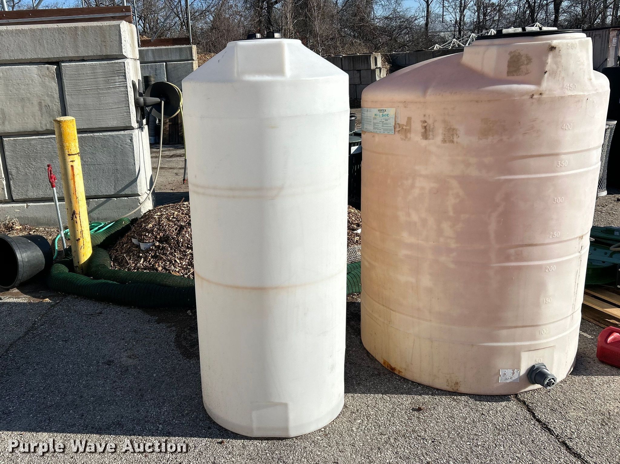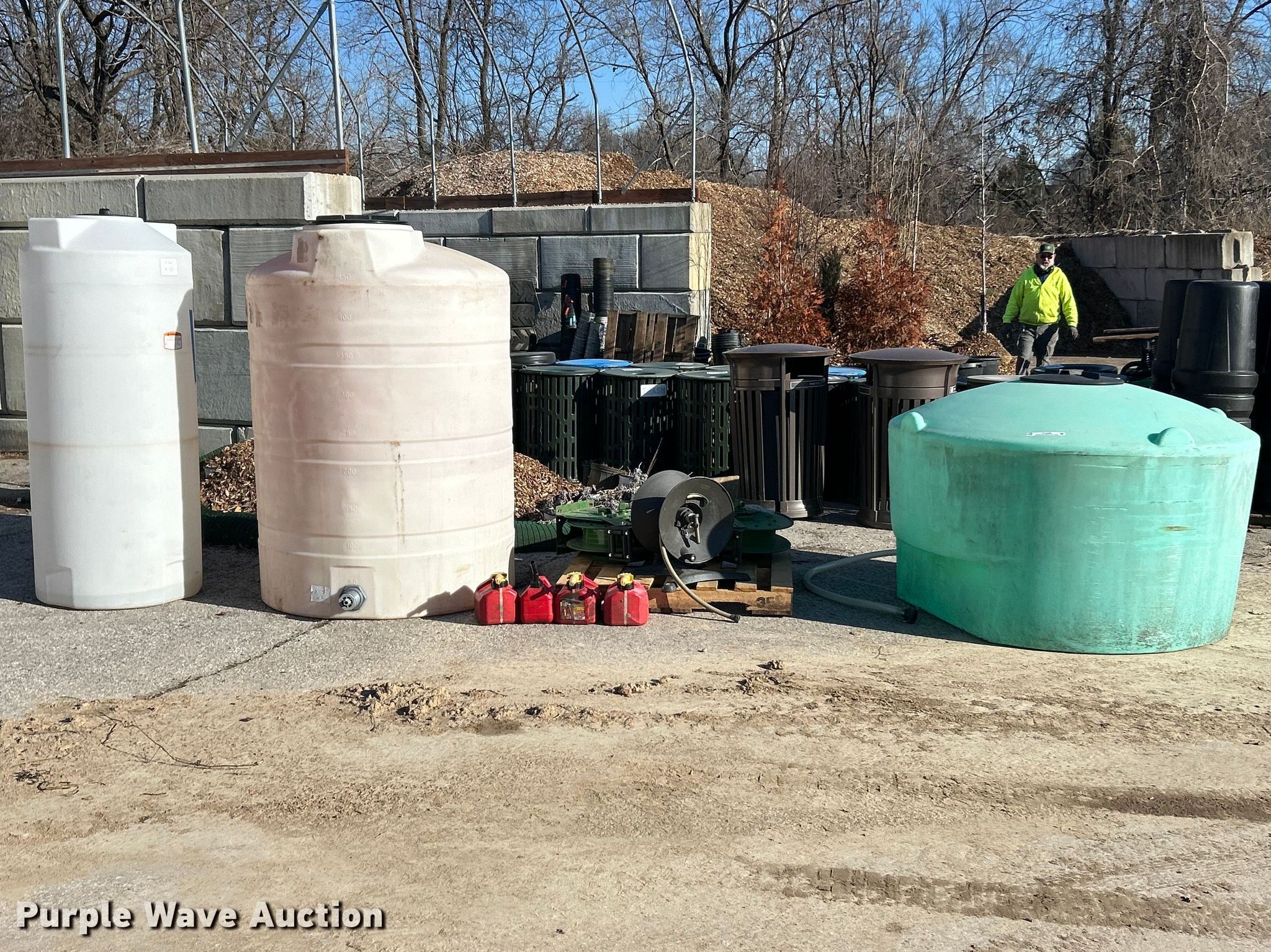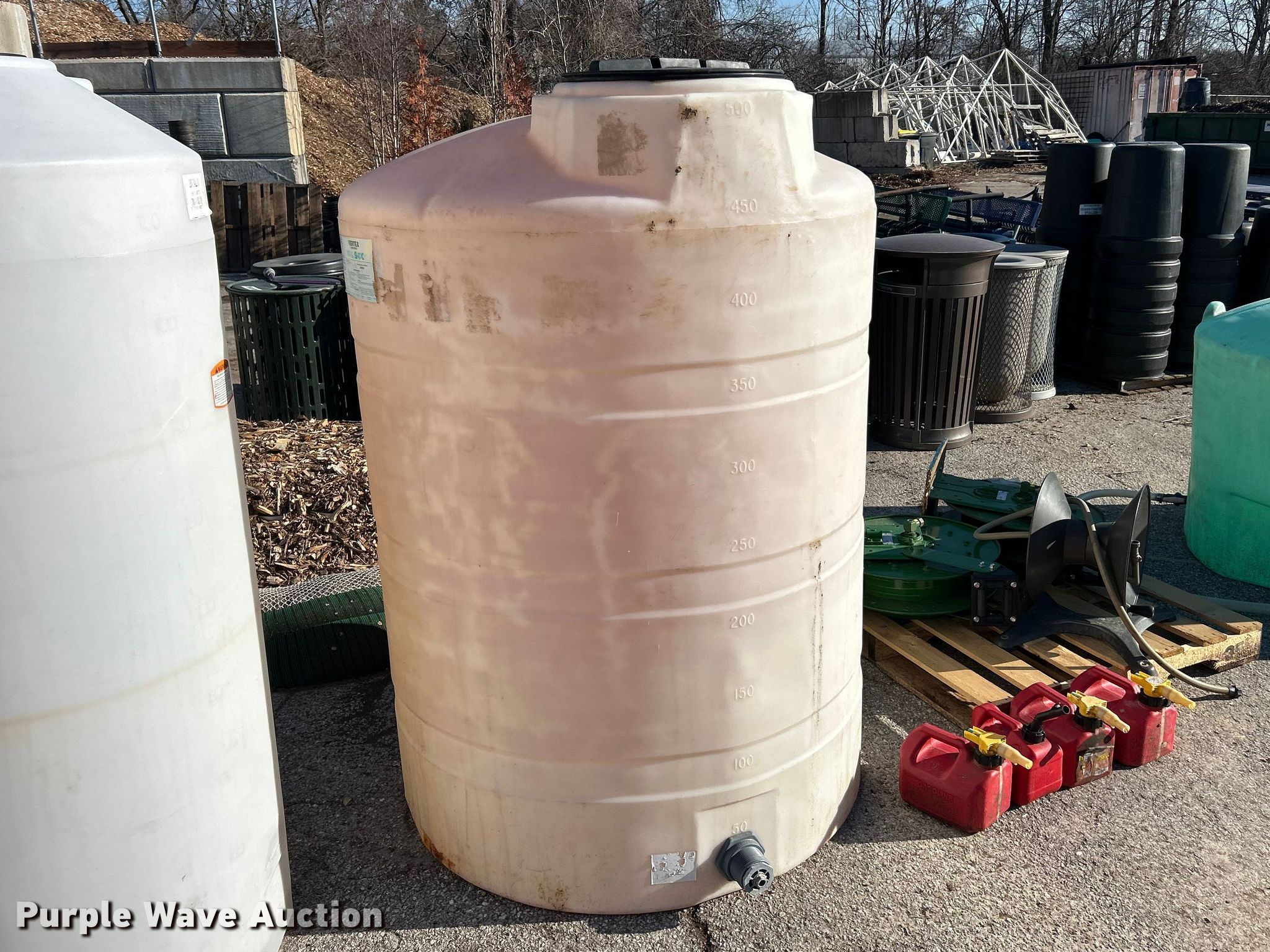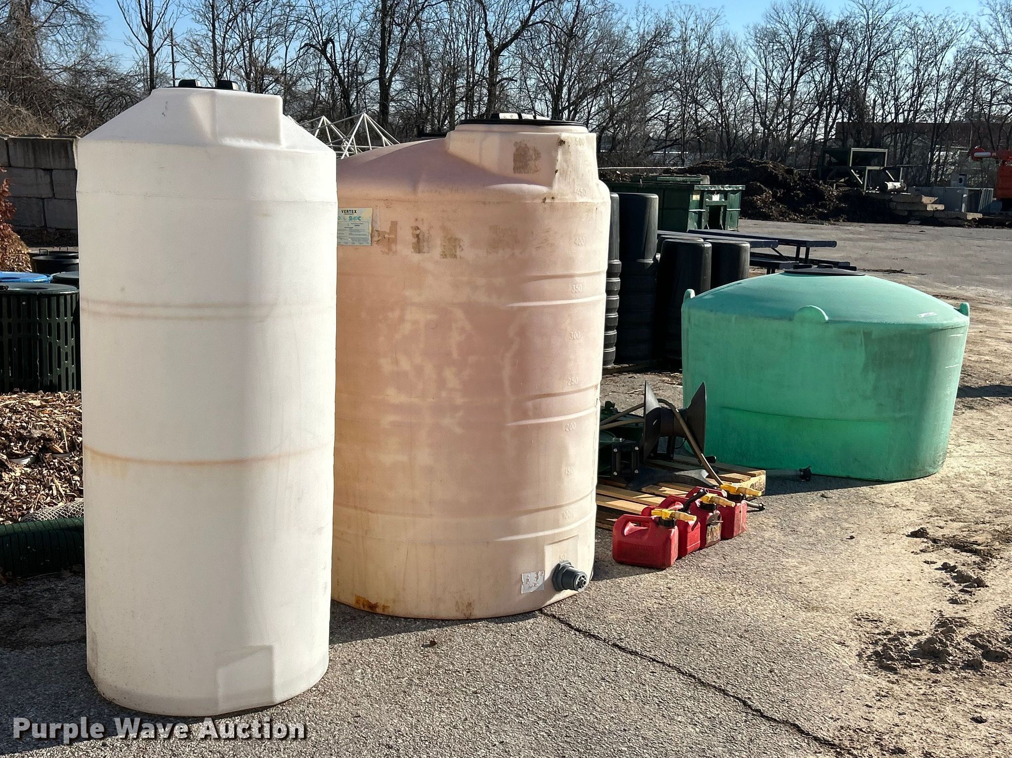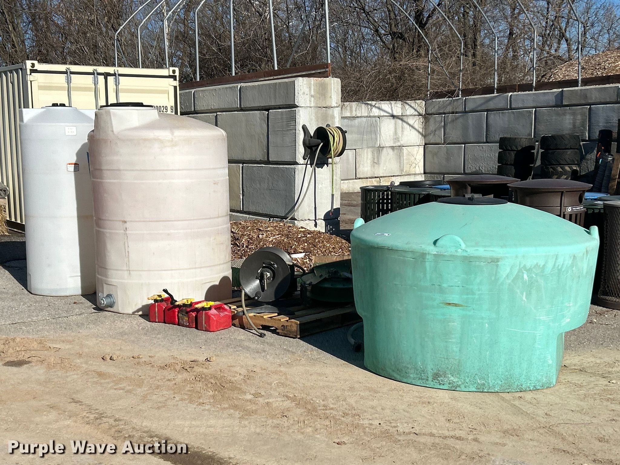 Purple Wave is selling a used Tanks in Missouri. This item is a Tanks with the following: (3) tanks, Capacities:, 200 gallons, 450 gallons, 500 gallons, (4) gas cans, Capacity: 1.25 gallons, (3) hose reels