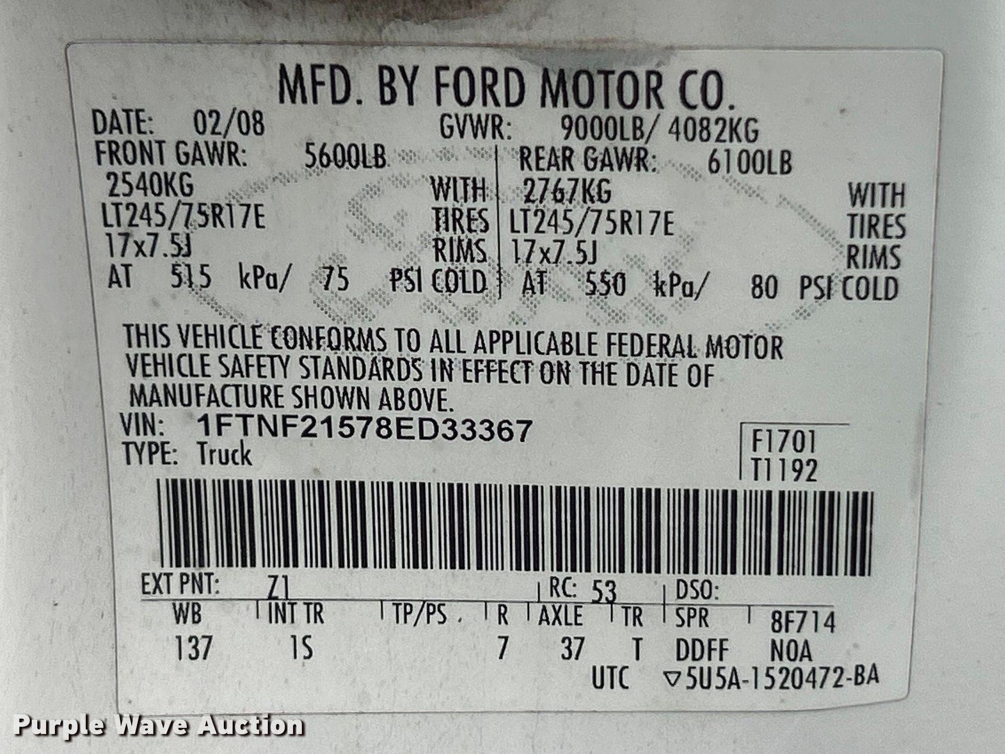 Purple Wave is selling a used 3/4 or 1 Ton Pickup or Van in Missouri. This item is a 2008 Ford F250 Super Duty flatbed pickup truck with the following: Miles: 179,539 on odometer, VIN: 1FTNF21578ED33367
