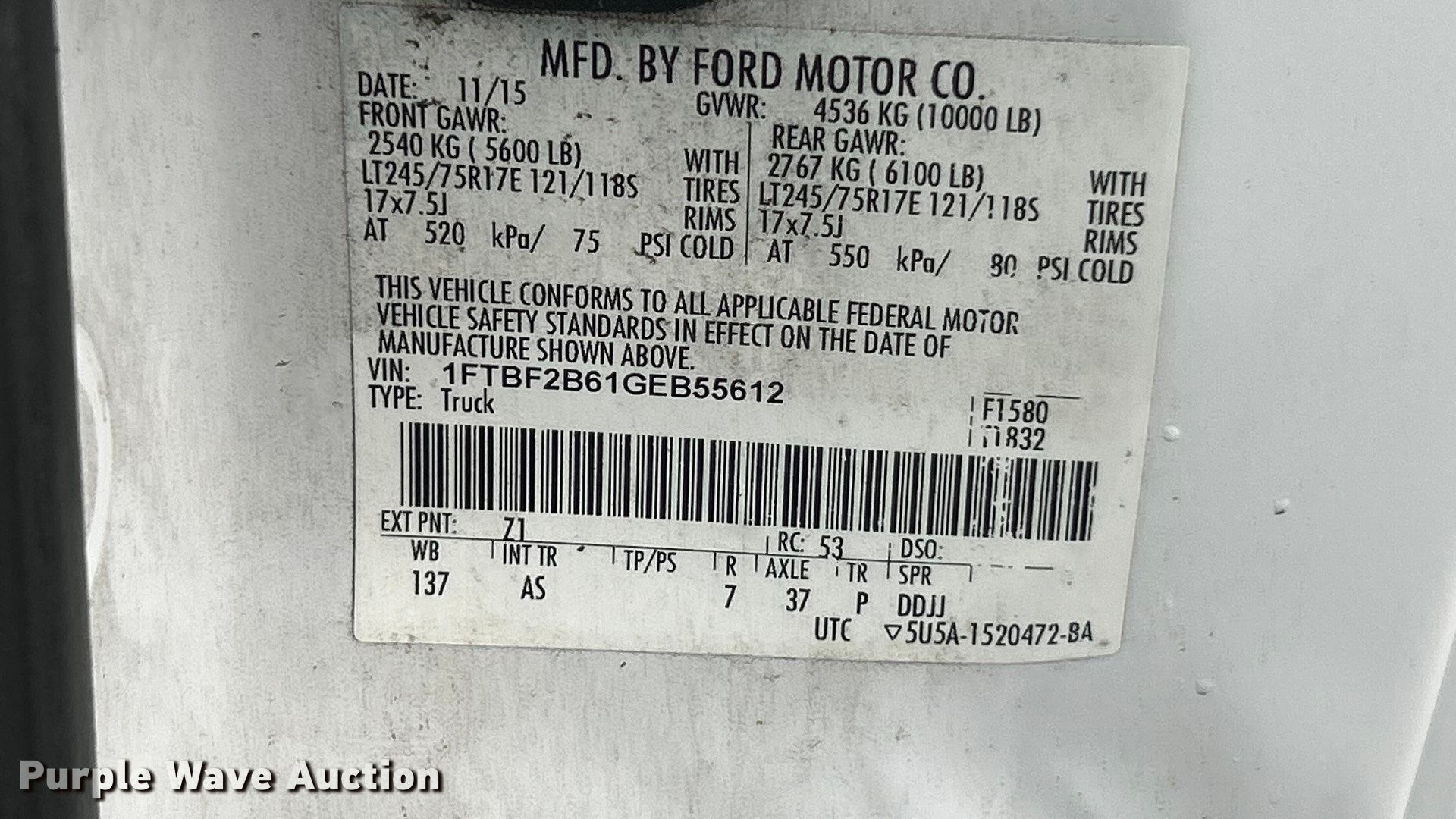 - VIN: 1FTBF2B61GEB55612