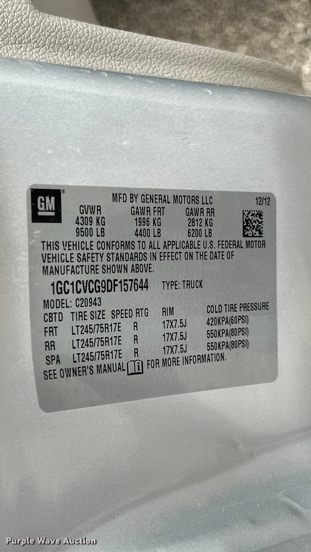 2013 Chevrolet Silverado 2500HD Crew Cab pickup truck. Miles: 90,646 on odometer, VIN: 1GC1CVCG9DF157644. Engine Displacement: 6.0L, Cylinders: 8, Fuel type: Gas. Transmission Automatic. Interior AC, Heat, Power windows, Power locks, Cruise control. Tires Size: 245/75R17. Missouri title. Title distribution may be delayed up to 14 days from verification of funds. City of Arnold, MO. Arnold, MO 63010