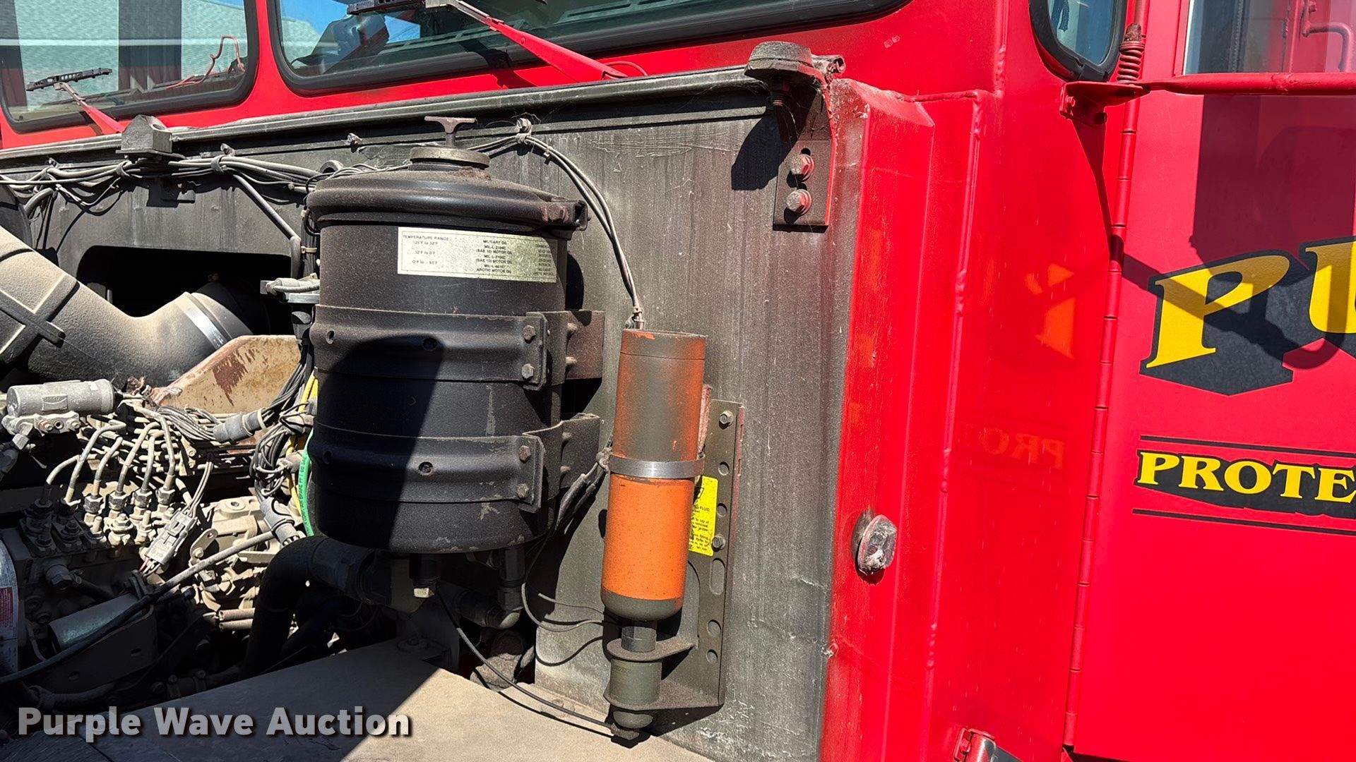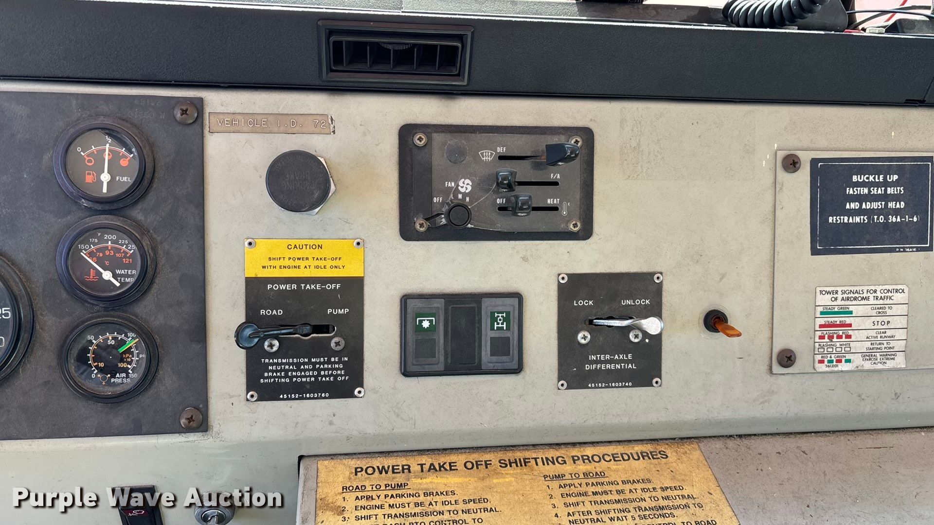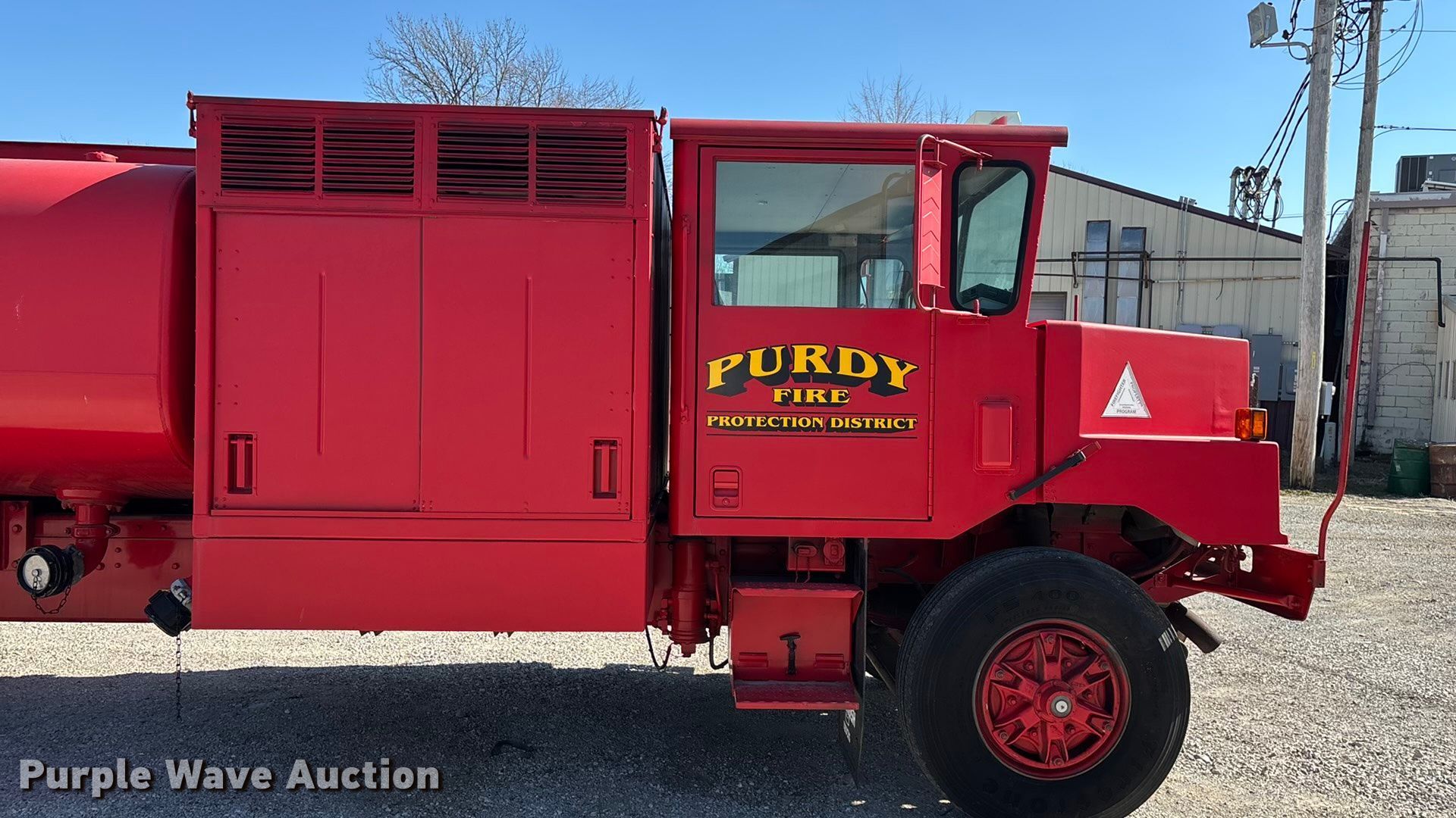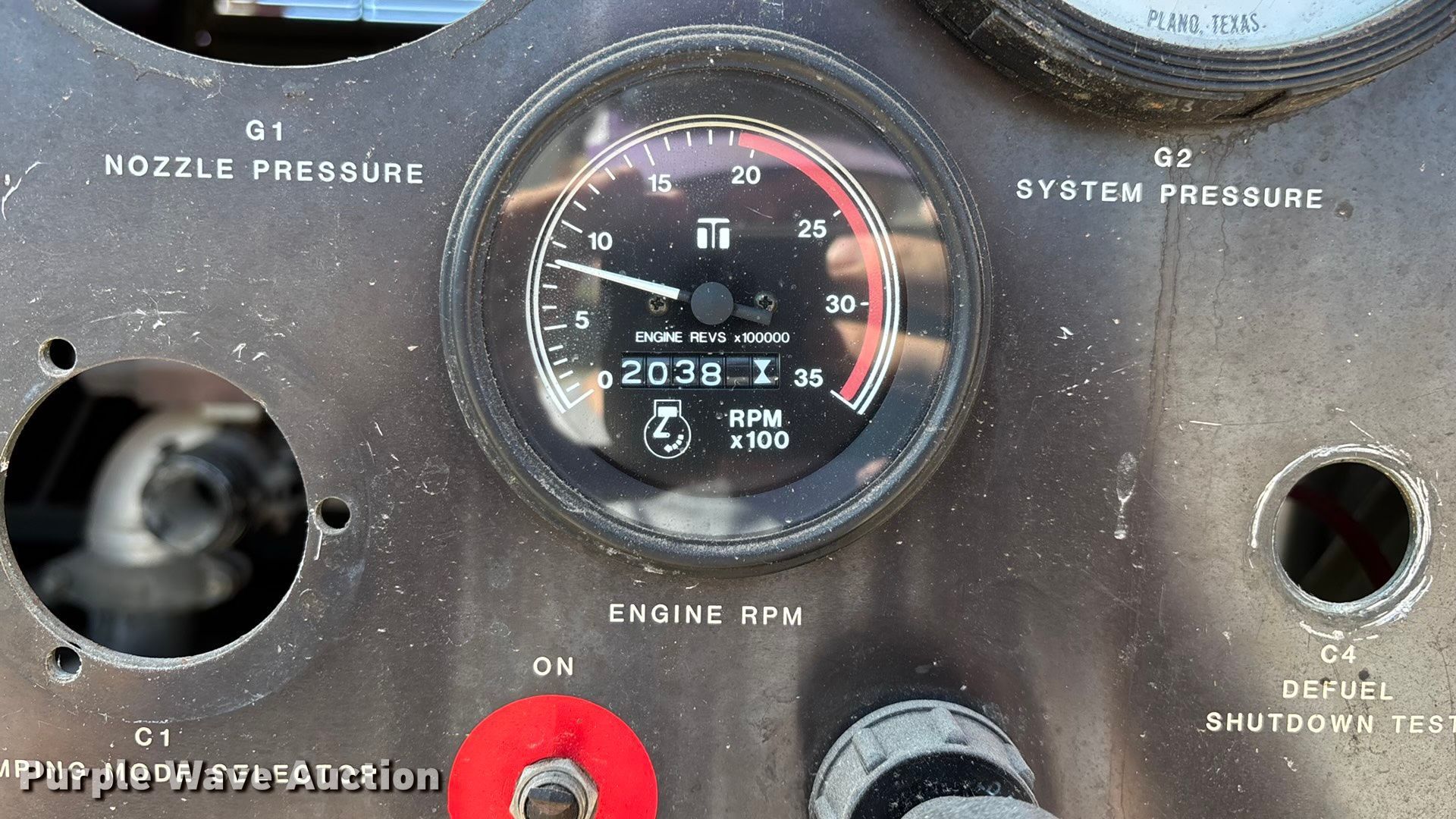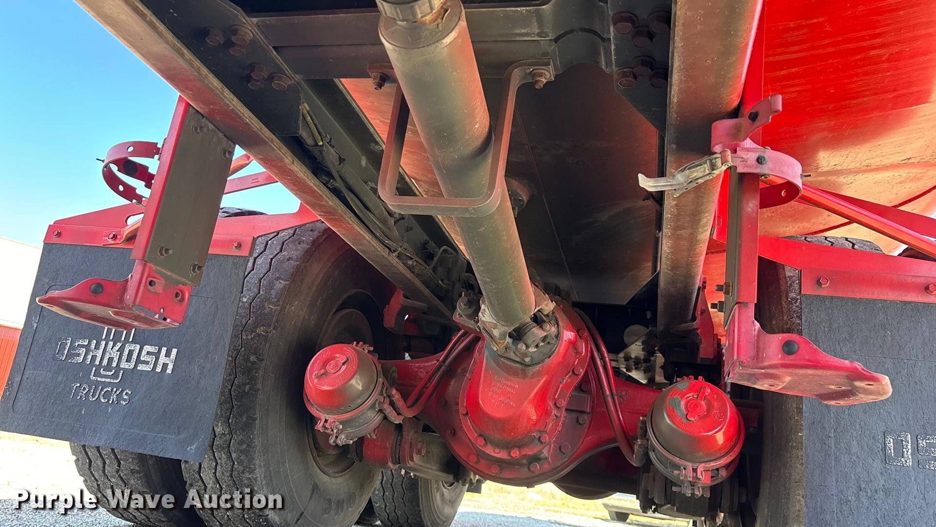 1990 Oshkosh pumper fire truck. Miles: 12,185 on odometer, Hours: 5,455 on meter, VIN: 10T2F3D01L1039791. Engine Cummins 6CTA-8.3, Serial: 44439323, Displacement: 8.3L, Cylinders: 6, Fuel type: Diesel, HP: 250. Transmission Automatic. Chassis Axles: Tandem, Brakes: Air, Suspension: Spring over walking beam, GVWR: 68,200 lbs. Interior Heat. Features Fire truck body Tank Capacity: 6,000 gallons, Pump, PA/ siren controls. Tires Size: 315/80R22.5. Notes Batteries not included, Non-operational fuel shut-off solenoid, sticks. Missouri title. Title distribution may be delayed up to 14 days from verification of funds. Purdy Fire Protection District. Purdy, MO 65734