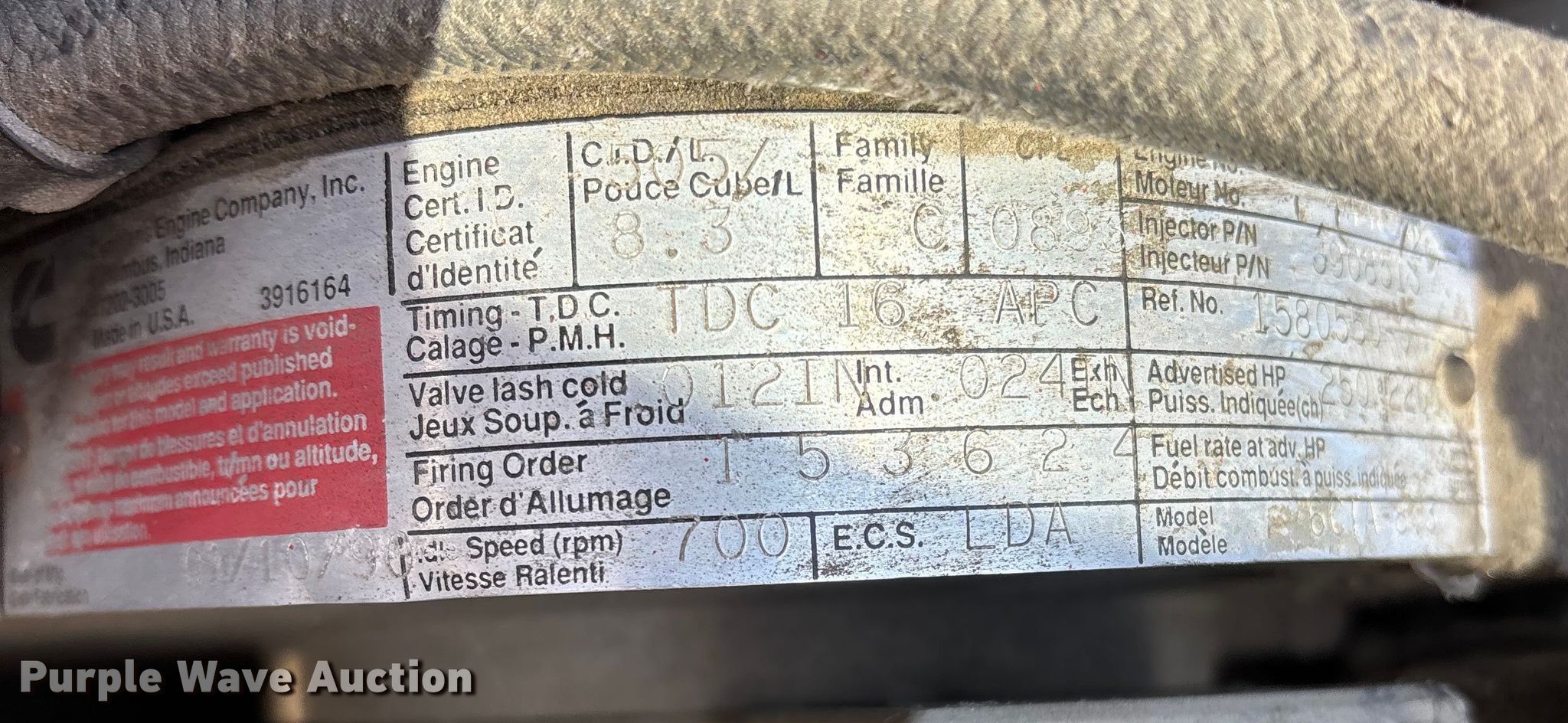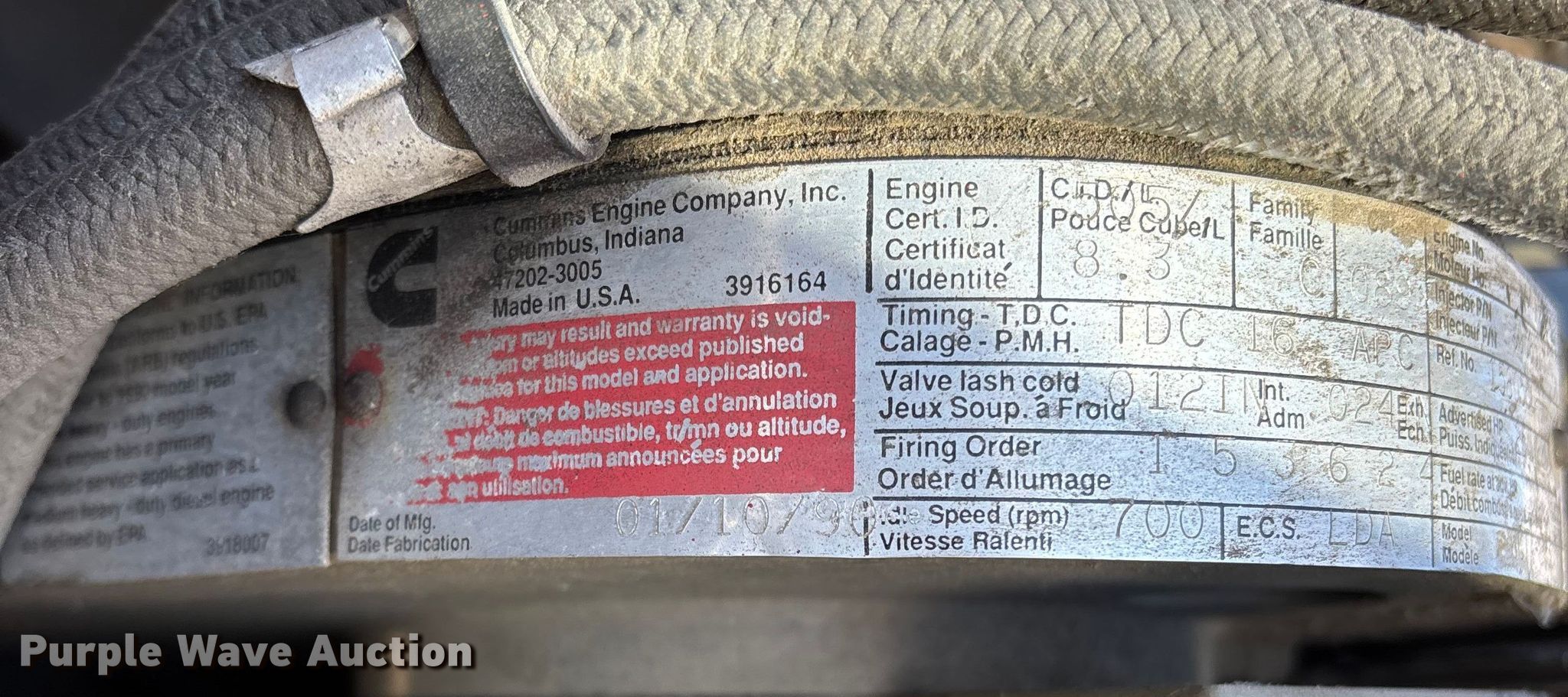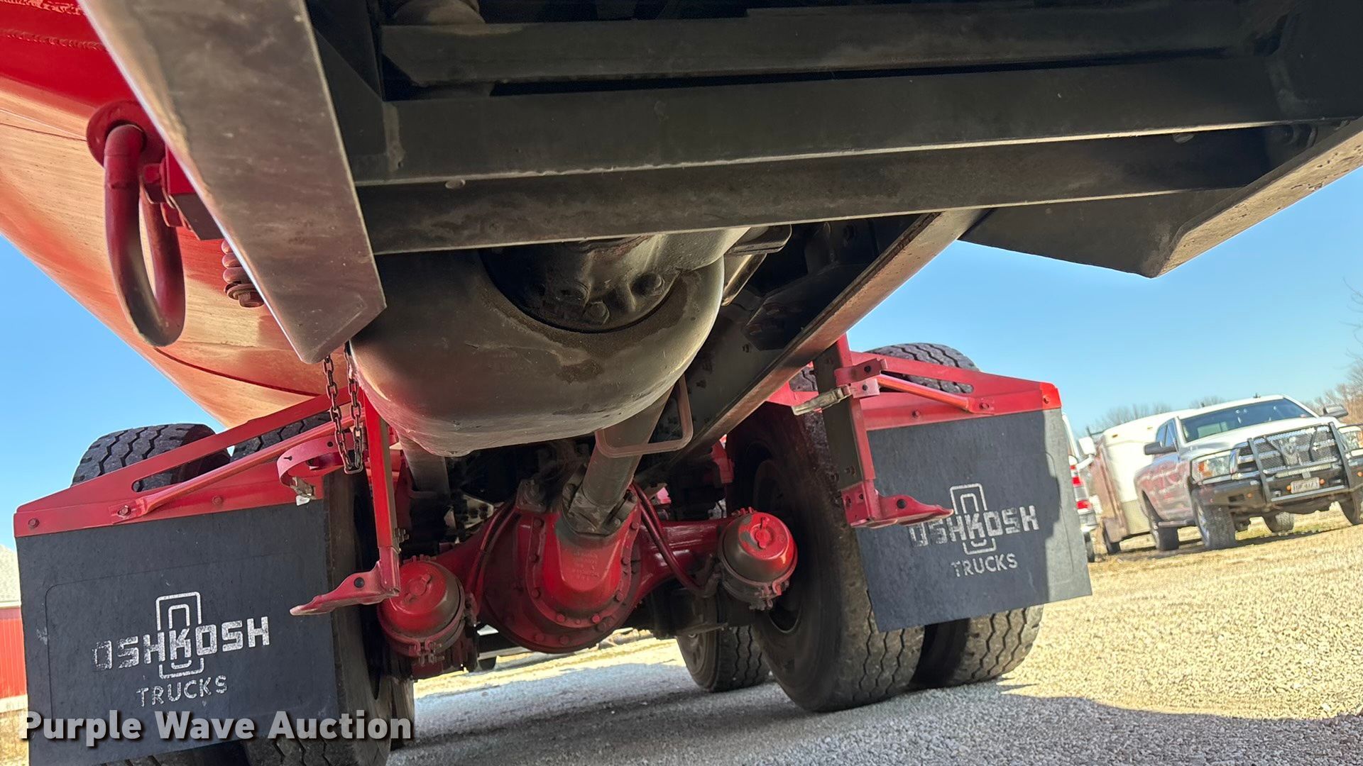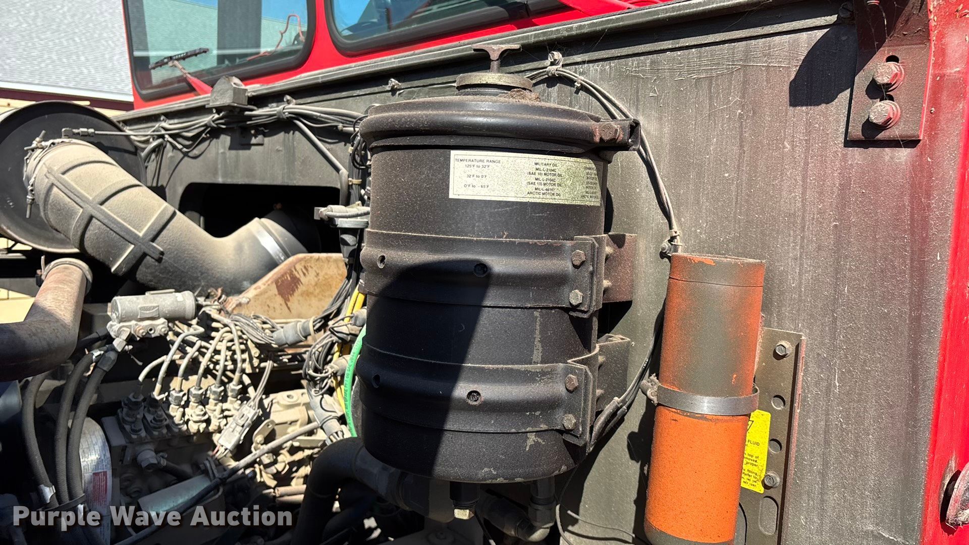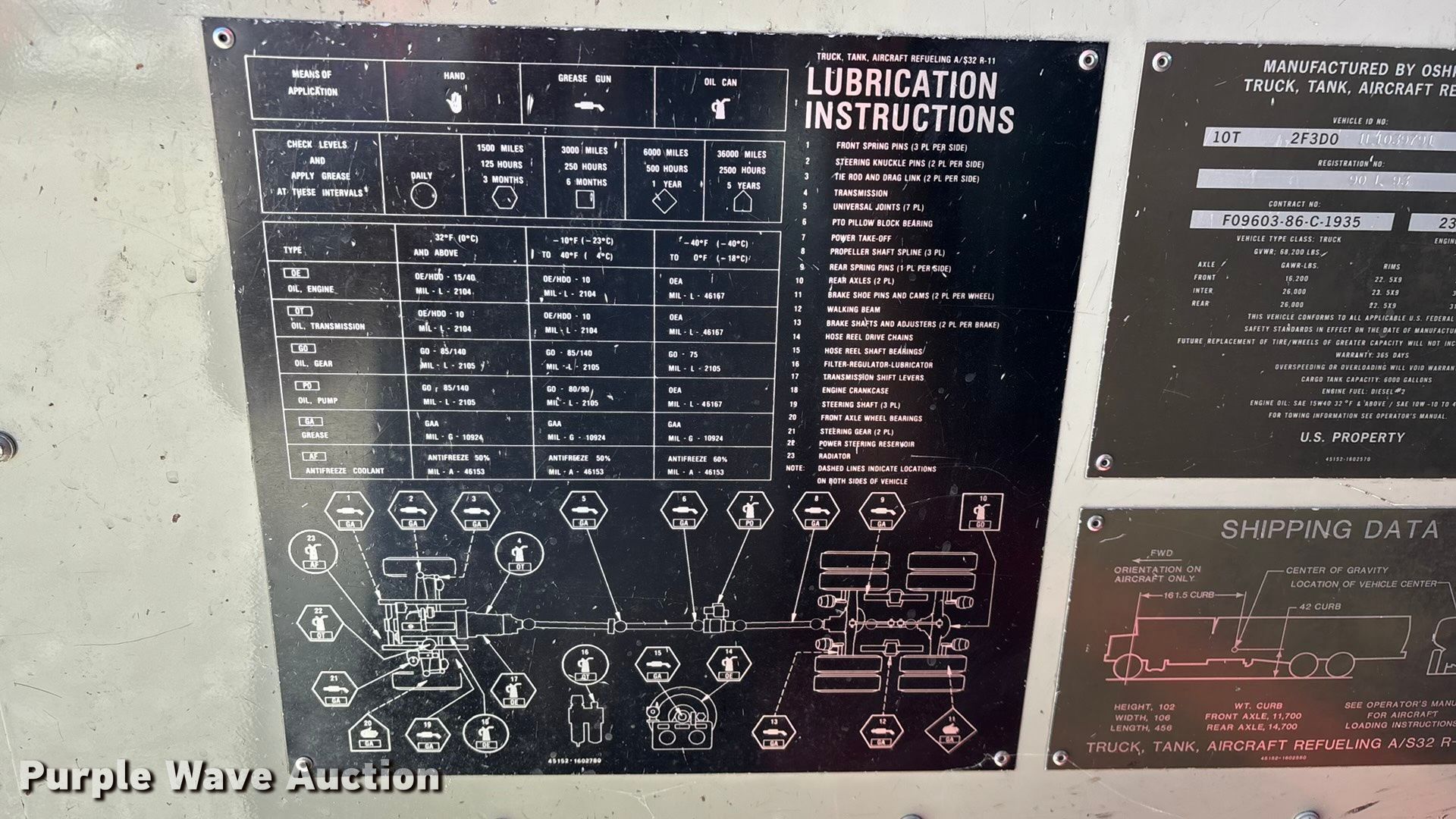 1990 Oshkosh pumper fire truck. Miles: 12,185 on odometer, Hours: 5,455 on meter, VIN: 10T2F3D01L1039791. Engine Cummins 6CTA-8.3, Serial: 44439323, Displacement: 8.3L, Cylinders: 6, Fuel type: Diesel, HP: 250. Transmission Automatic. Chassis Axles: Tandem, Brakes: Air, Suspension: Spring over walking beam, GVWR: 68,200 lbs. Interior Heat. Features Fire truck body Tank Capacity: 6,000 gallons, Pump, PA/ siren controls. Tires Size: 315/80R22.5. Notes Batteries not included, Non-operational fuel shut-off solenoid, sticks. Missouri title. Title distribution may be delayed up to 14 days from verification of funds. Purdy Fire Protection District. Purdy, MO 65734