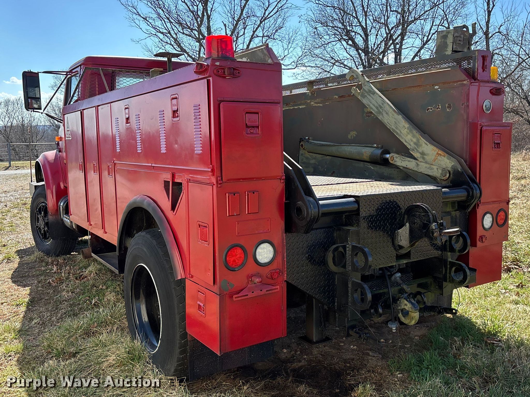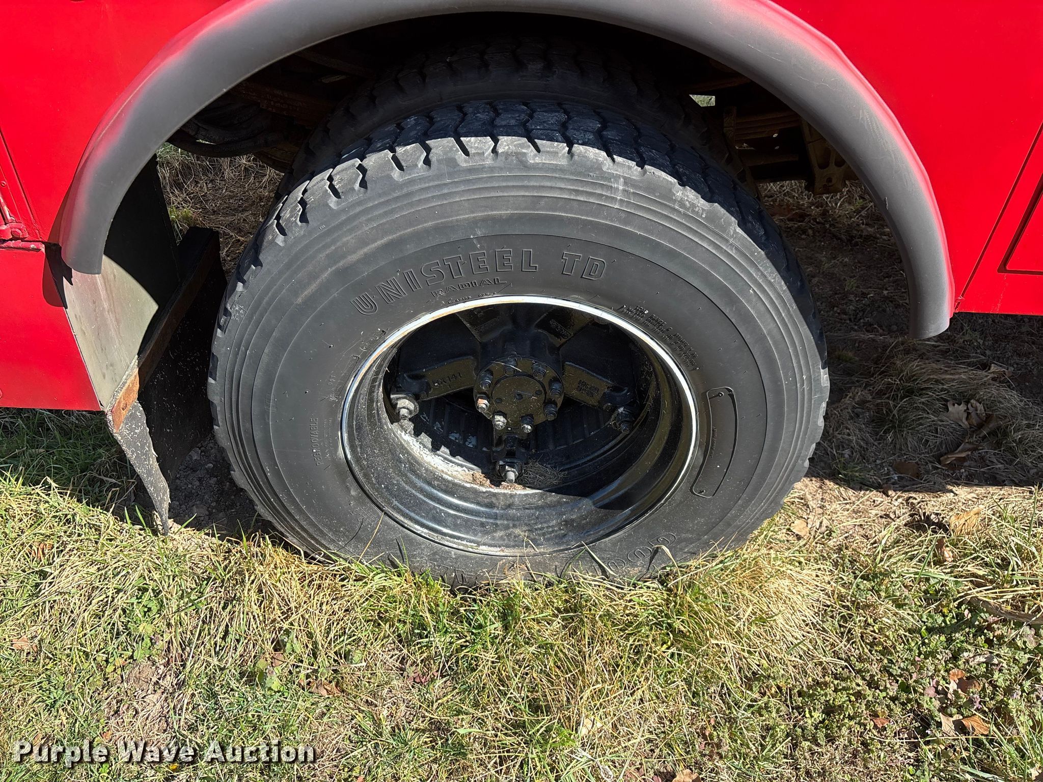 1990 International 4800 rescue truck. Miles: 21,178 on odometer, Hours: 1,410 on meter, VIN: 1HTSECFN2LH261122. Engine Navistar B180F, Cylinders: 6, Fuel type: Diesel. Transmission Manual, Speed: 5. Chassis Four wheel drive, Axles: Single, Suspension: Spring, Brakes: Air, PTO. Interior AC, Heat. Features Bed Utility bed, Altec, Serial: 17-44521 4/90, Length: 11' 7", Width: 93", Winch, Reel carrier. Tires Size: 11R22.5. Notes Possible fuel system issues , Unit must be towed or hauled, Tires damaged, dry rot, Dead battery, Non-operational unit. Missouri title. Title distribution may be delayed up to 14 days from verification of funds. Monett, MO 65708