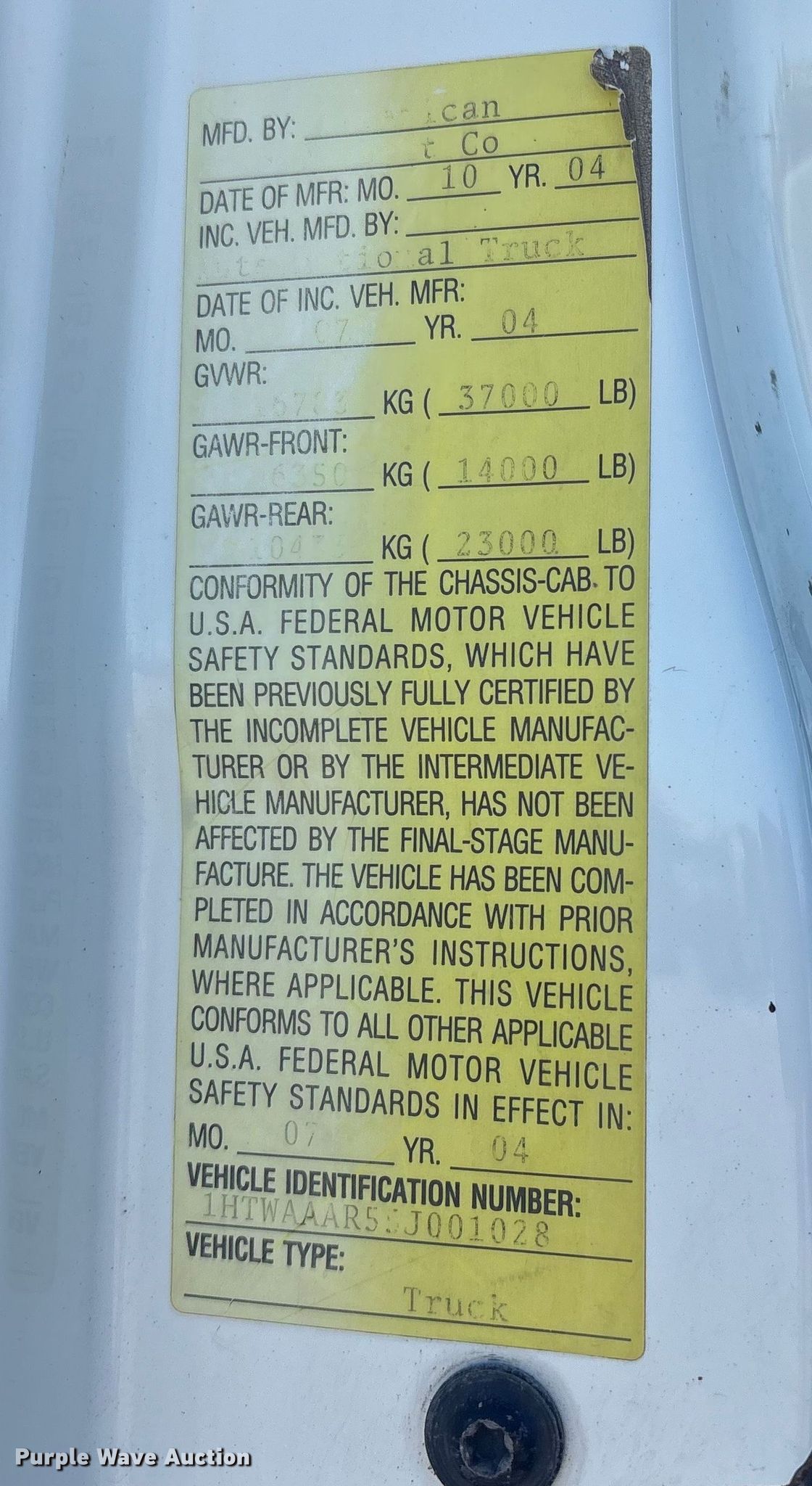 • VIN: 1HTWAAAR55J001028