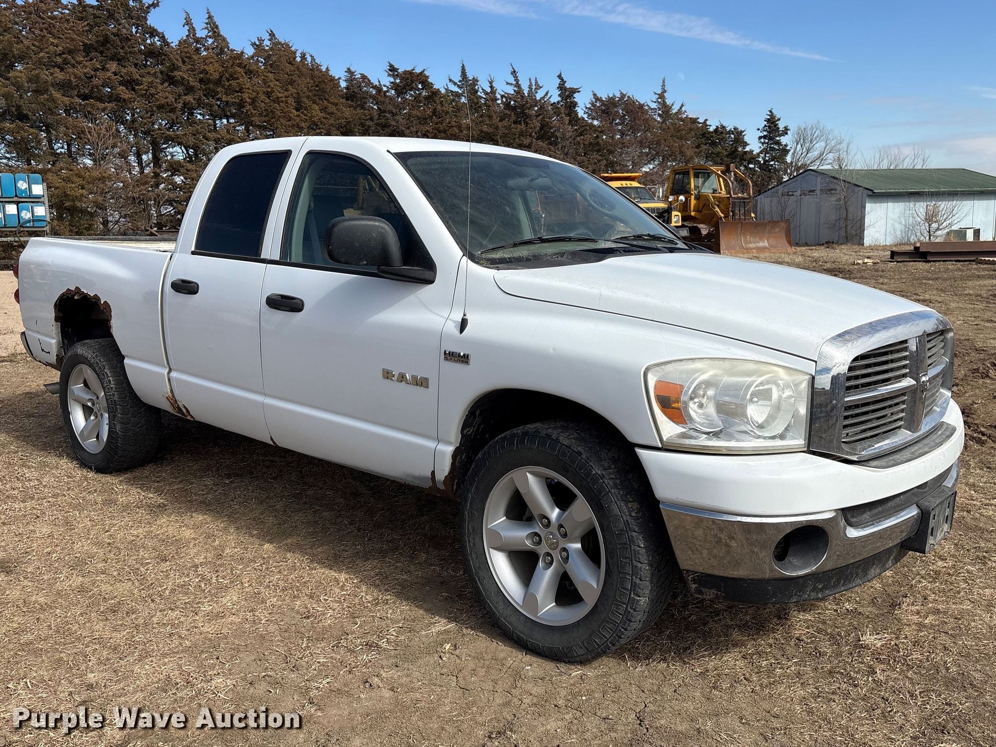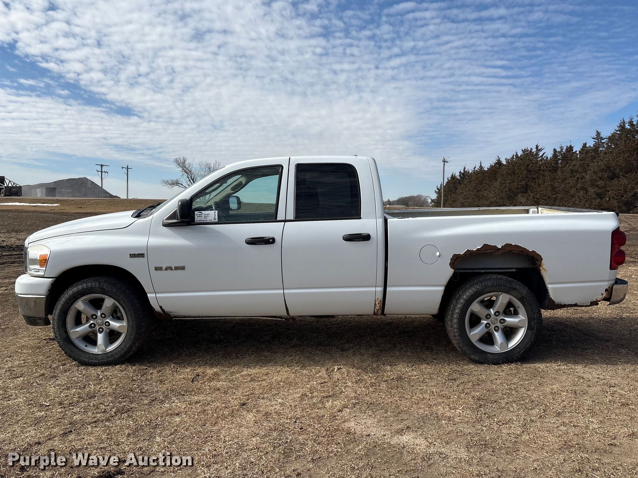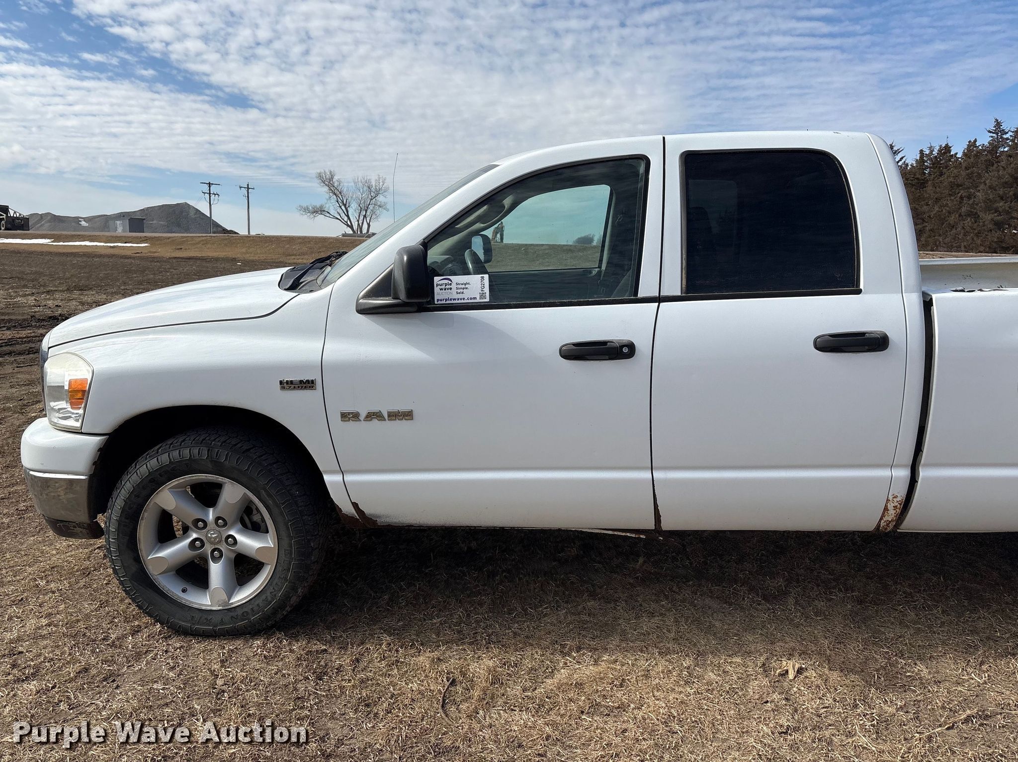 2008 Dodge Ram 1500 Ext. Cab pickup truck. Miles: 200,729 on odometer, VIN: 1D7HU182X8S574713. Engine Displacement: 5.7L, Cylinders: 8, Fuel type: Gas. Transmission Automatic, Four wheel drive. Interior AC, Heat, Heated mirrors, Power windows, Power locks, Cruise control. Tires Size: 275/60R20. Notes Dash warning indicator: TPMS, Jump start required during on-site data collection. Nebraska title. Title distribution may be delayed up to 14 days from verification of funds. Seward County. Seward, NE 68434