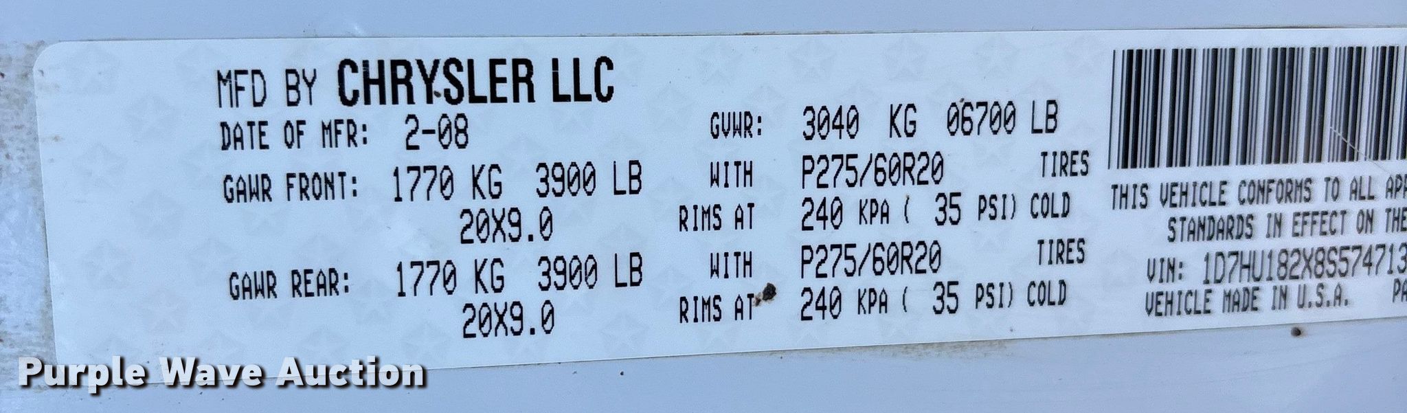 - VIN: 1D7HU182X8S574713