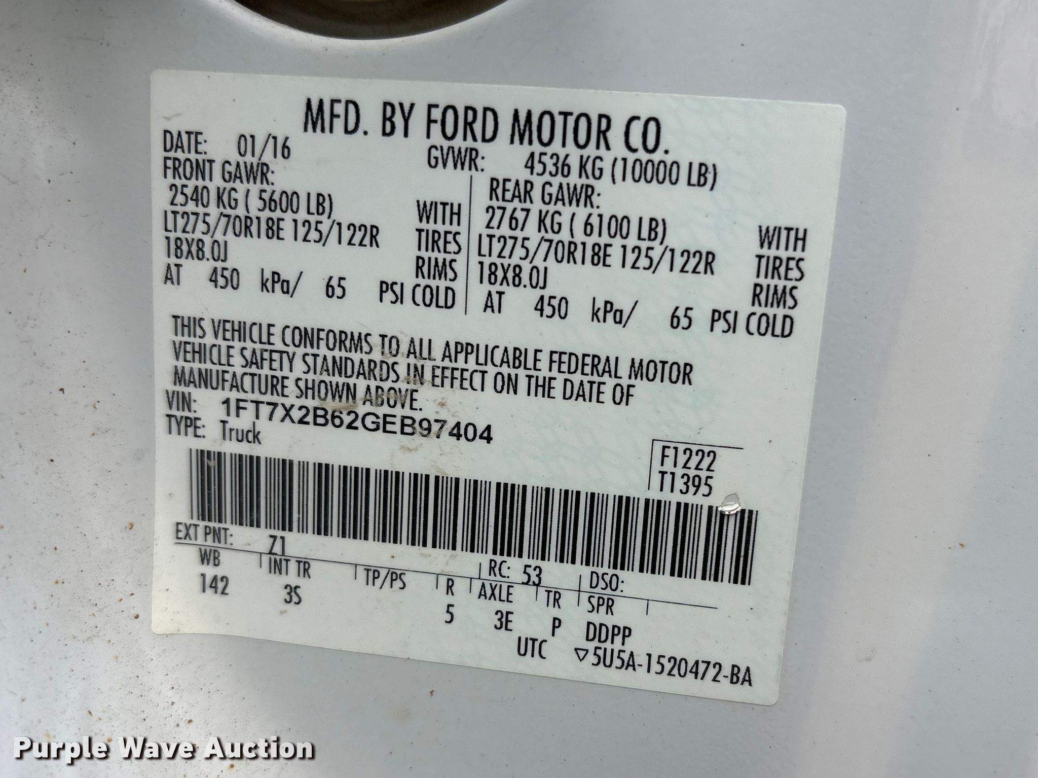 - VIN: 1FT7X2B62GEB97404