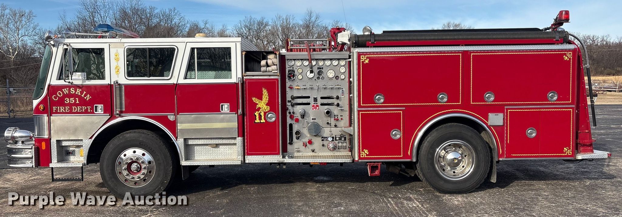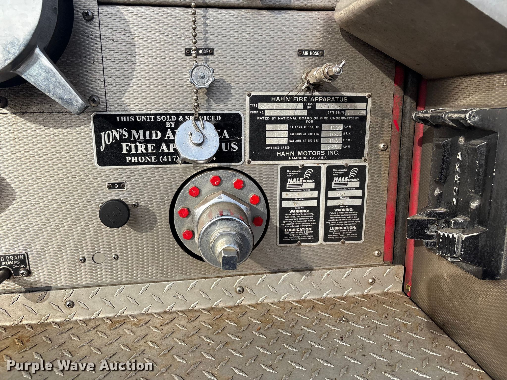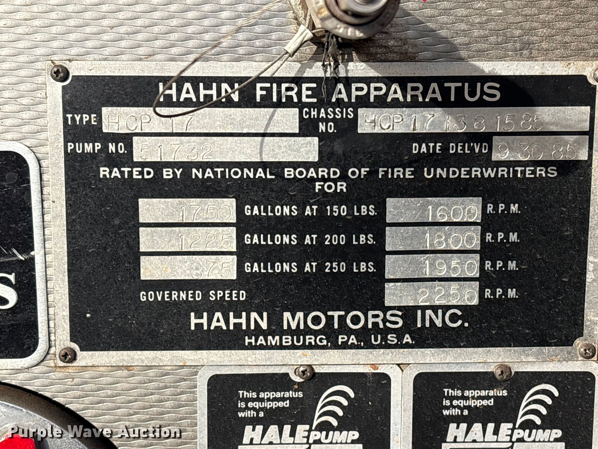 Purple Wave is selling a used Fire Truck or Emergency Vehicle in Oklahoma. This item is a 1985 Hahn HCP17 pumper fire truck with the following: Miles: 305 on odometer, Miles: Actual unknown, Hours: 3,719 on meter, VIN: HCP171381585, Unit #: 351