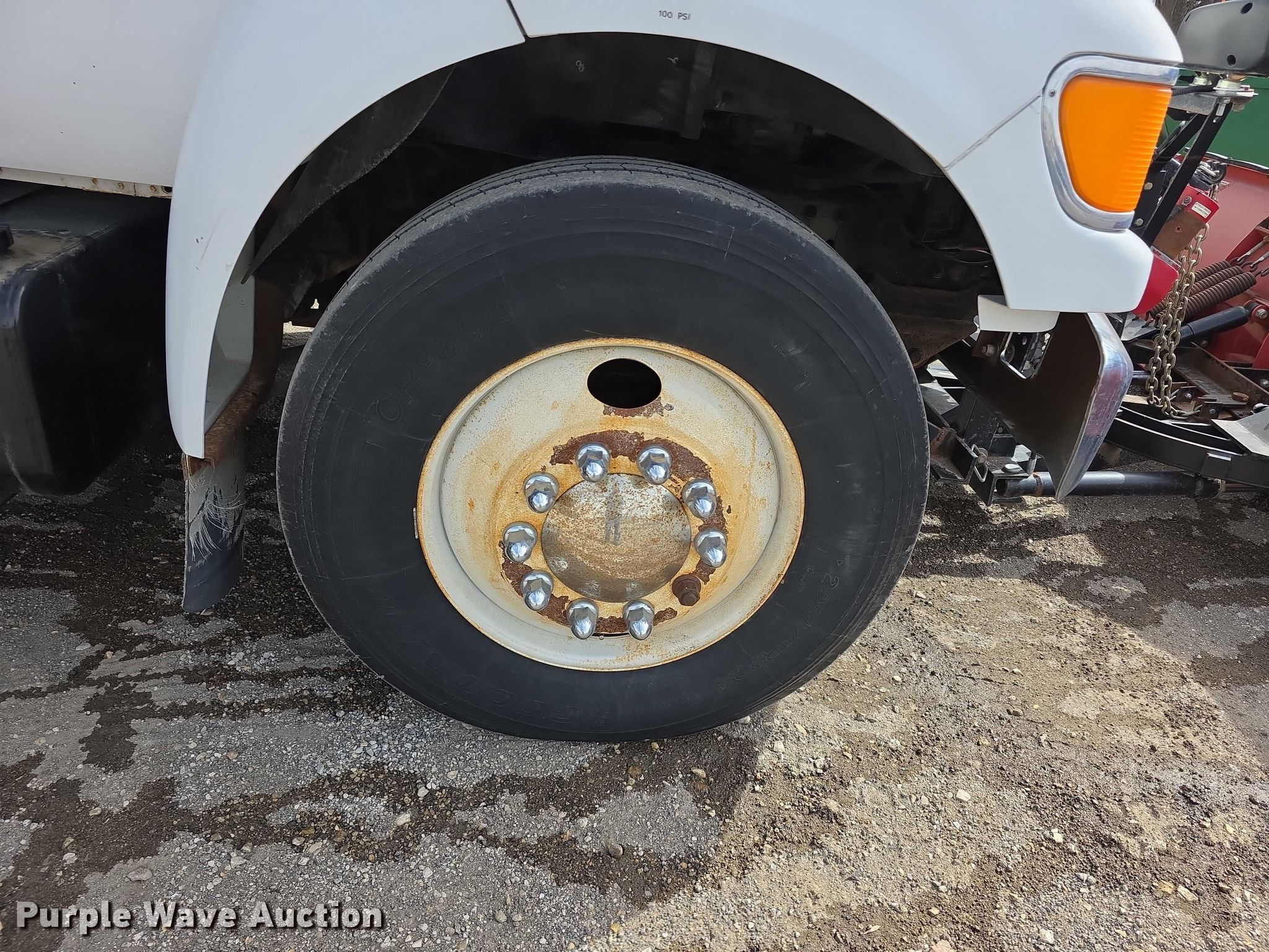 2003 Ford F650 Super Duty dump truck. Miles: 198,933 on odometer, Miles or hours may vary, unit still in use, VIN: 3FDNF65293MB01858, Unit #: T3. Engine Caterpillar, Displacement: 7.2L, Cylinders: 6, Fuel type: Diesel. Transmission Automatic. Chassis Axles: Single, Suspension: Spring, Brakes: Hydraulic, GVWR: 26,000 lbs FAWR: 8,500 lbs, RAWR: 17,500 lbs, Wheelbase: 156". Interior AC, Heat, Cruise control. Features Bed Dump bed, Length: 10', Width: 8', Side height: 26", Side board height: 12", Bed type: Steel, Bed vibrator, Roll tarp, Ram: Single, End gate: Manual, Plow Western, Width: 120". Tires Size: 295/75R22.5. Notes Additional parts, Dash warning indicator: ABS. Kansas title. Title distribution may be delayed up to 14 days from verification of funds. City of Westmoreland. Westmoreland, KS 66549