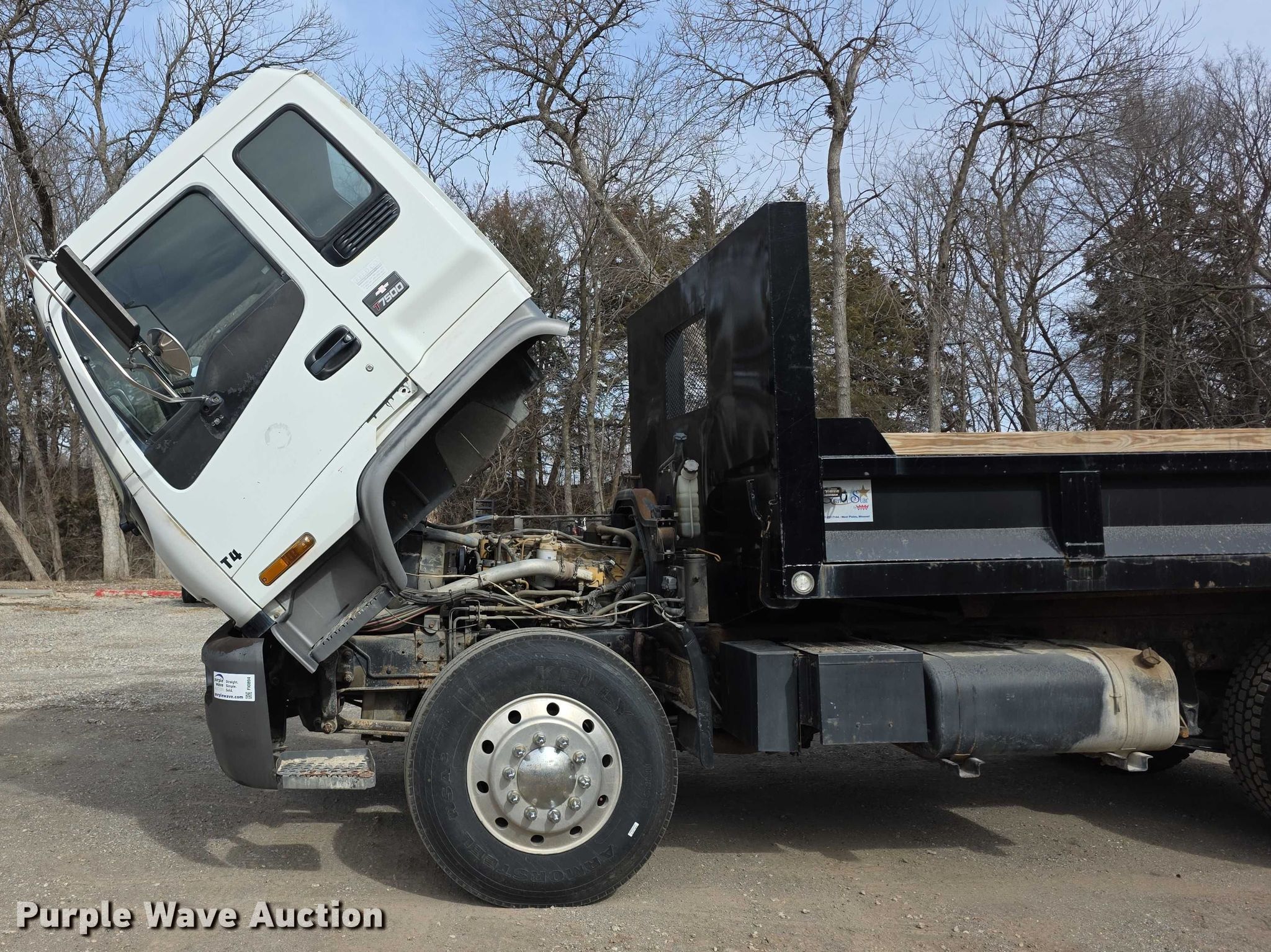 2001 Chevrolet T7500 dump flatbed truck. Miles: 111,698 on odometer, Miles or hours may vary, unit still in use, VIN: 1GBM7C1C71J508098, Unit #: T4. Engine Caterpillar LG5, Displacement: 7.2L, Cylinders: 6, Fuel type: Diesel. Transmission Allison, Automatic. Chassis Axles: Single, Suspension: Air, Brakes: Air, GVWR: 33,000 lbs FAWR: 12,000 lbs, RAWR: 21,000 lbs, Wheelbase: 138". Interior AC, Heat, Brake controller. Features Bed Dump flatbed, Crown Travel Star, Length: 12', Width: 8', Side height: 16", Side board height: 4", Bed type: Steel, Ram: Single, End gate: Manual. Tires Size: 11R22.5. Notes Possible AC issues, needs charged, Dash warning indicator: Check gauges. Kansas title. Title distribution may be delayed up to 14 days from verification of funds. City of Westmoreland. Westmoreland, KS 66549