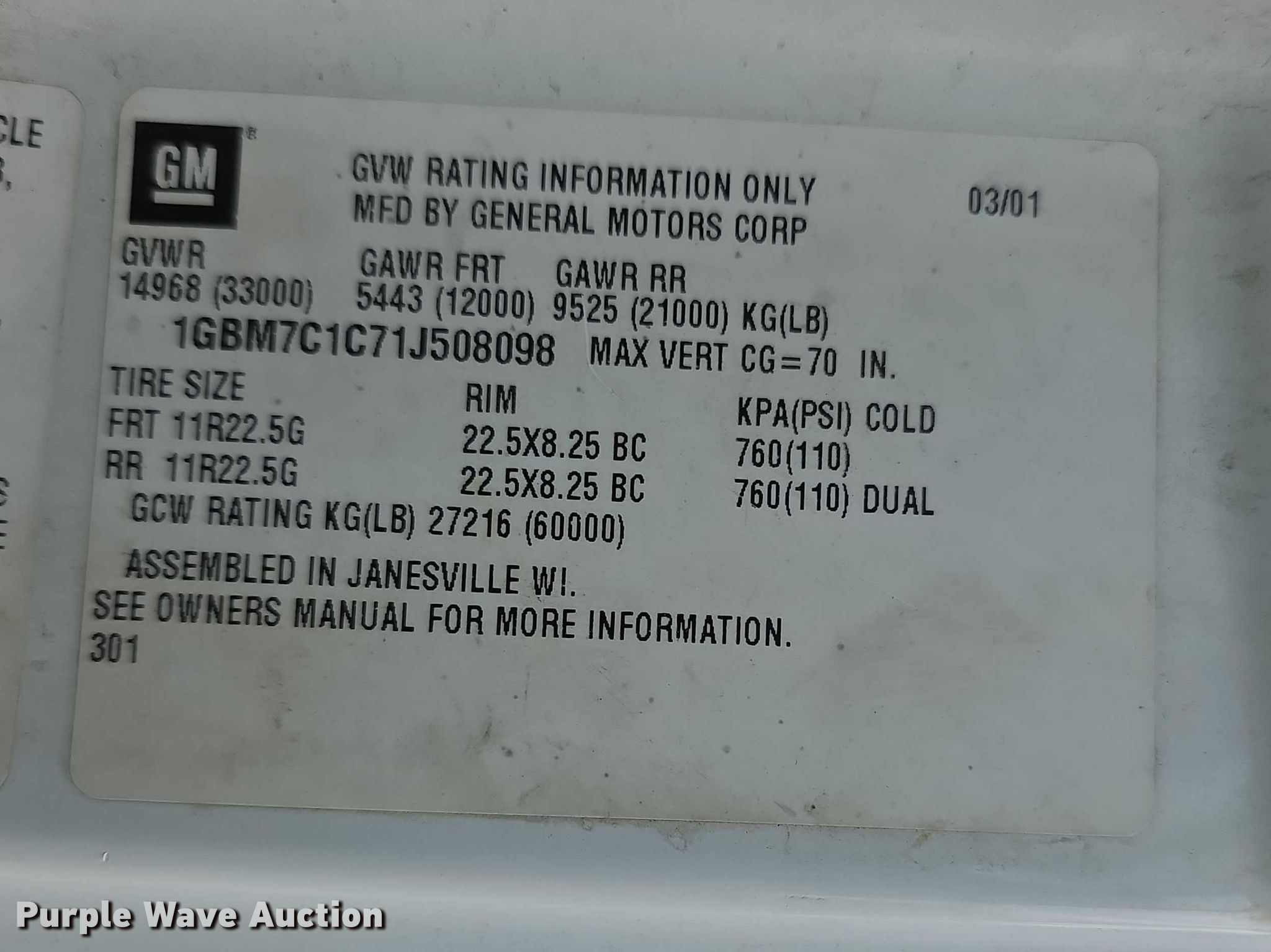 - VIN: 1GBM7C1C71J508098