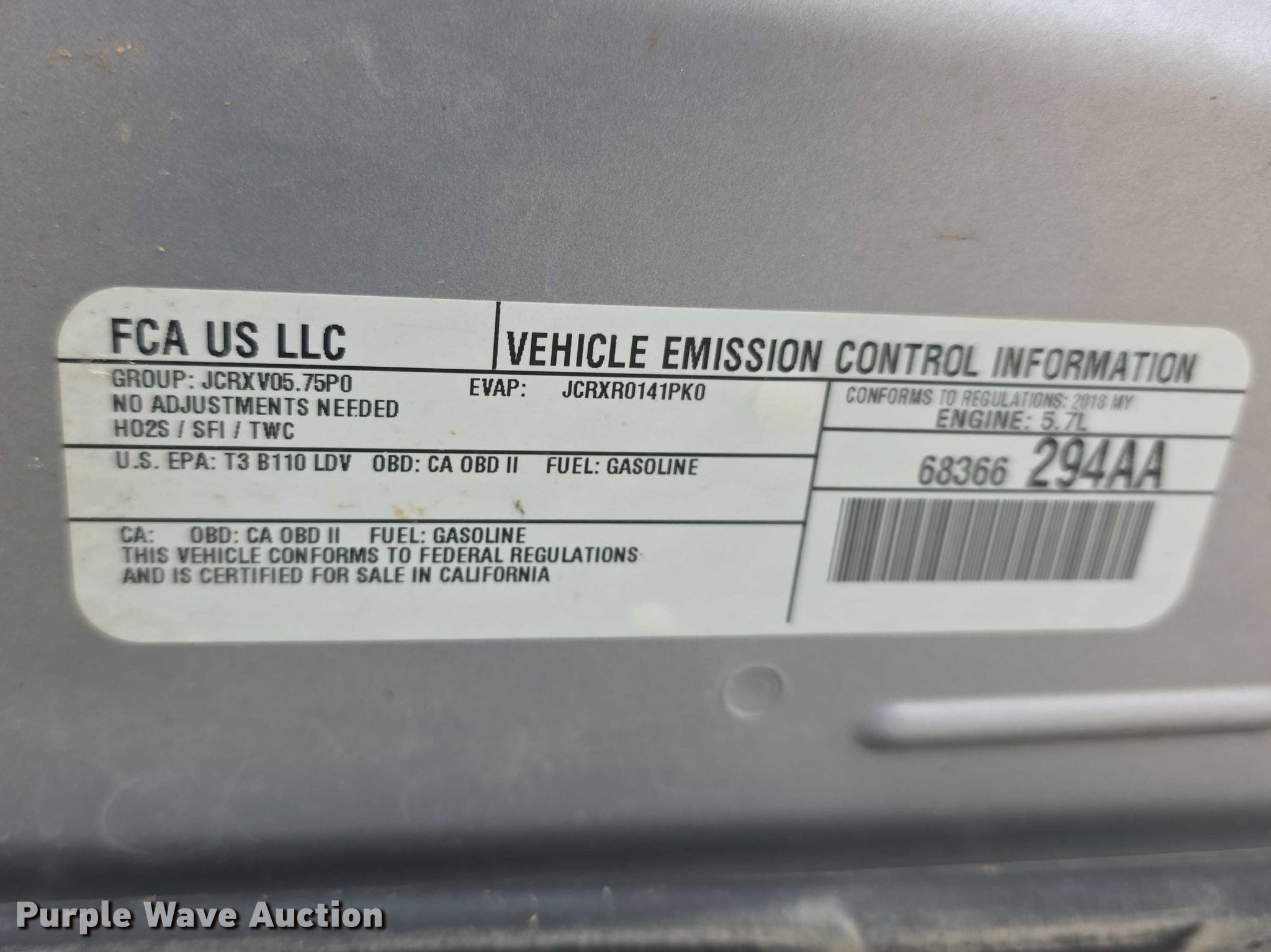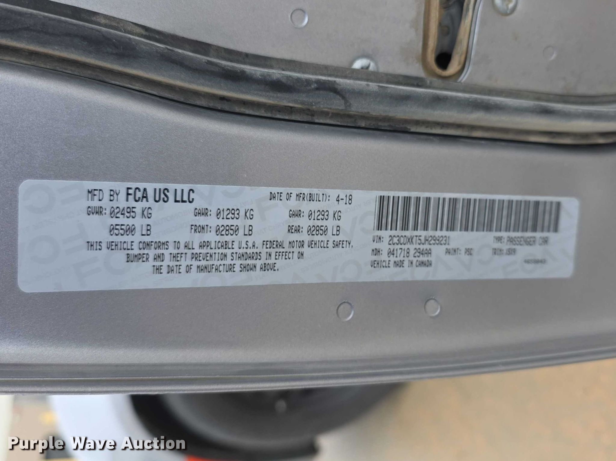 - VIN: 2C3CDXKT5JH299231