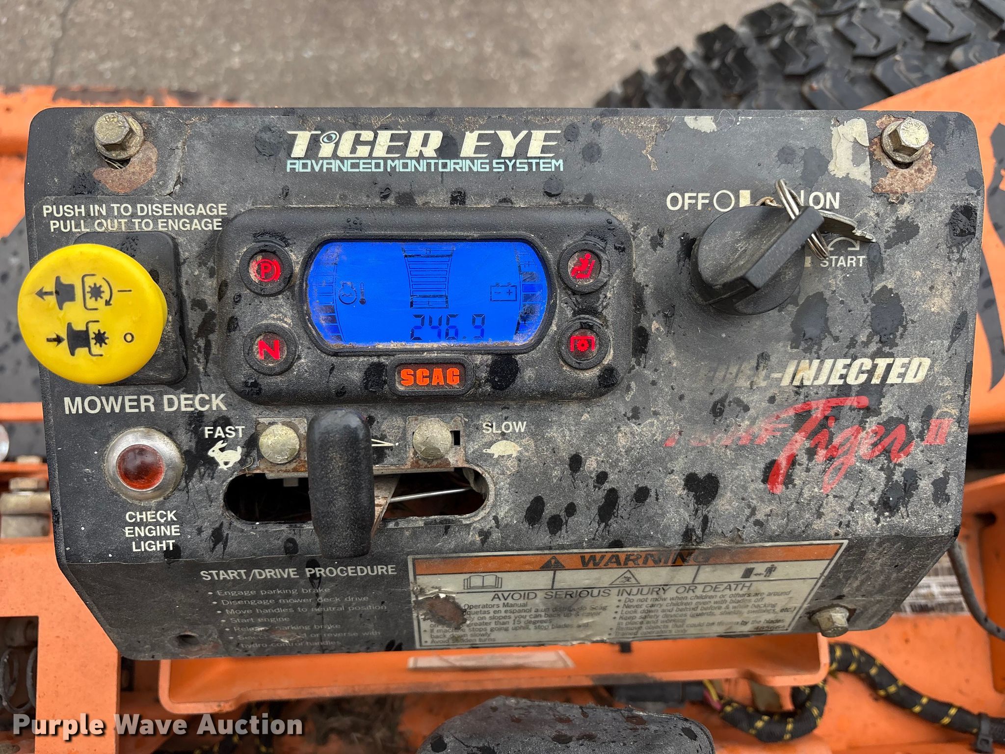 Purple Wave is selling a used Commercial Turf Mower in Kentucky. This item is a Scag Turf Tiger ZTR lawn mower with the following: Hours: 246 on meter, Cutting width: 61", Serial: M2600348, Unit #: 3