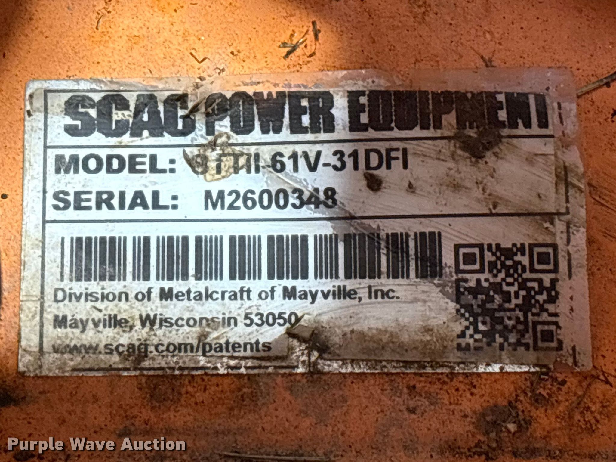 Take a look at this used Scag Turf Tiger ZTR lawn mower being sold on March 31st, 2026 in the Tuesday March 31 Government Auction made by Scag. Take a look at all of the item information below or take a look at similar auctions for Mowers and Other Ag Equipment.