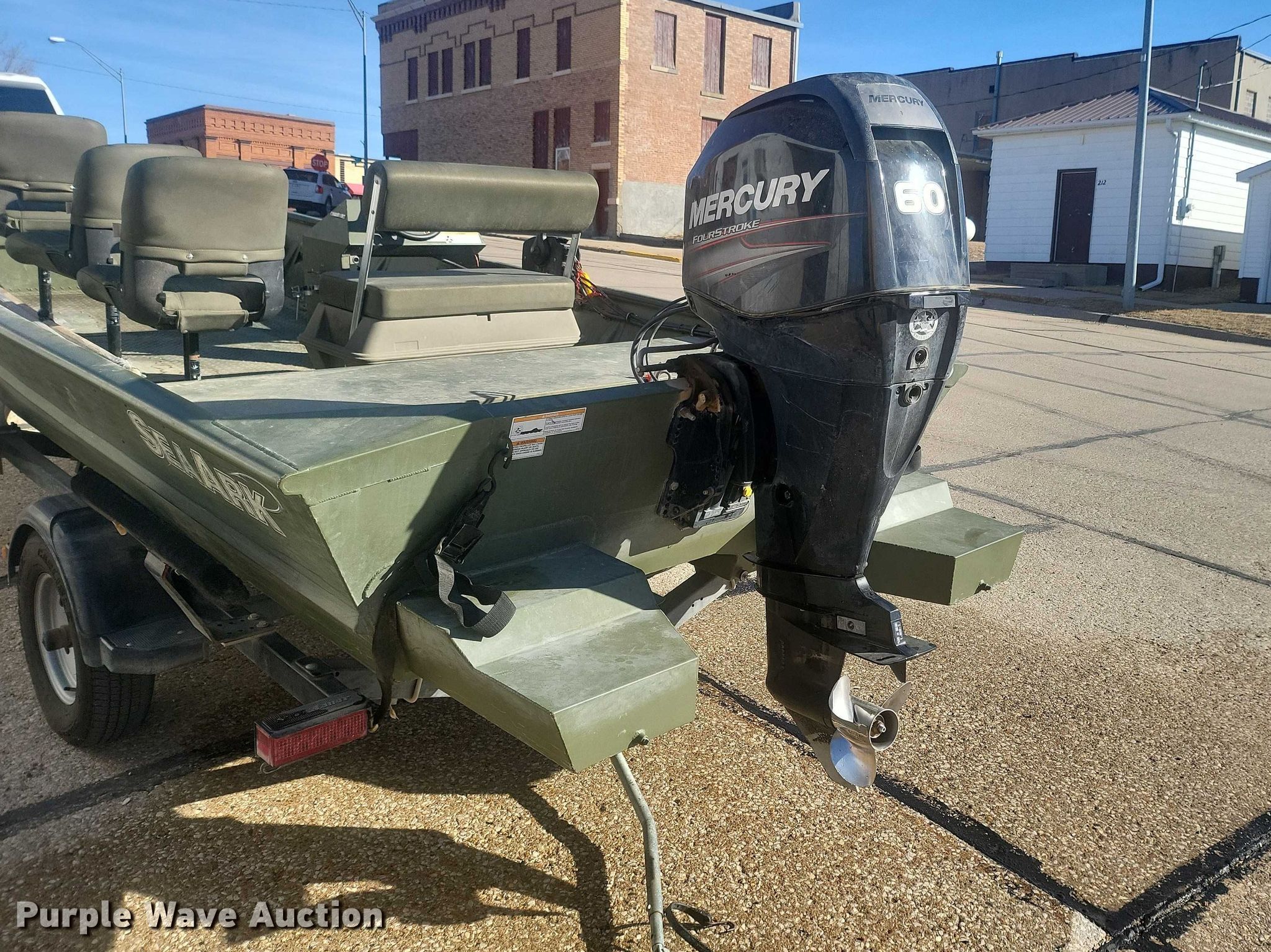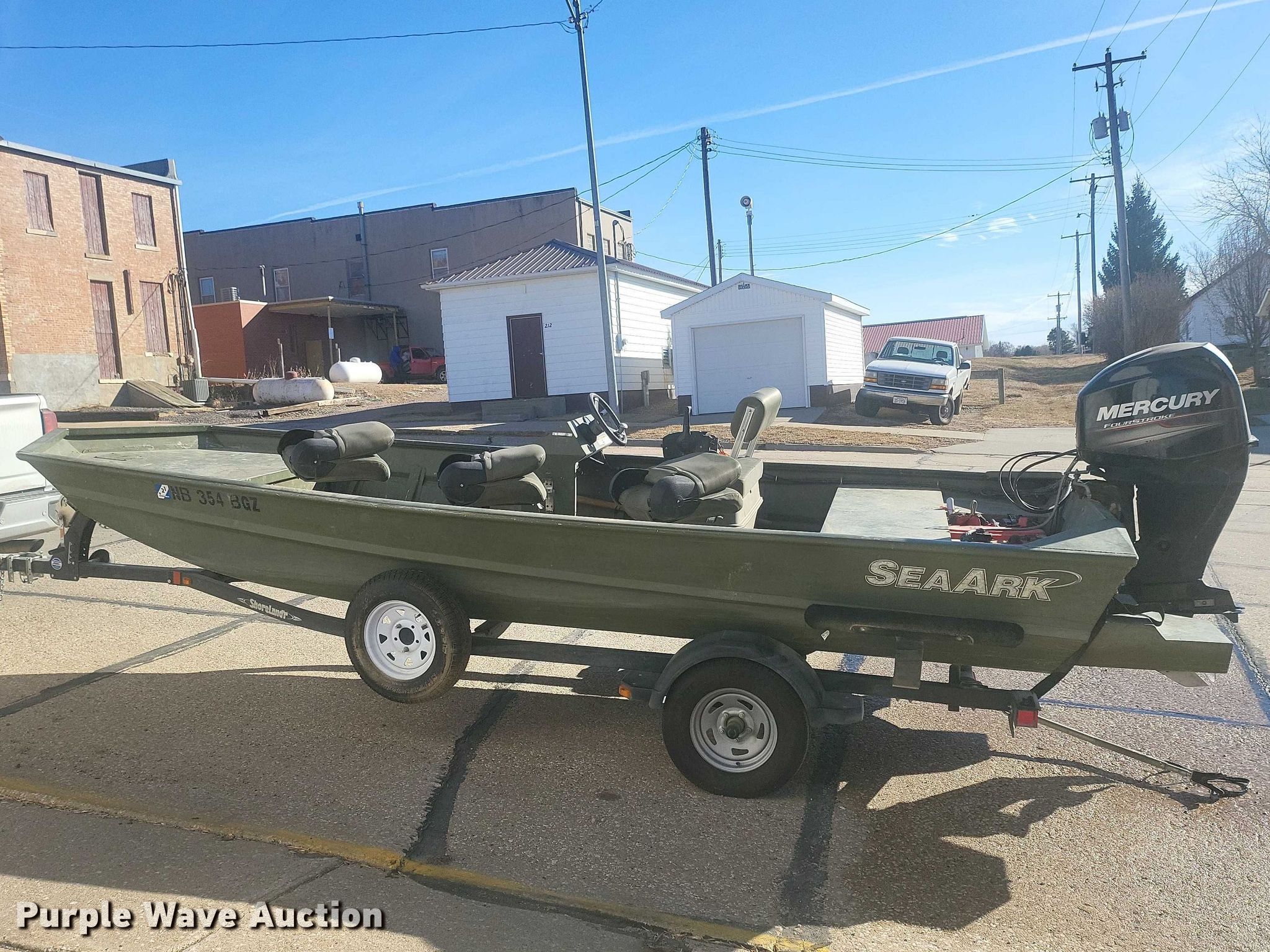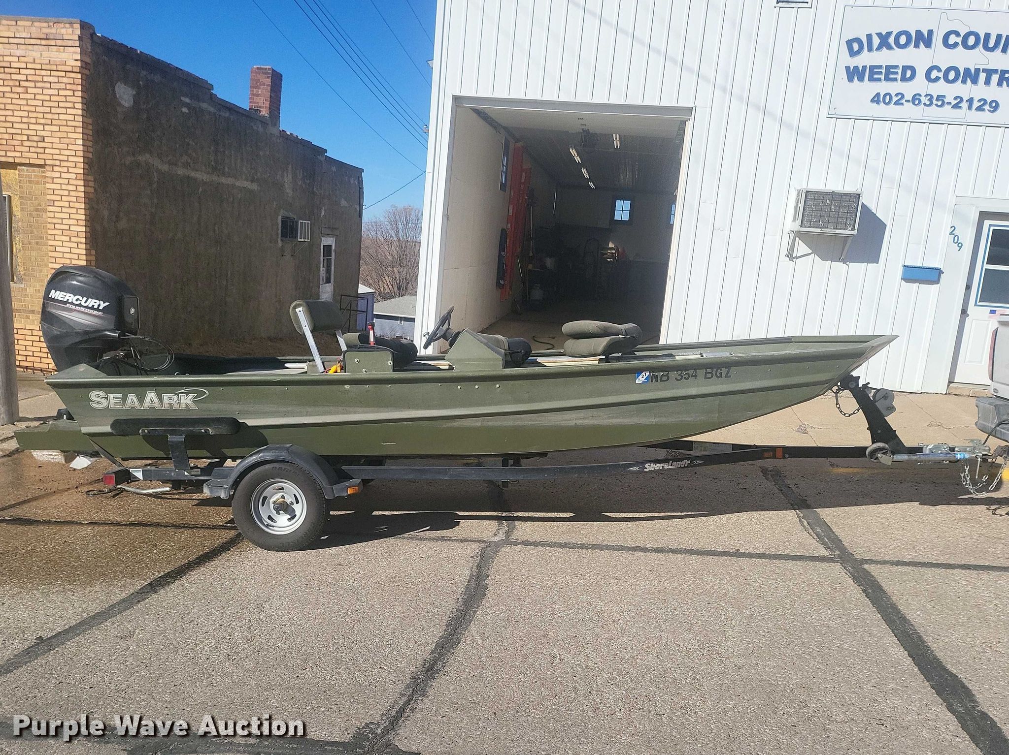 2013 SeaArk boat. Length: 18', Hull ID: S0M36643A313. Engine Engine type: Outboard, 2012 Mercury, Displacement: 0.966L, Cylinders: 4, Fuel type: Gas, HP: 60, Outdrive Propeller: Stainless steel. Operators station Capacity Person: 7, 975 lbs. Trailer 2013 Shoreland'r, VIN: MDAHAK17DA521373, Overall length: 22', Overall width: 84", Ball hitch size: 2", Axles: Single, Tire size: 175/80R13. Notes Owner's manual. Boat: Nebraska title. Trailer: Nebraska title. Title distribution may be delayed up to 14 days from verification of funds.. Dixon County, NE. Allen, NE 68710
