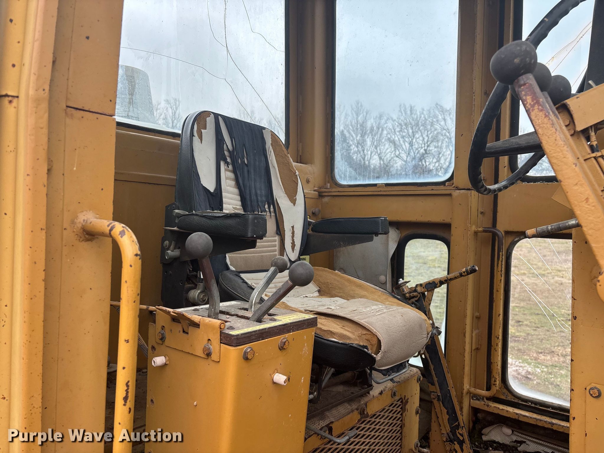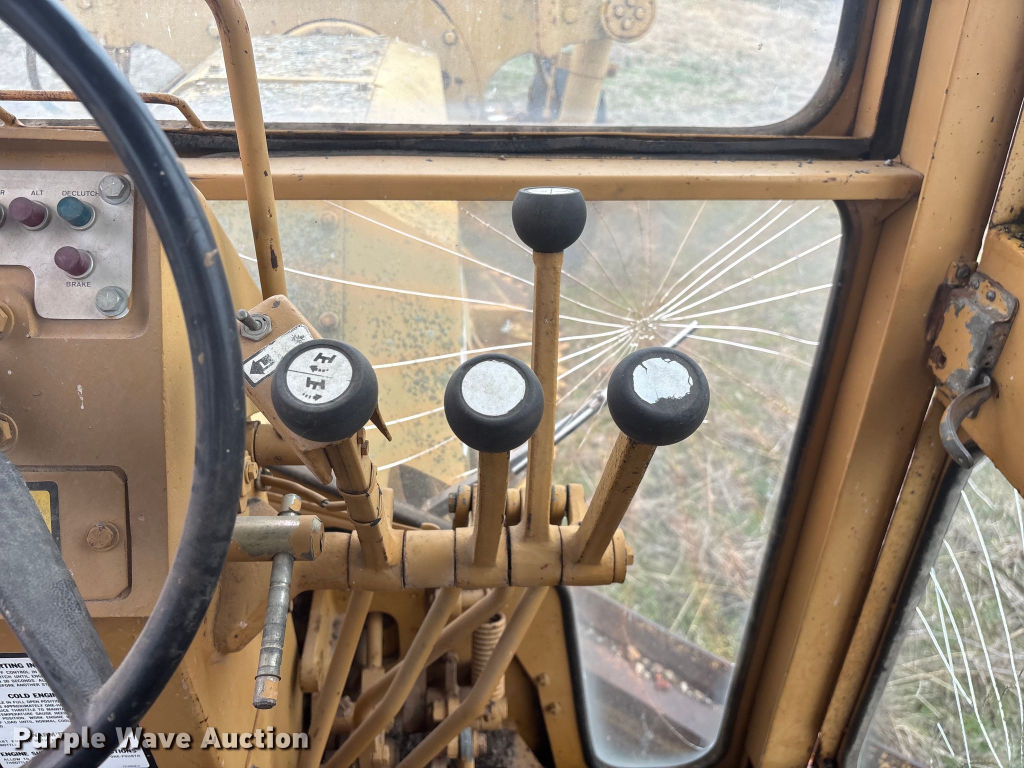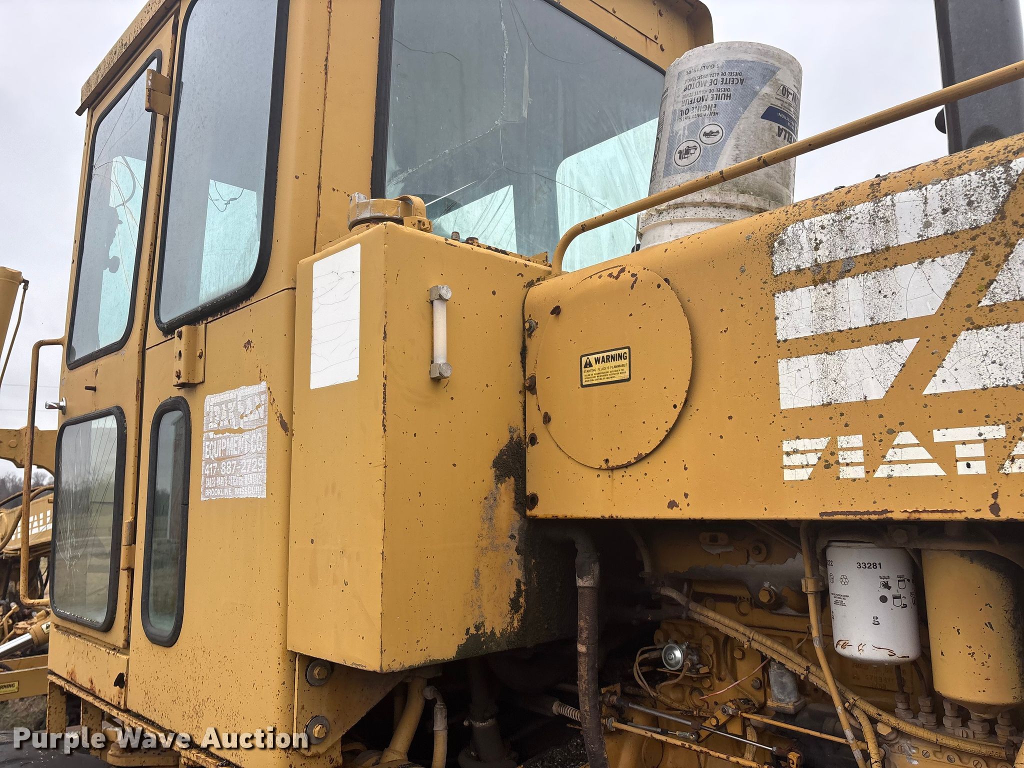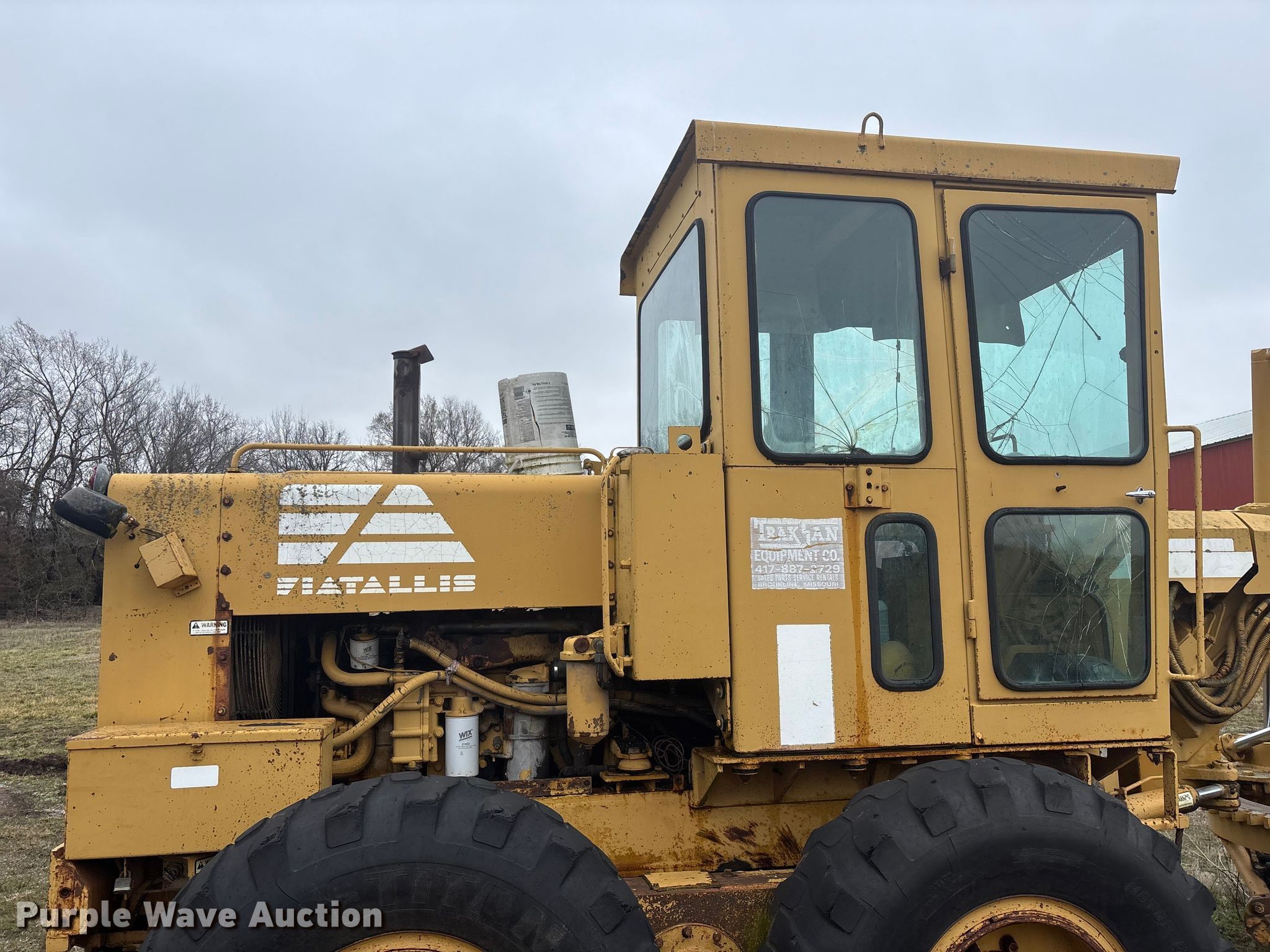 Fiat Allis FG75 motor grader. Hours: 5,182 on meter, Serial: 43S 320. Engine Fiat, Cylinders: 6, Fuel type: Diesel. Transmission Powershift. Operators station Enclosed cab, Heat, Hydraulic control valves: 8. Features Moldboard: Tip control, Side shift, Moldboard total width: 12', Scarifier Scarifier type: Front-mounted Teeth: 10.. Tires Size: 14.00-24. Notes Glass cracked, Dead battery, Engine cranks but does not start , Non-operational transmission , Non-operational unit. Lawrence County MO. Stotts City , MO 65756