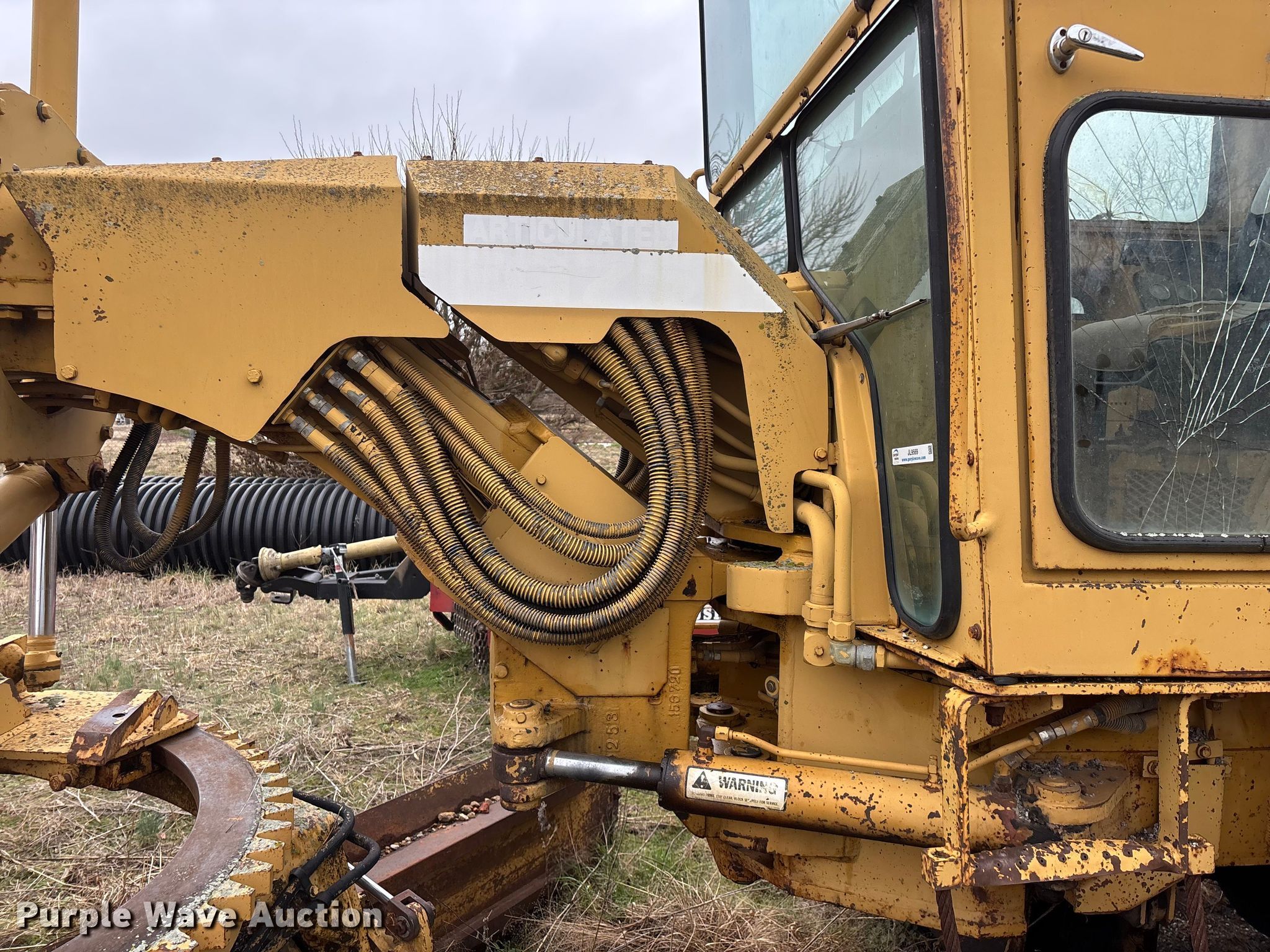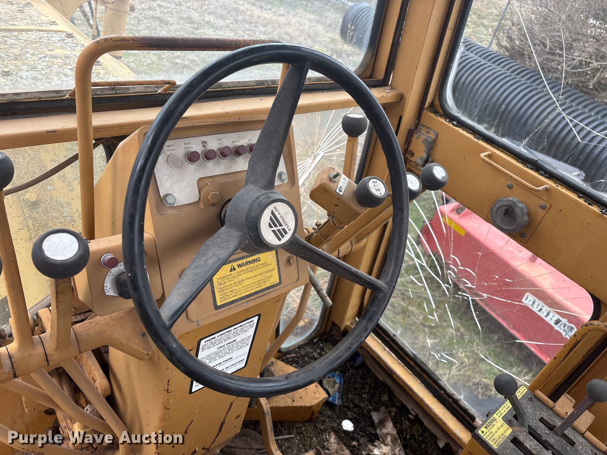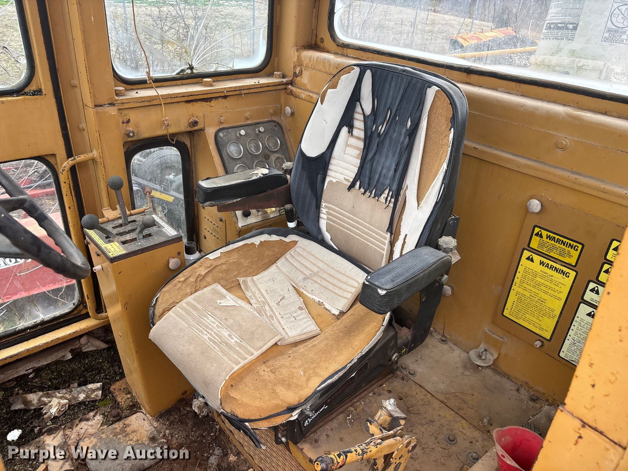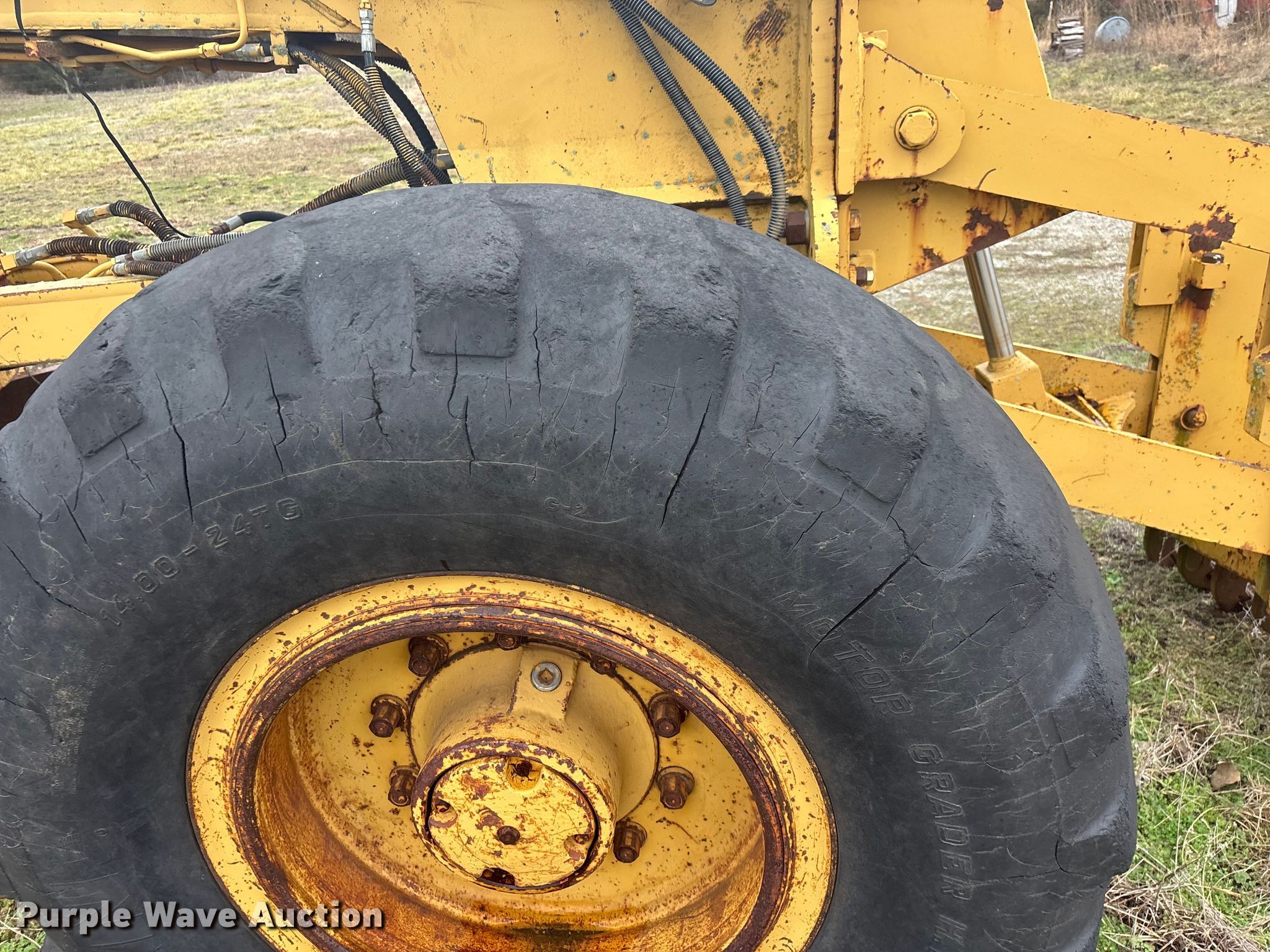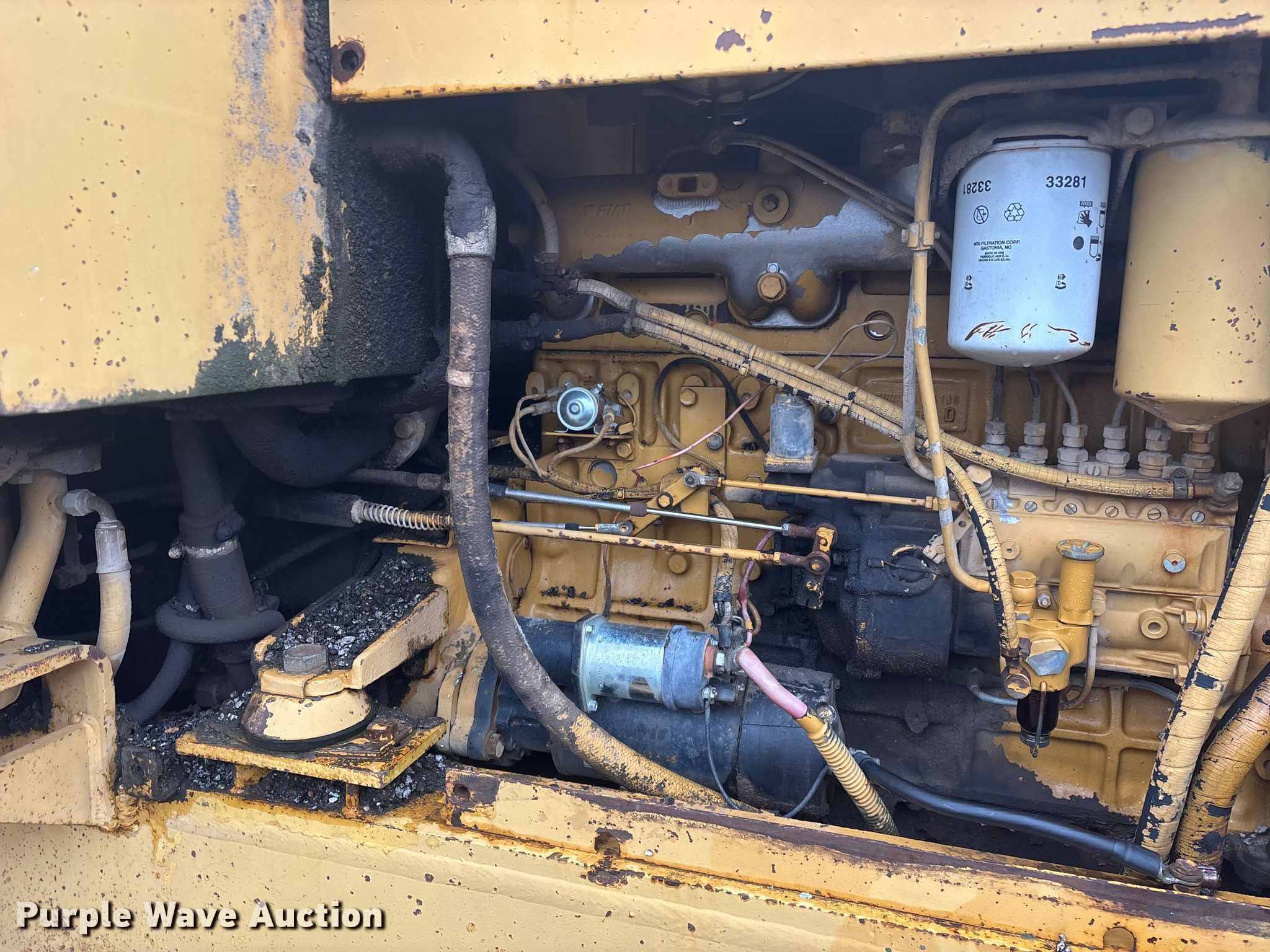 Fiat Allis FG75 motor grader. Hours: 5,182 on meter, Serial: 43S 320. Engine Fiat, Cylinders: 6, Fuel type: Diesel. Transmission Powershift. Operators station Enclosed cab, Heat, Hydraulic control valves: 8. Features Moldboard: Tip control, Side shift, Moldboard total width: 12', Scarifier Scarifier type: Front-mounted Teeth: 10.. Tires Size: 14.00-24. Notes Glass cracked, Dead battery, Engine cranks but does not start , Non-operational transmission , Non-operational unit. Lawrence County MO. Stotts City , MO 65756
