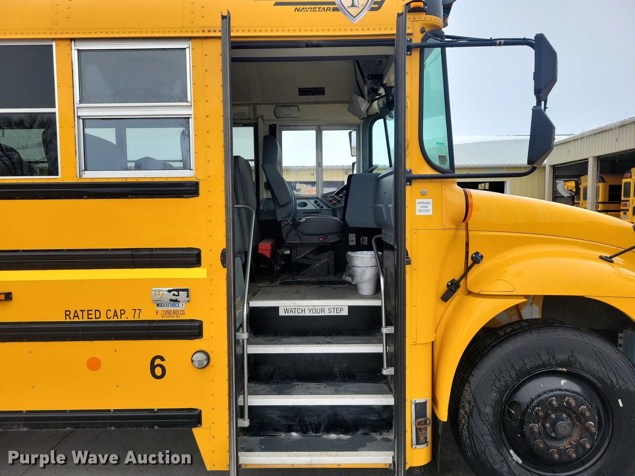 2013 IC PB105 school bus. Miles: 98,224 on odometer, Hours: 6,581 on meter, VIN: 4DRBUSKN3DB306813, Unit #: 6. Engine International Maxxforce, Displacement: 6.4L, Cylinders: 8, Fuel type: Diesel. Transmission Automatic. Chassis Axles: Single, Suspension: Air, Brakes: Air, GVWR: 29,800 lbs. Interior Heat, Heated mirrors, Cruise control, Electric passenger sliding door, Passengers: 77. Tires Size: 11R22.5. Iowa title. Title distribution may be delayed up to 30 days from verification of funds. Bondurant-Farrar Community School District. Bondurant, IA 50035