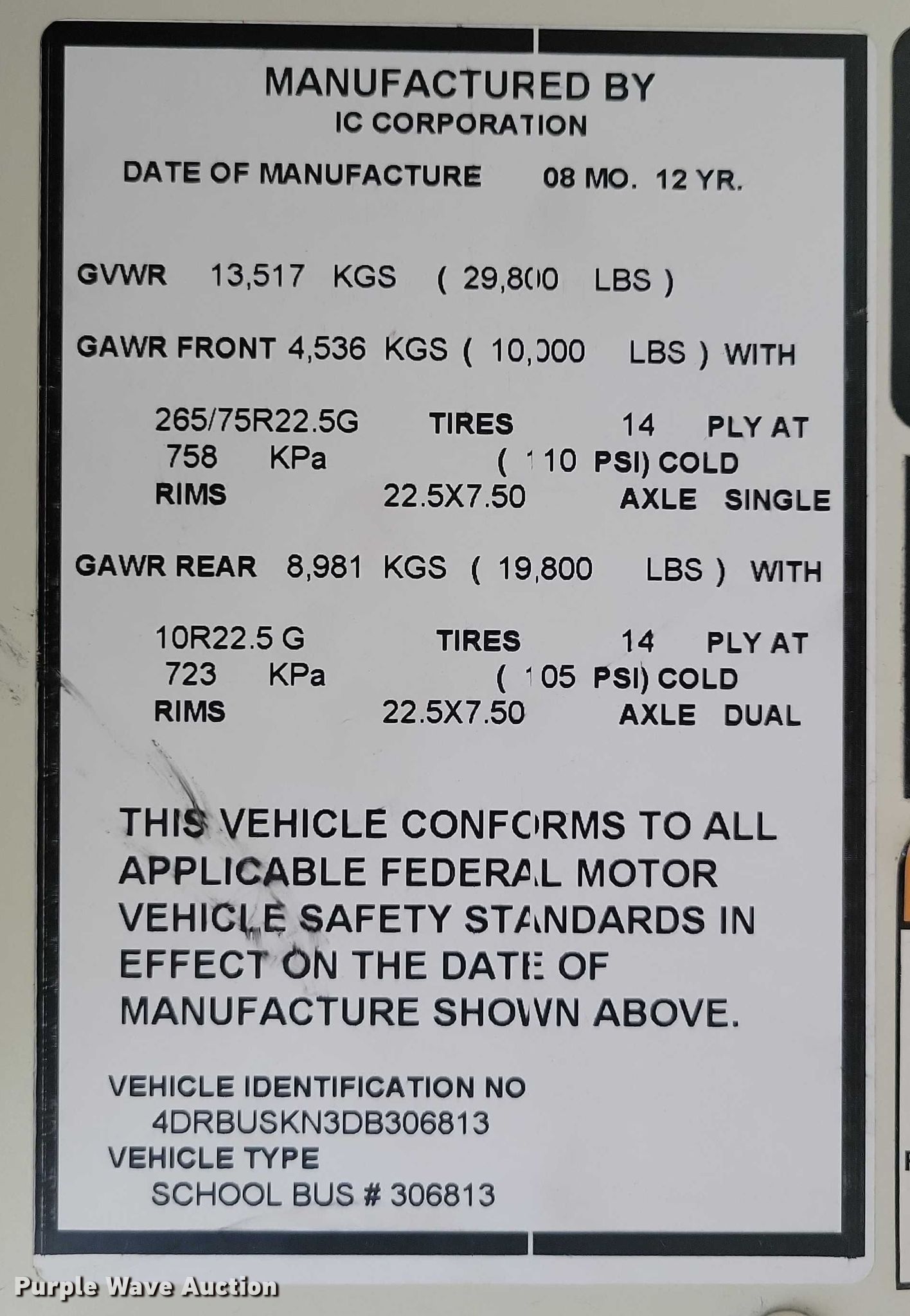 Purple Wave is selling a used Bus in Iowa. This item is a 2013 IC PB105 school bus with the following: Miles: 98,224 on odometer, Hours: 6,581 on meter, VIN: 4DRBUSKN3DB306813, Unit #: 6