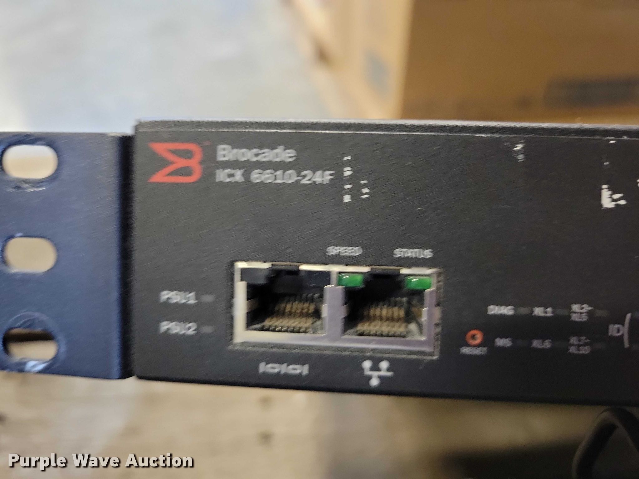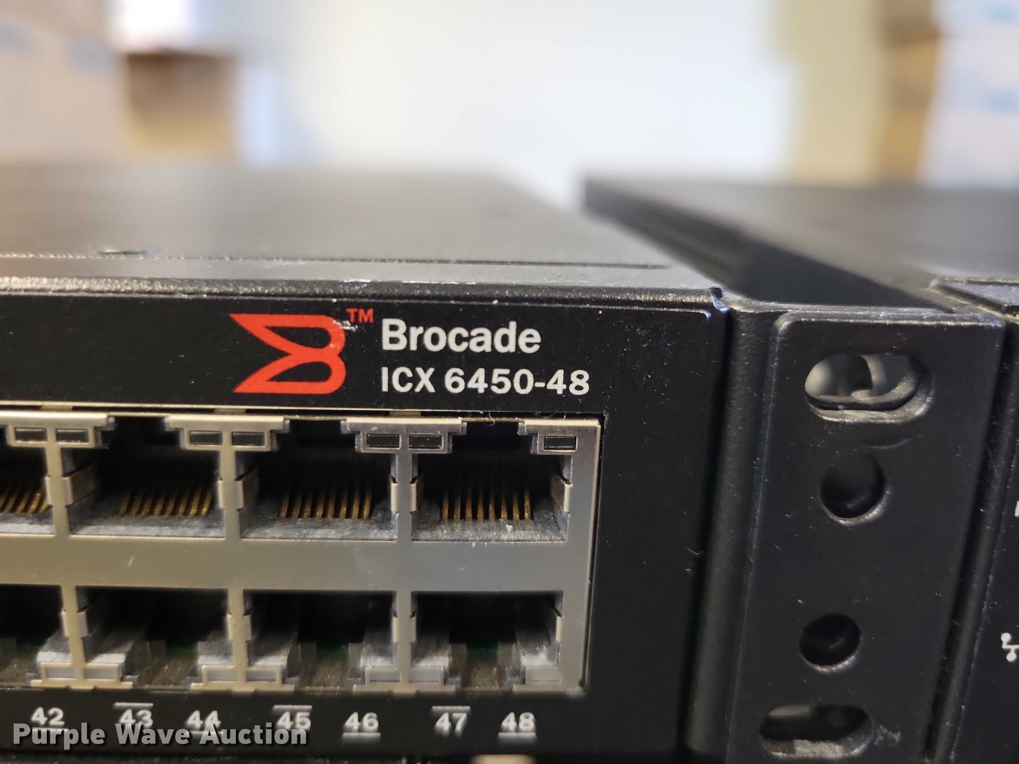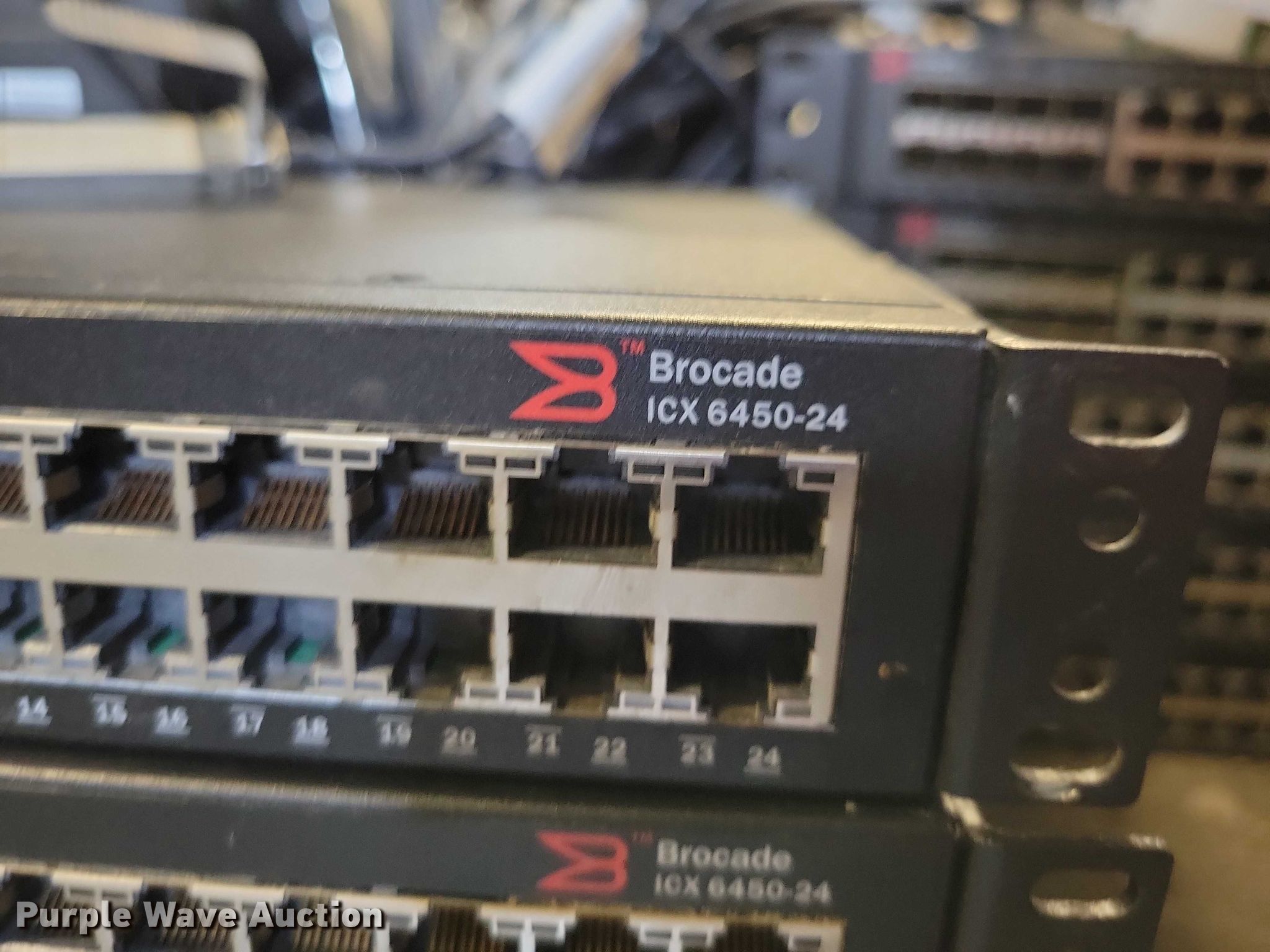 Purple Wave is selling a used Electronics in Iowa. This item is a Brocade ethernet switches with the following: ICX 6610-24F-PE, (5) ICX 6610-48-PE, (4) ICX 6450-24, (22) ICX 6450-48, Power cables may be missing