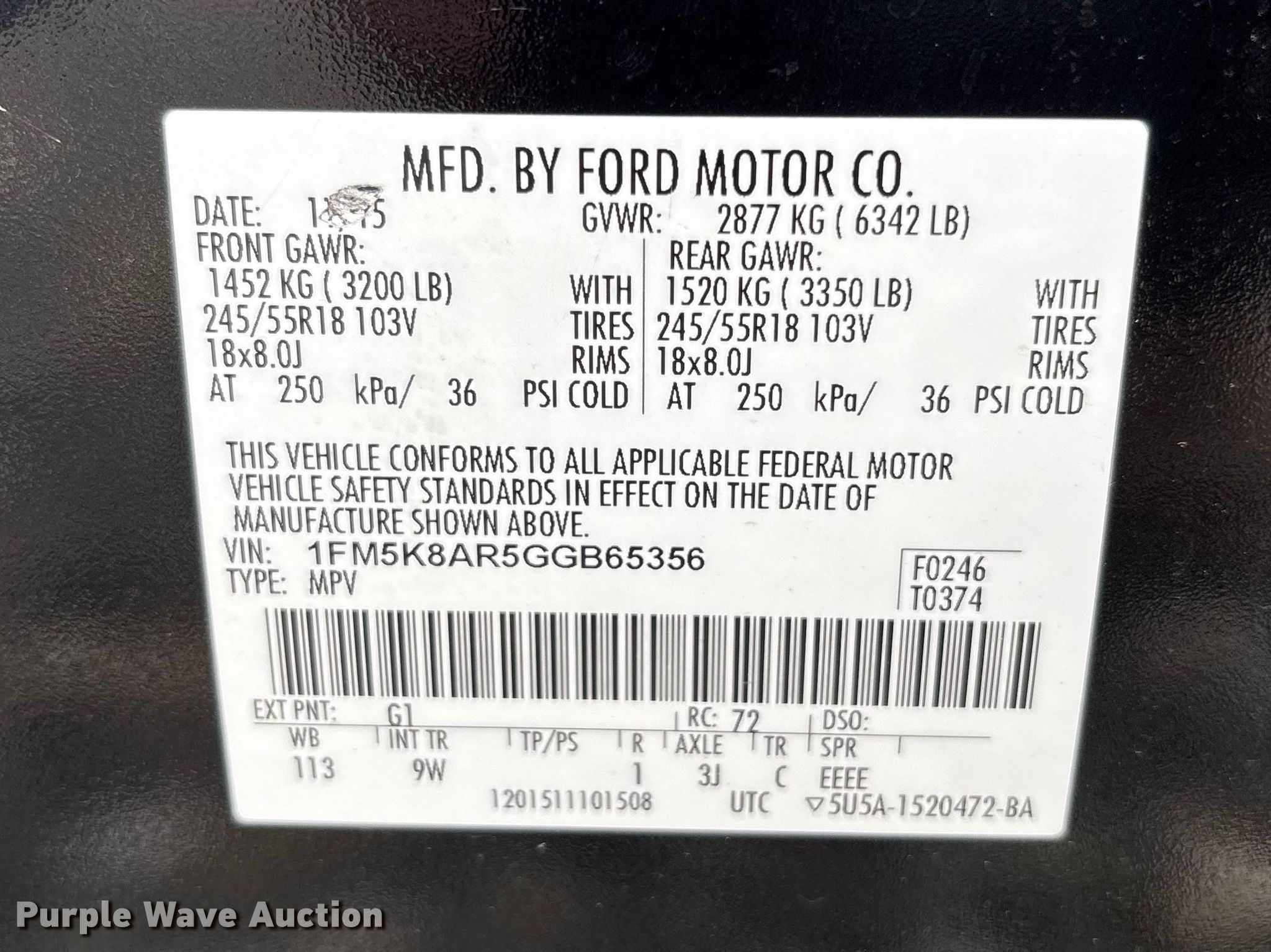 - VIN: 1FM5K8AR5GGB65356