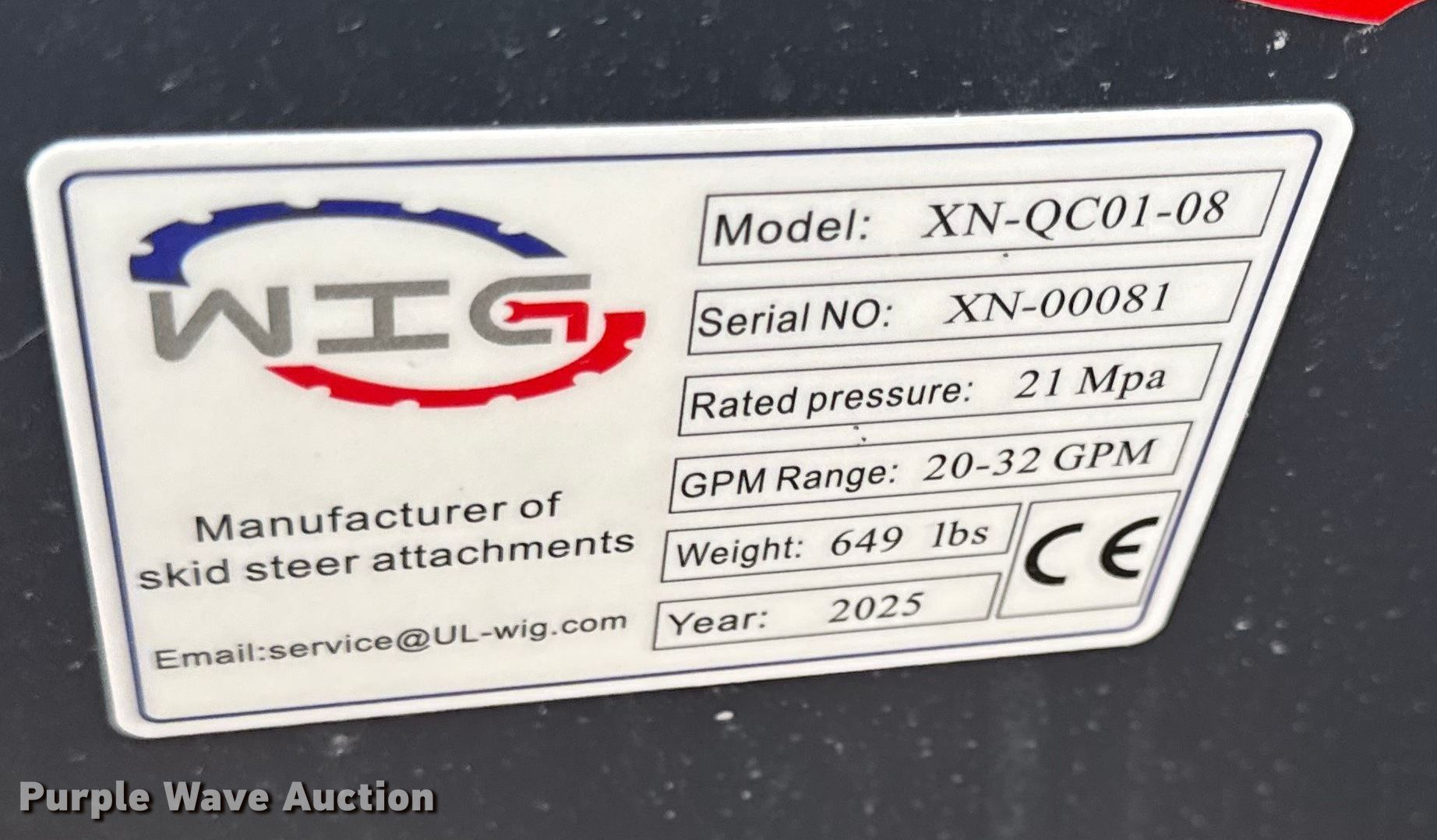 Purple Wave is selling a used Skid Steer Attach. in Kansas. This item is a 2025 WIG skid steer stump grinder with the following: Serial: XN-00081, Unused