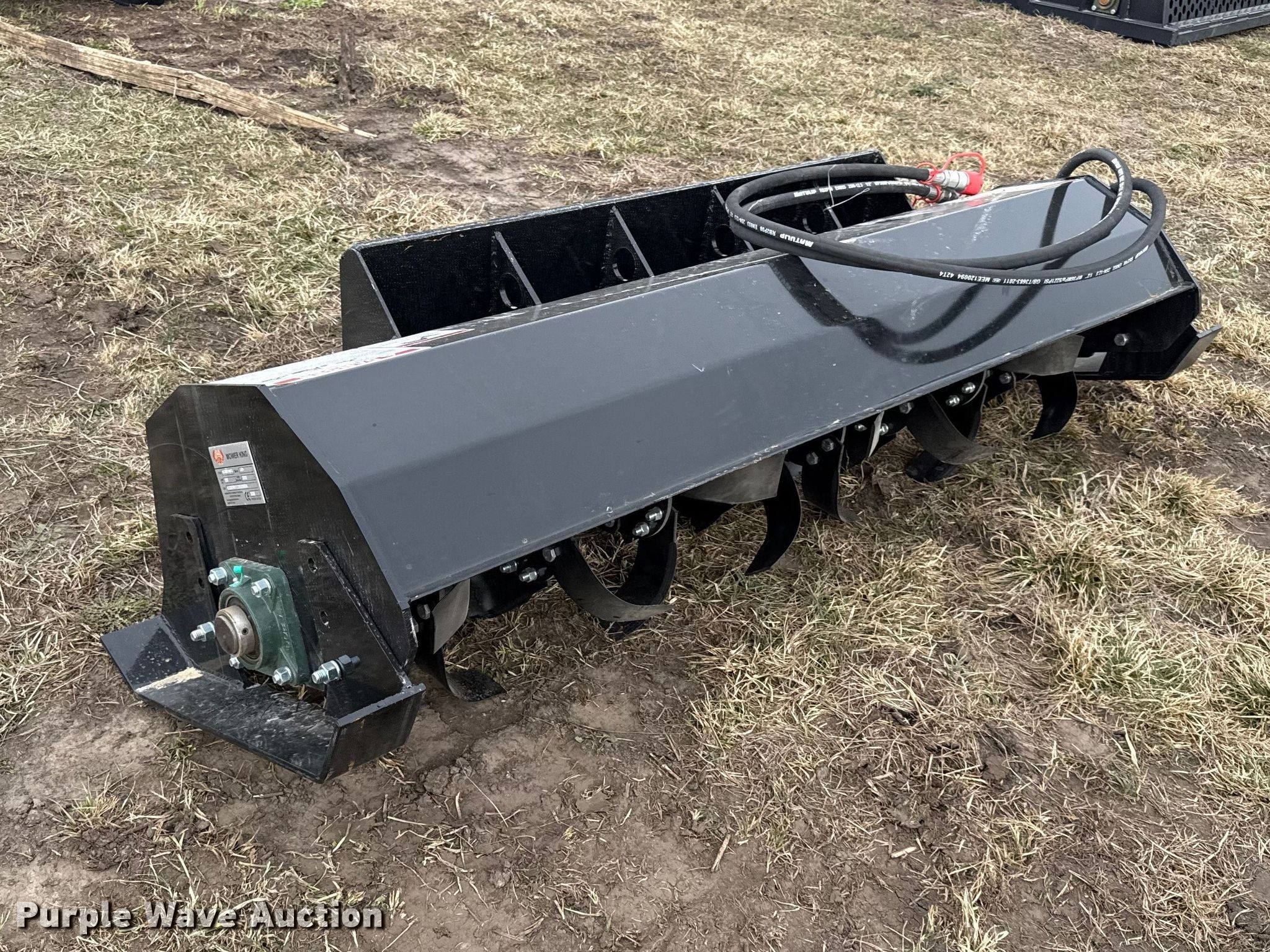 Purple Wave is selling a used Skid Steer Attach. in Kansas. This item is a 2025 Mower King skid steer tiller with the following: Serial: ECSSTR07225120502A, Width: 72"