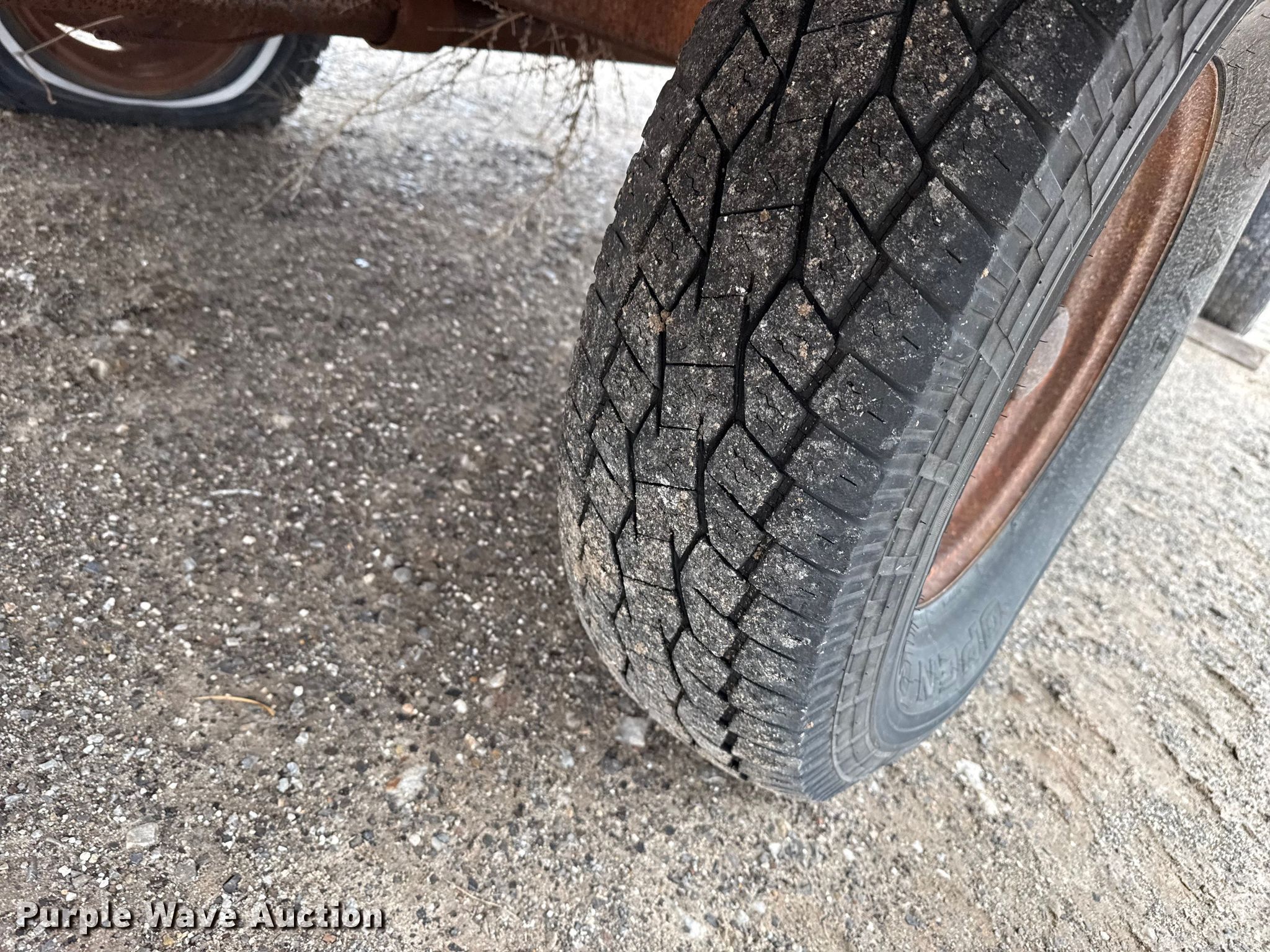 Meyer V-Force 7500 manure spreader. Serial: SV187500251. Features 18' L x 110" W, Side height: 65", Rear beaters: Vertical Quantity: 2. Tires Size: 235/75R16. Notes Tire damage, worn, Flat tires. J & L Oilfield Services. Shattuck, OK 73858
