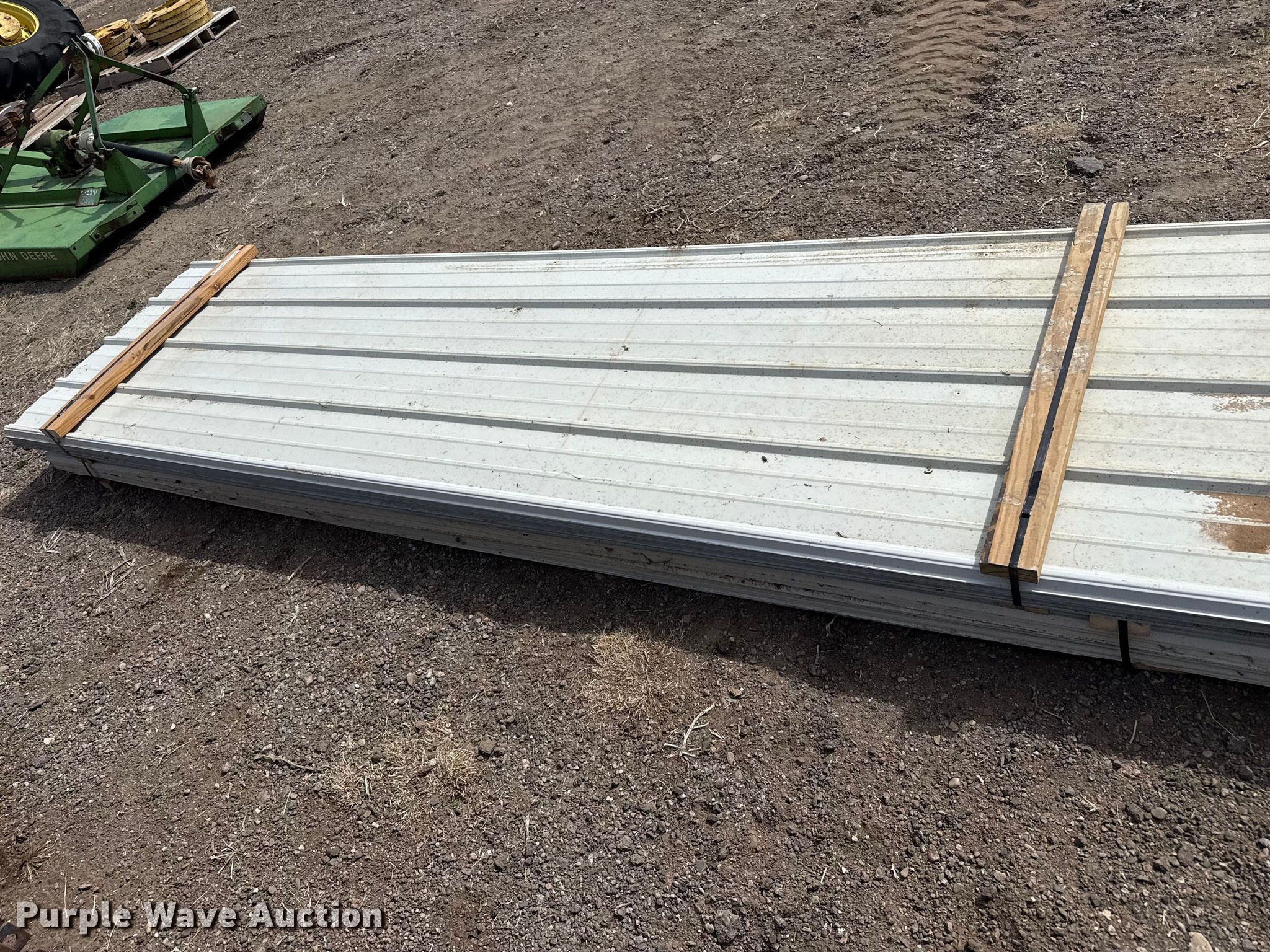 Purple Wave is selling a used Building Materials in Kansas. This item is a (100) sheets of metal siding/roofing with the following: Length: 20', Width: 36"