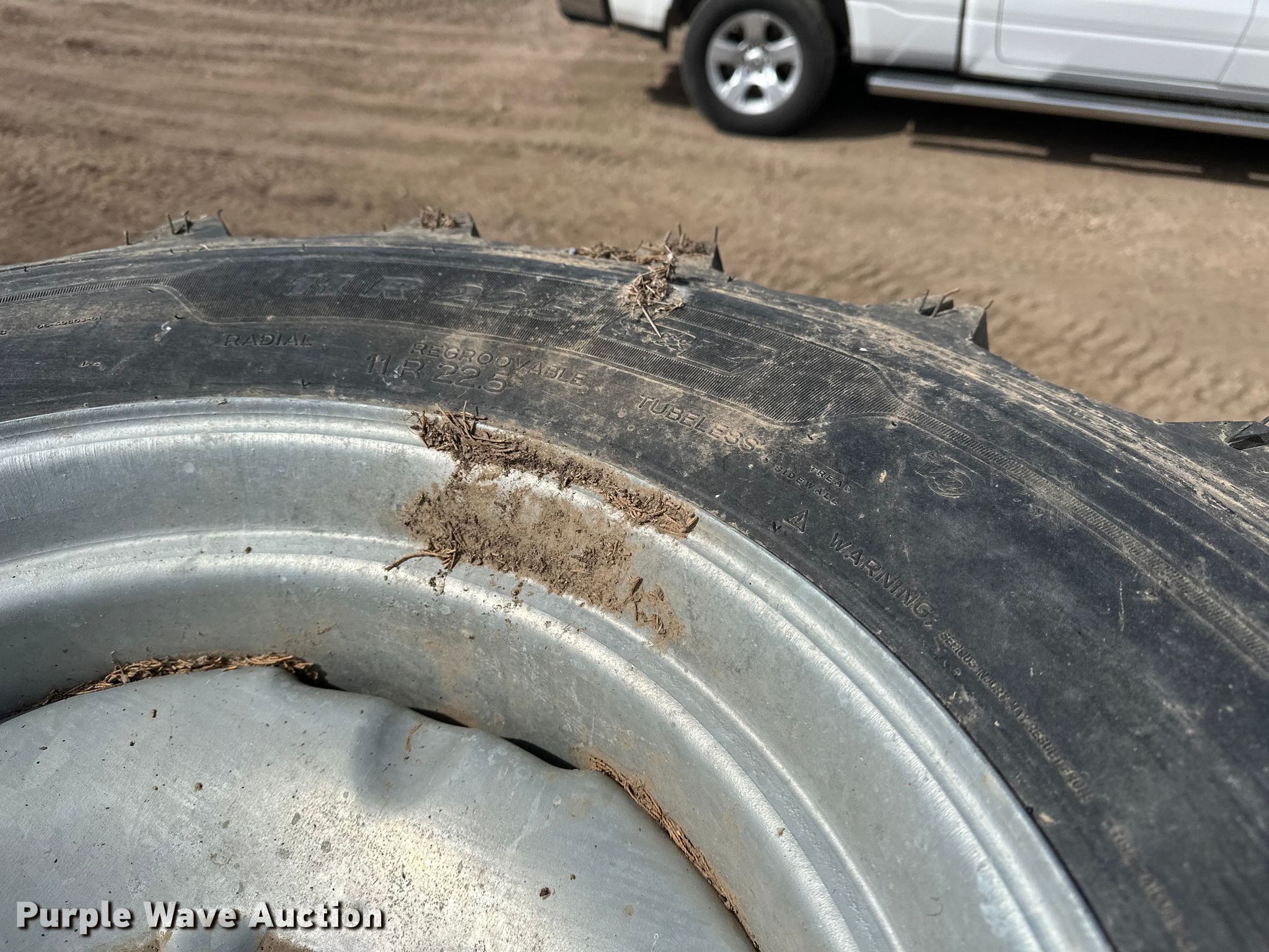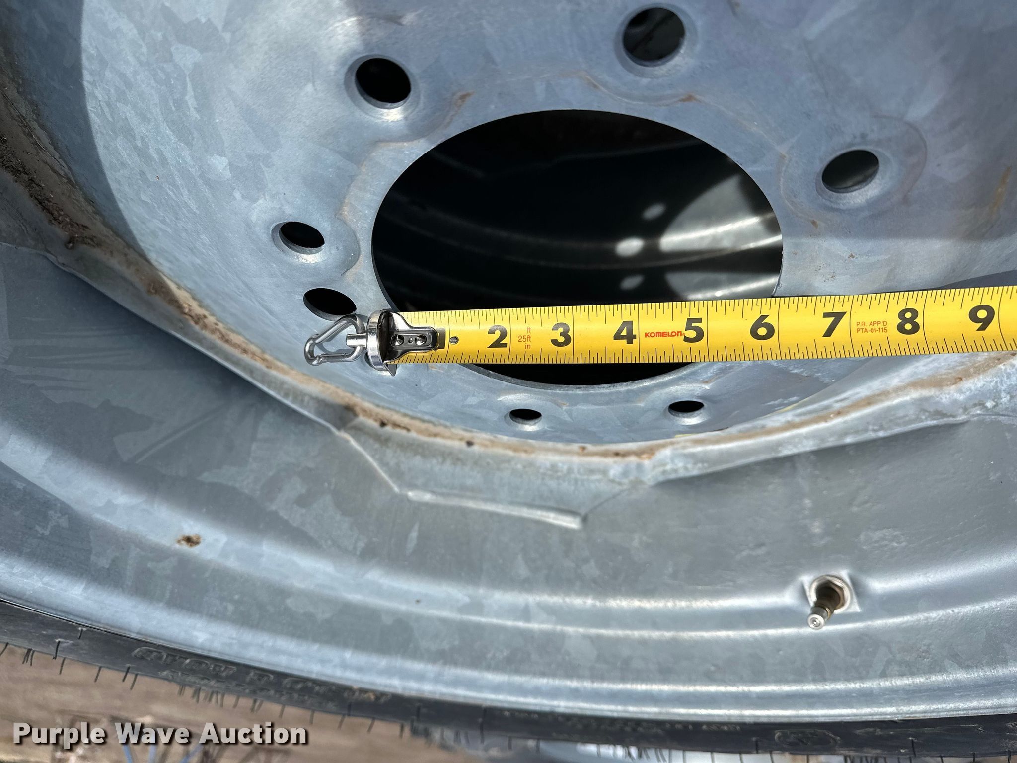 Purple Wave is selling a used Industrial Tires or Tracks in Kansas. This item is a (10) pivot tires and wheels with the following: (5) Michelin X Multi 11R22.5, 8 lug wheels, (5) Firestone Traction 11.2-24, 8 lug wheels