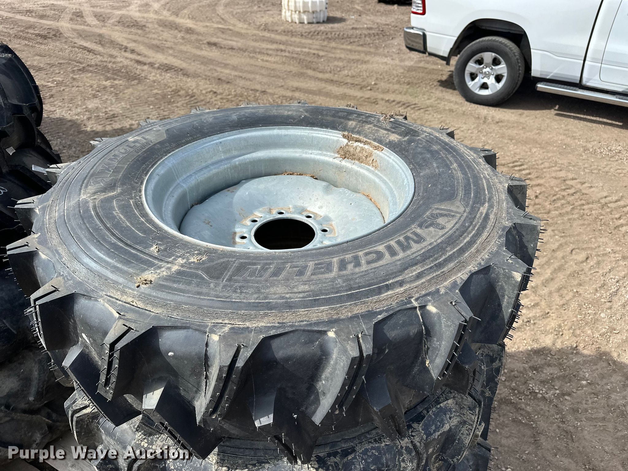 (10) pivot tires and wheels. (5) Michelin X Multi 11R22.5 8 lug wheels, (5) Firestone Traction 11.2-24 8 lug wheels. Western Kansas Ag. Sharon Springs, KS 67758