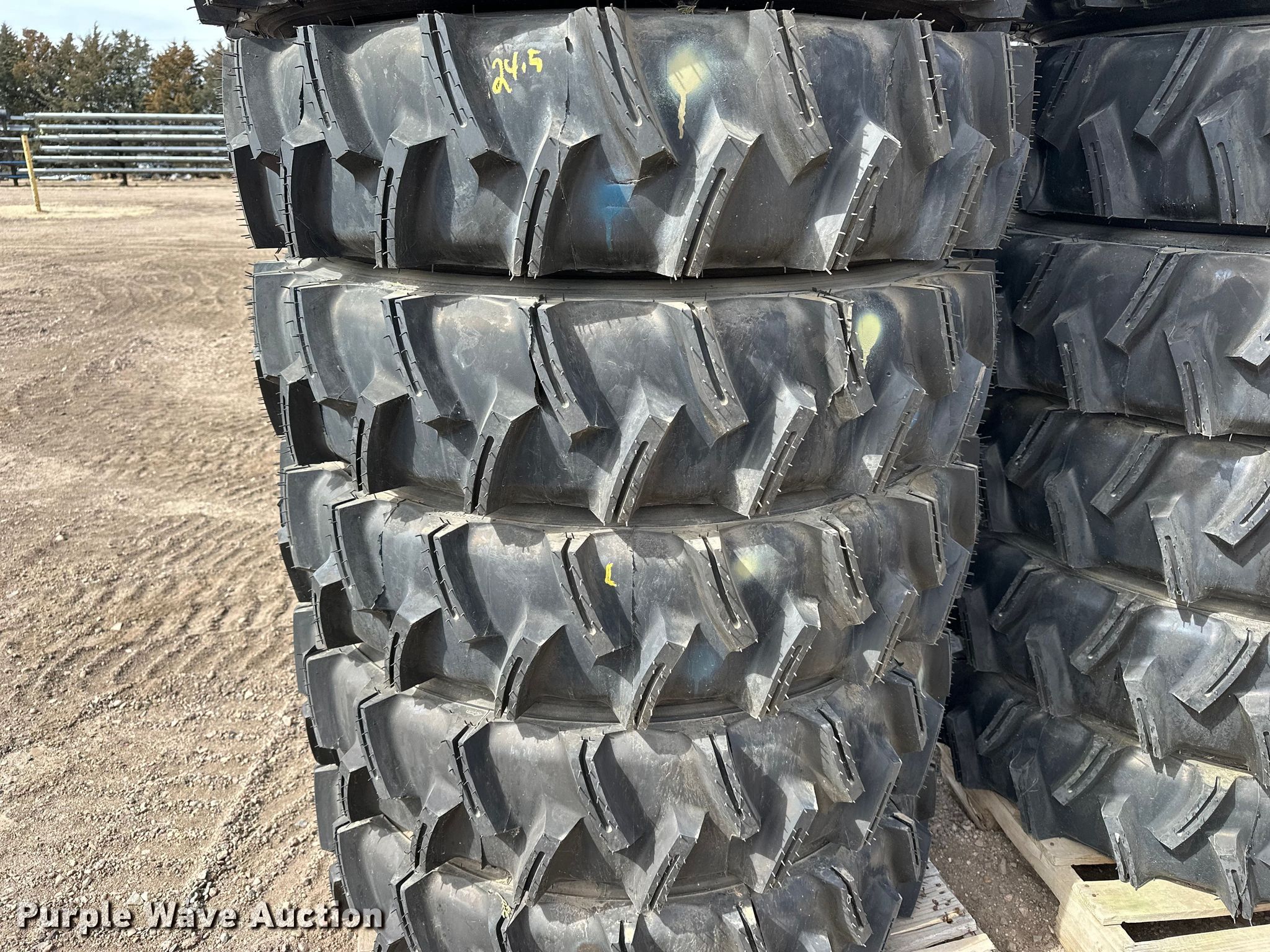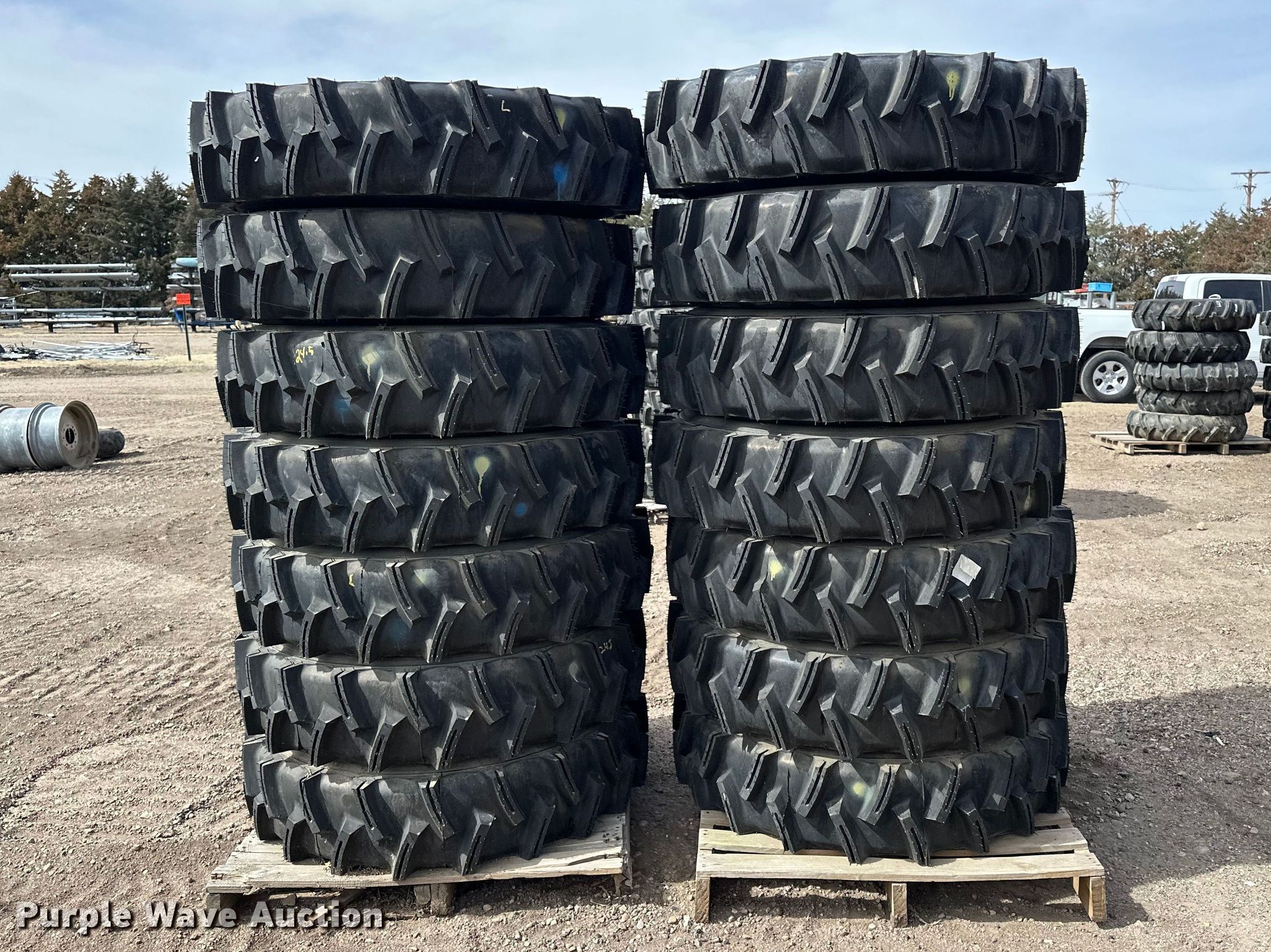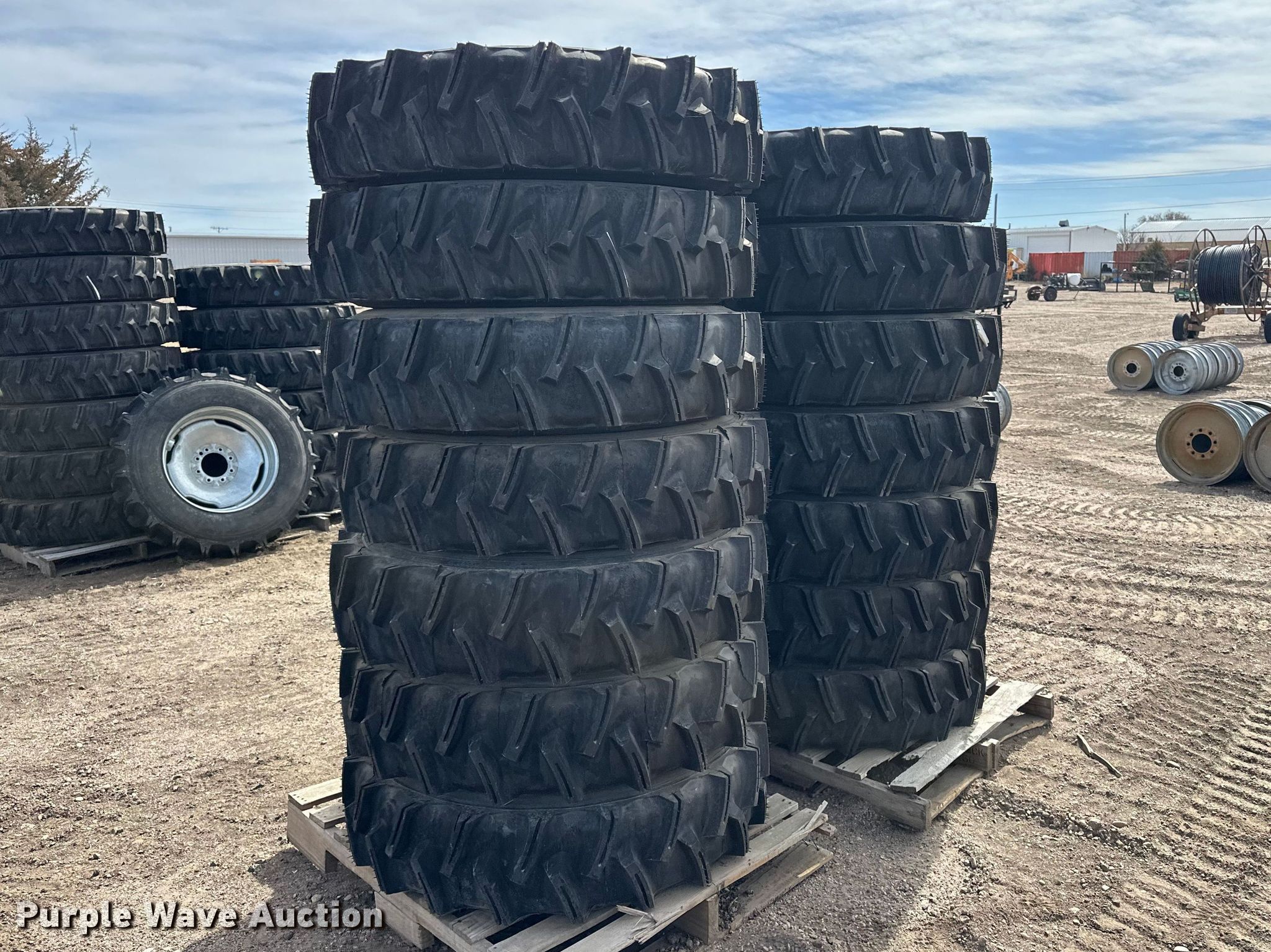 (14) 11R24.5 pivot tires and wheels for sale in Sharon Springs, Kansas. Item ES1033 will sell on April 1st, 2026.