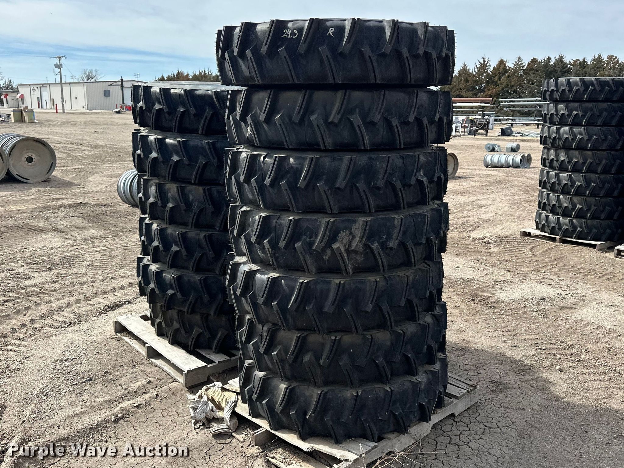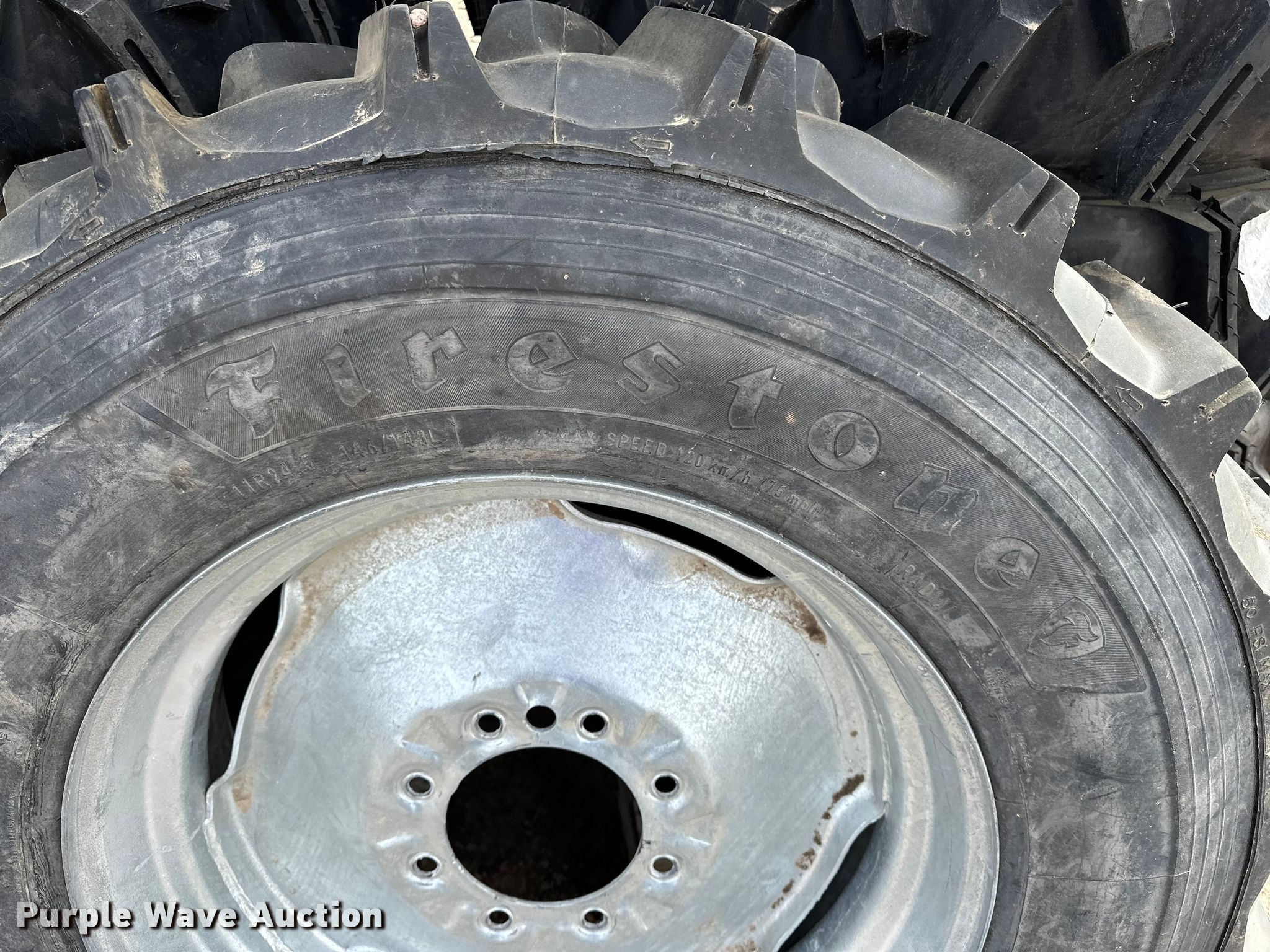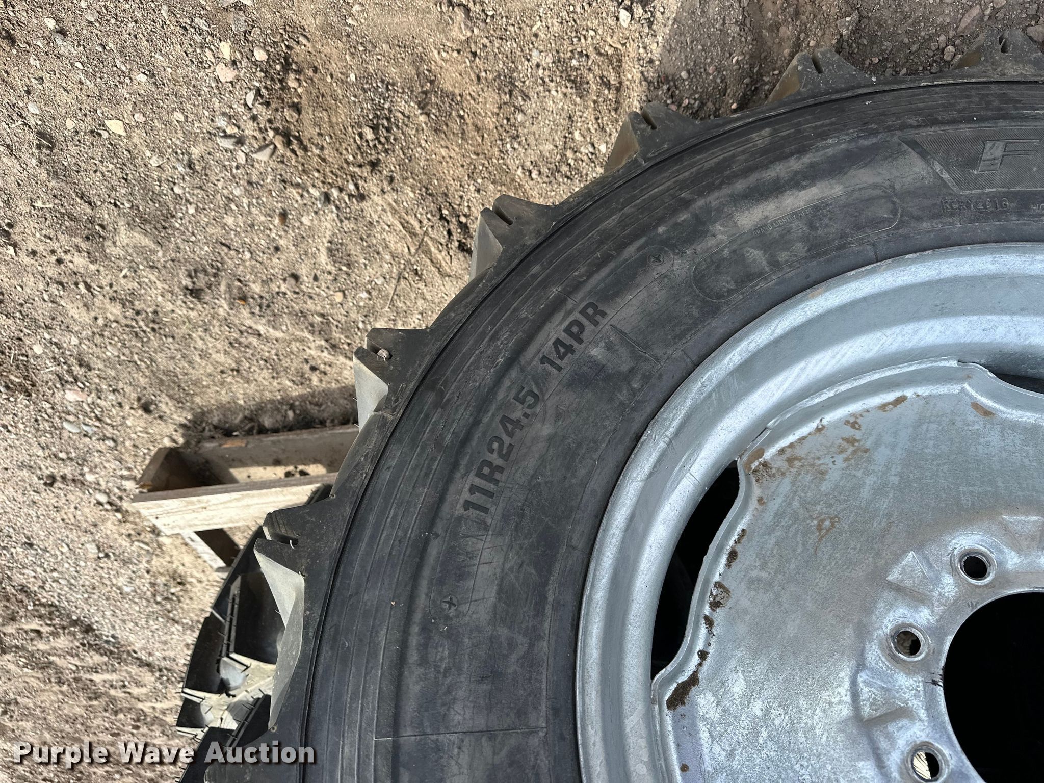 Purple Wave is selling a used Industrial Tires or Tracks in Kansas. This item is a (14) 11R24.5 pivot tires and wheels with the following: 8 lug wheels