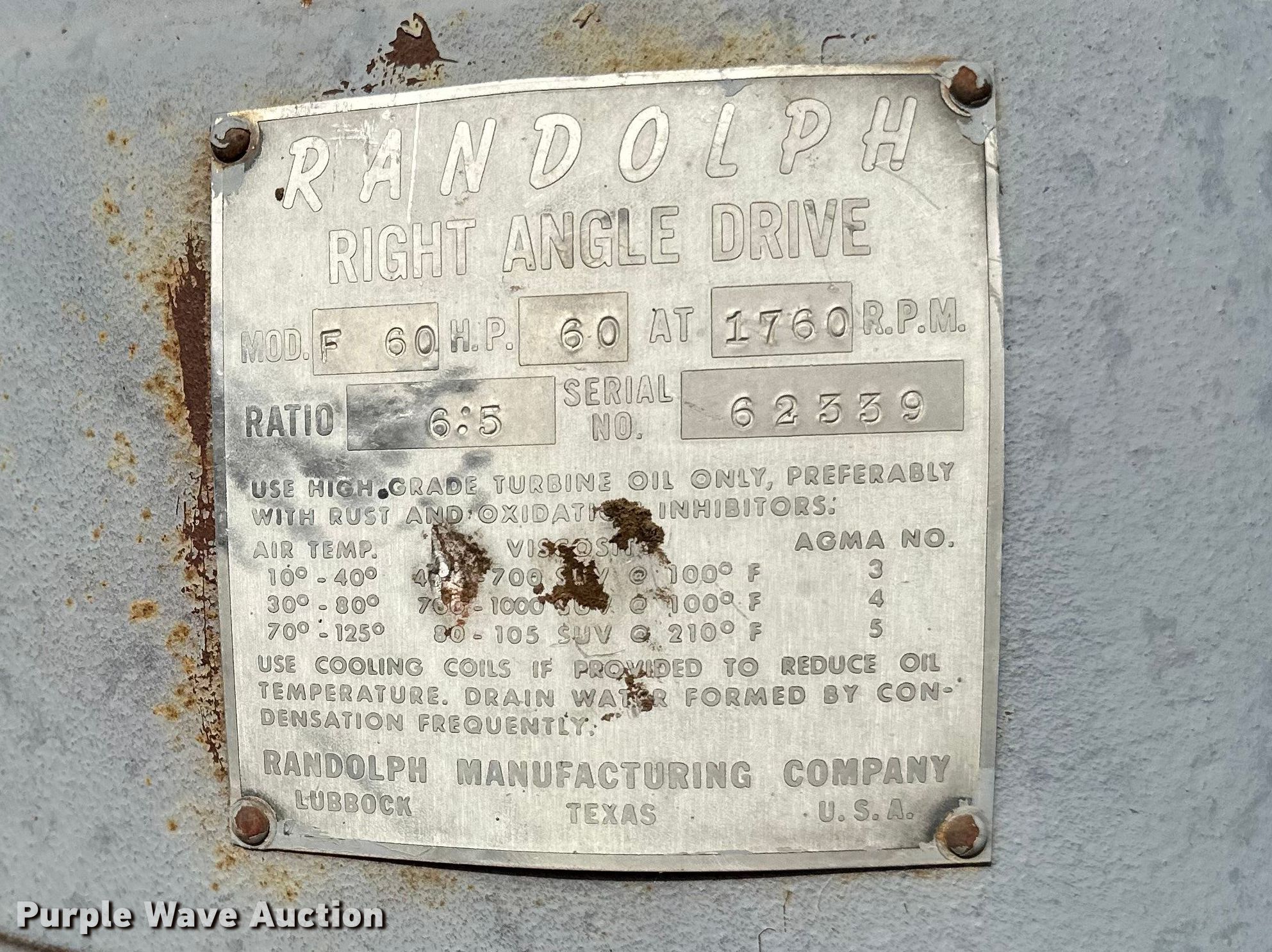 (2) Randolph right angle drives. Model: F60 Serial: 62339, HP: 60, Ratio: 6:5, Model: R100 Serial: 11126, HP: 110. Western Kansas Ag. Sharon Springs, KS 67758