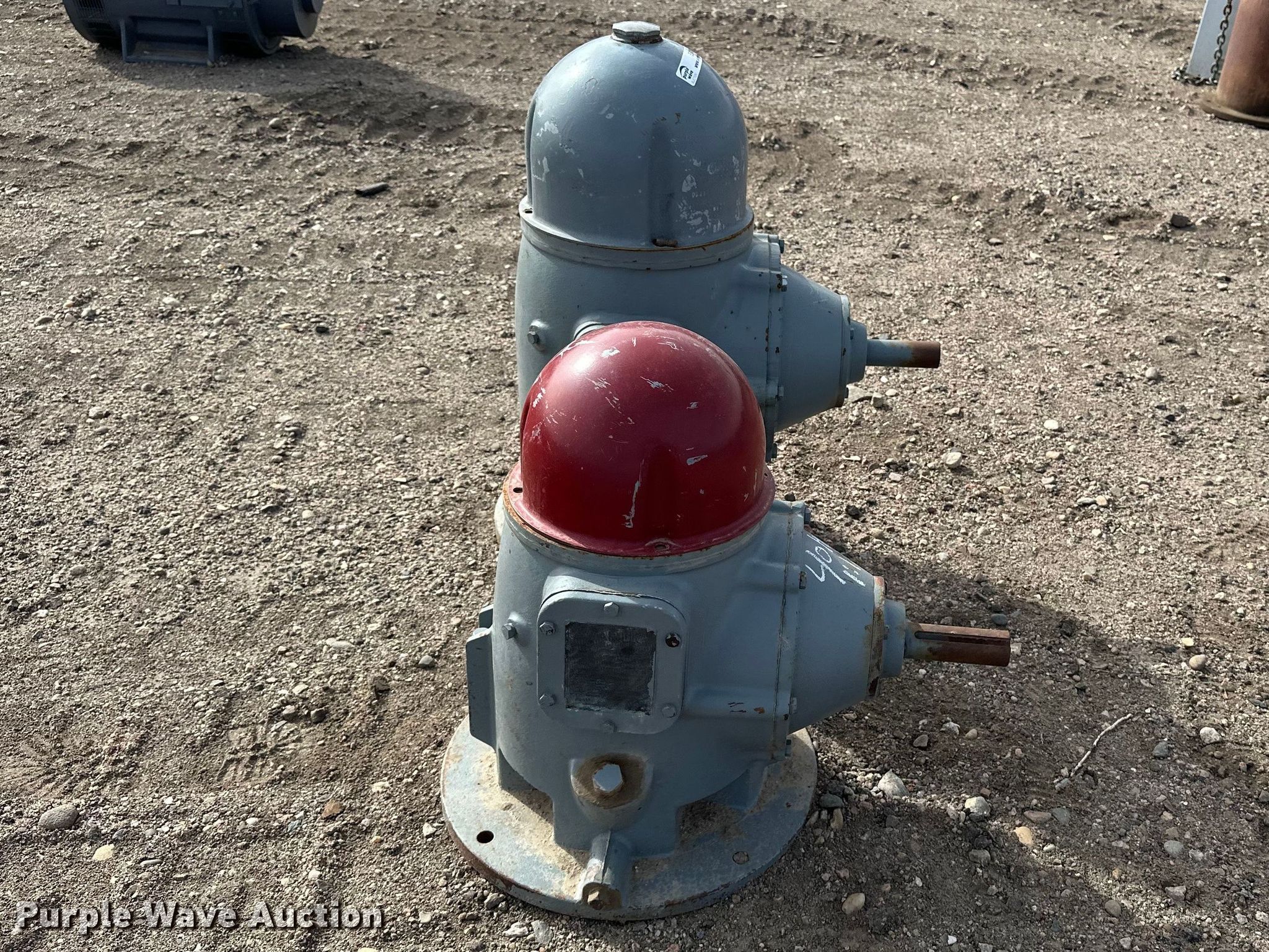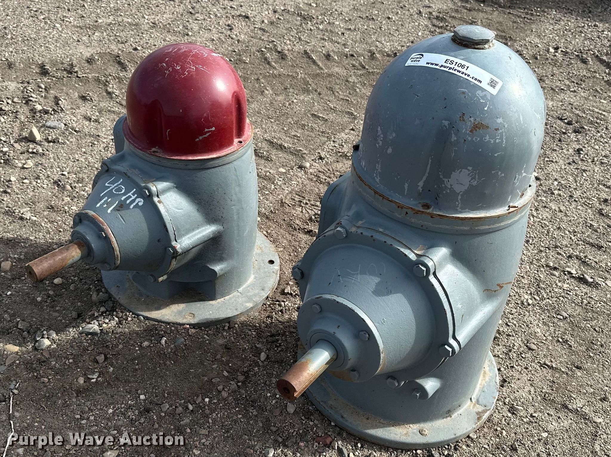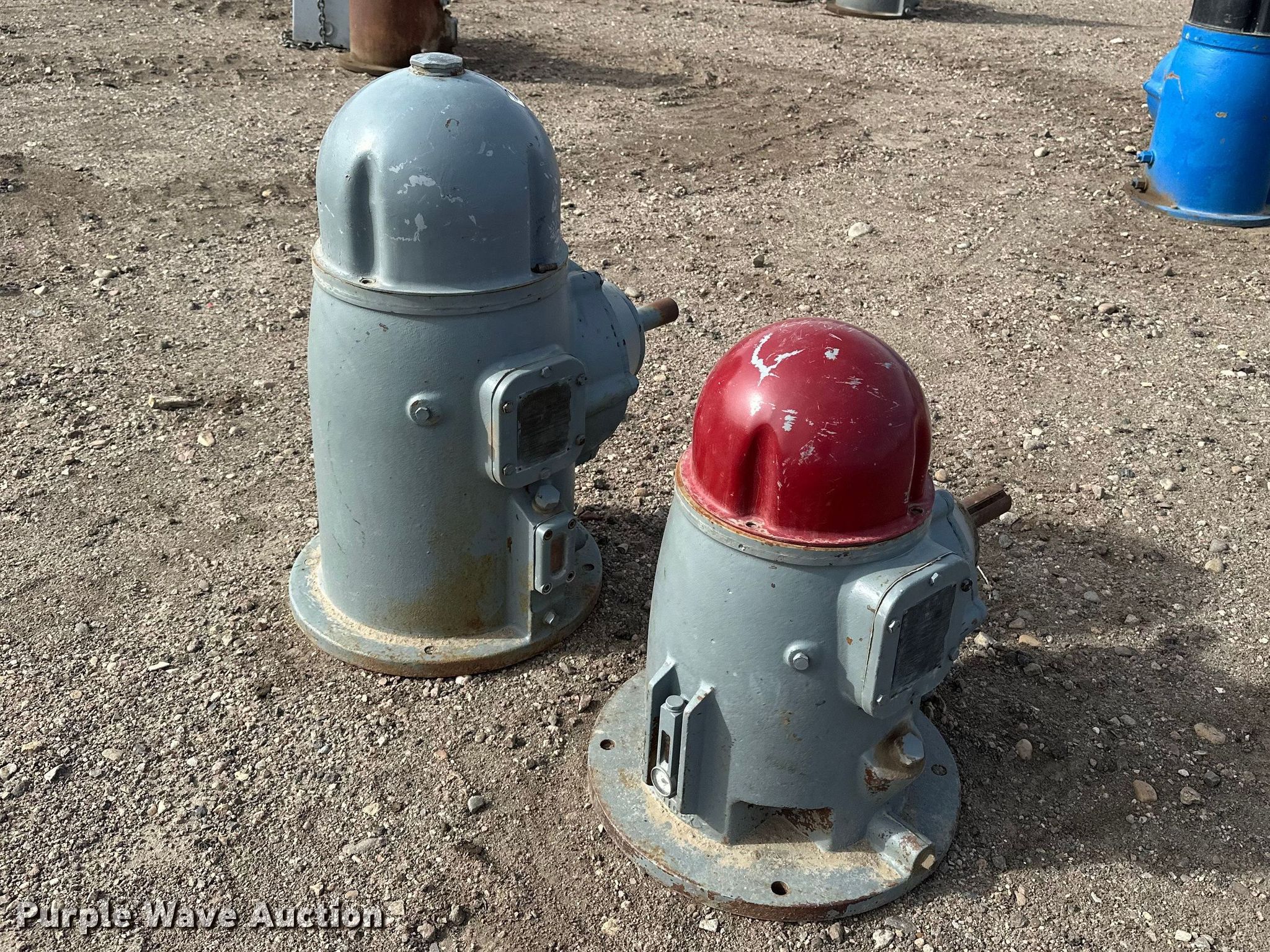 Purple Wave is selling a used Electric Motor in Kansas. This item is a (2) Amarillo right angle drives with the following: Serial: S60 74605, HP: 60, Ratio: 5:4, Serial: S40B 76502, HP: 40, Ratio: 1:1