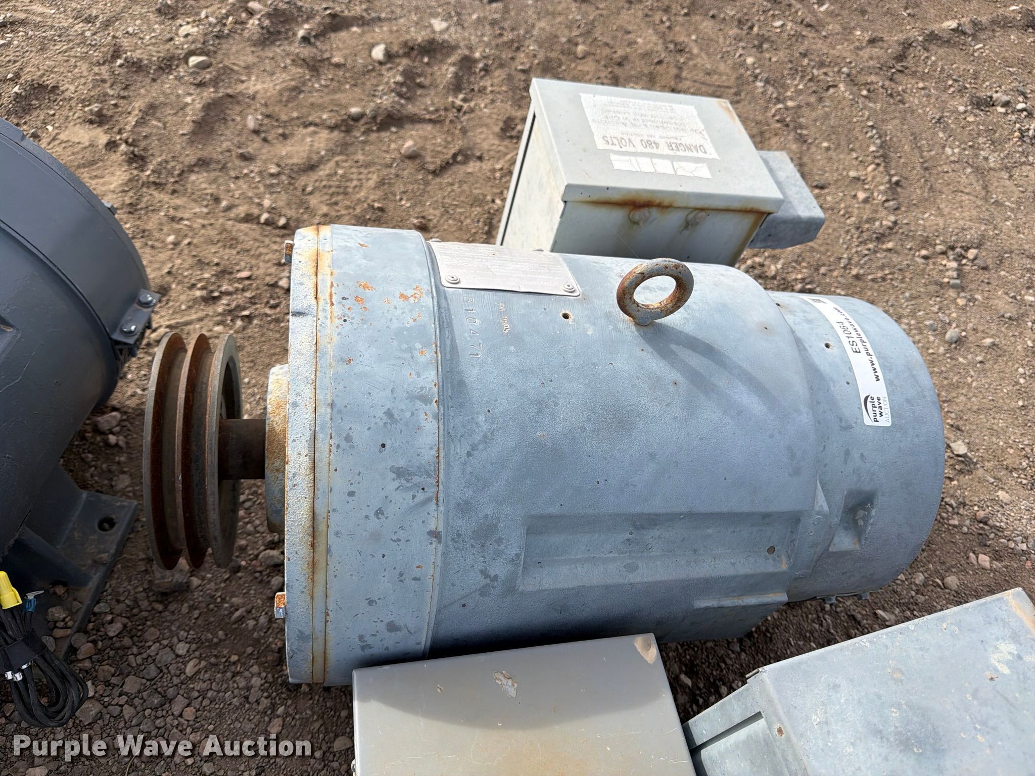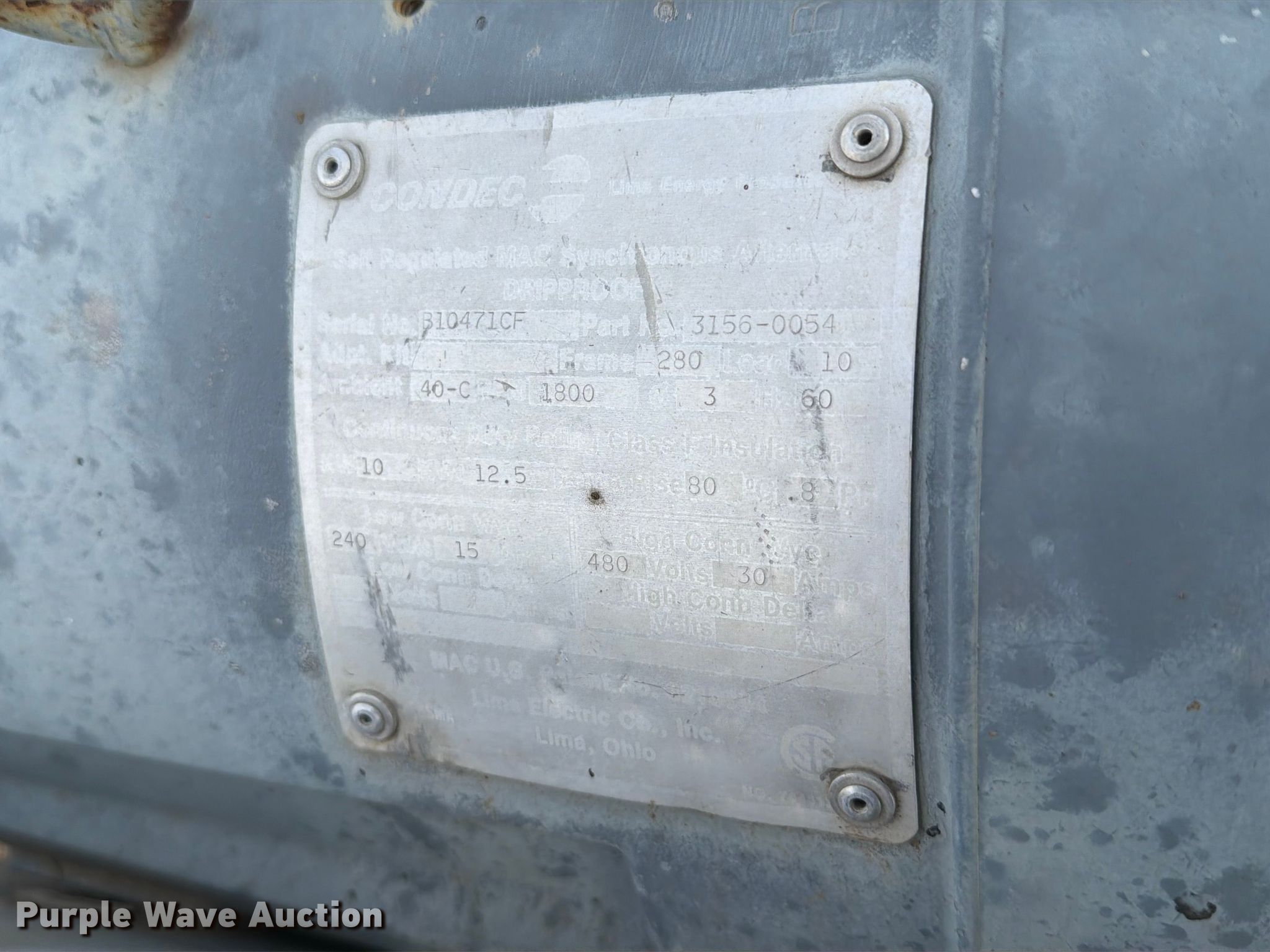 (4) electric motors. Condec Serial: B10471CF, Phase: 3, kW: 10, Volts: 480, Condec Serial: B14693DB, Phase: 3, kW: 7.5, Volts: 480, Hz: 60, Lima Mac Serial: A80832AM, Phase: 3, kW: 7.5, Volts: 230/460, Unknown make Phase: 3, kW: 10, Volts: 480. Western Kansas Ag. Sharon Springs, KS 67758
