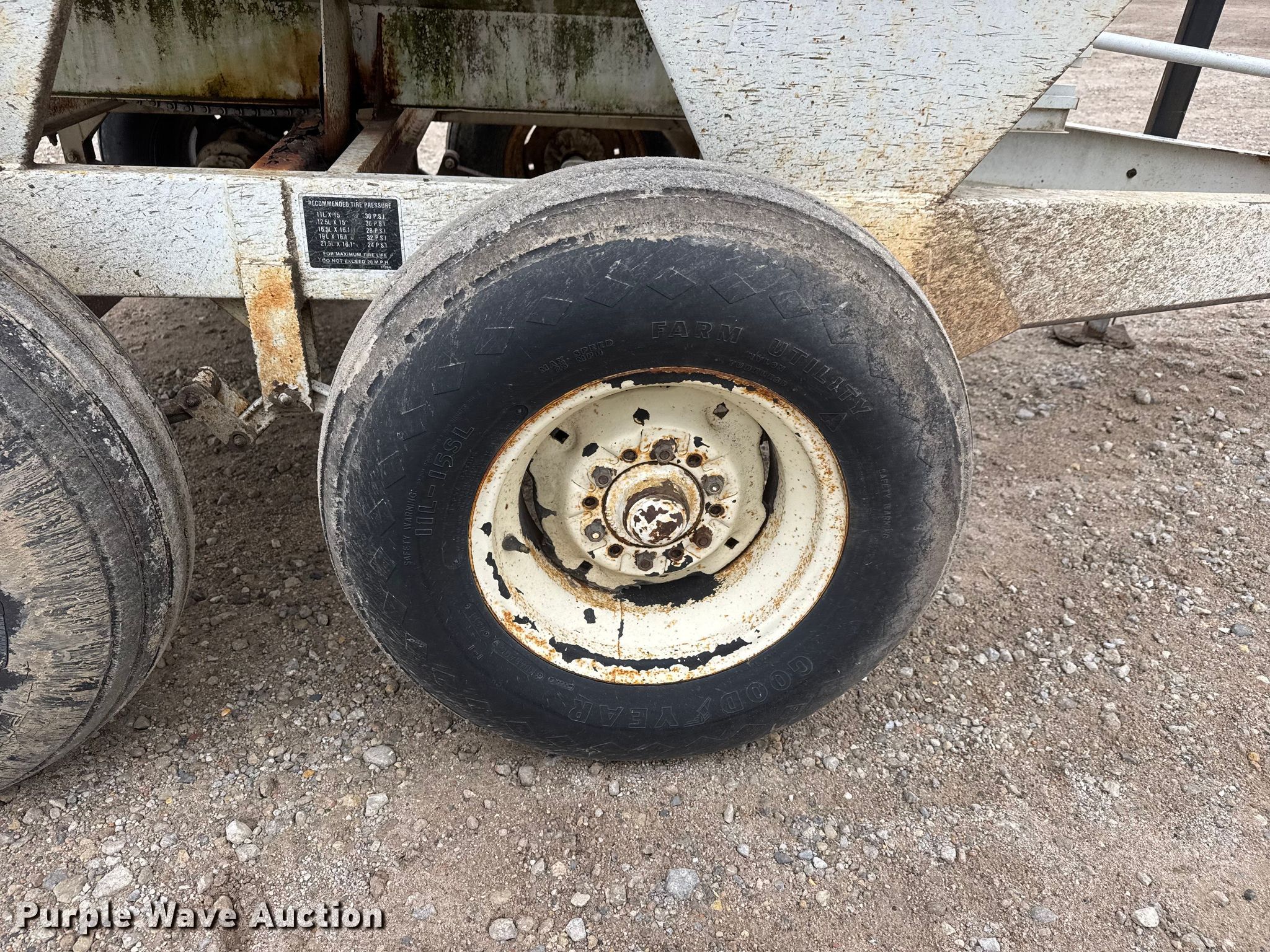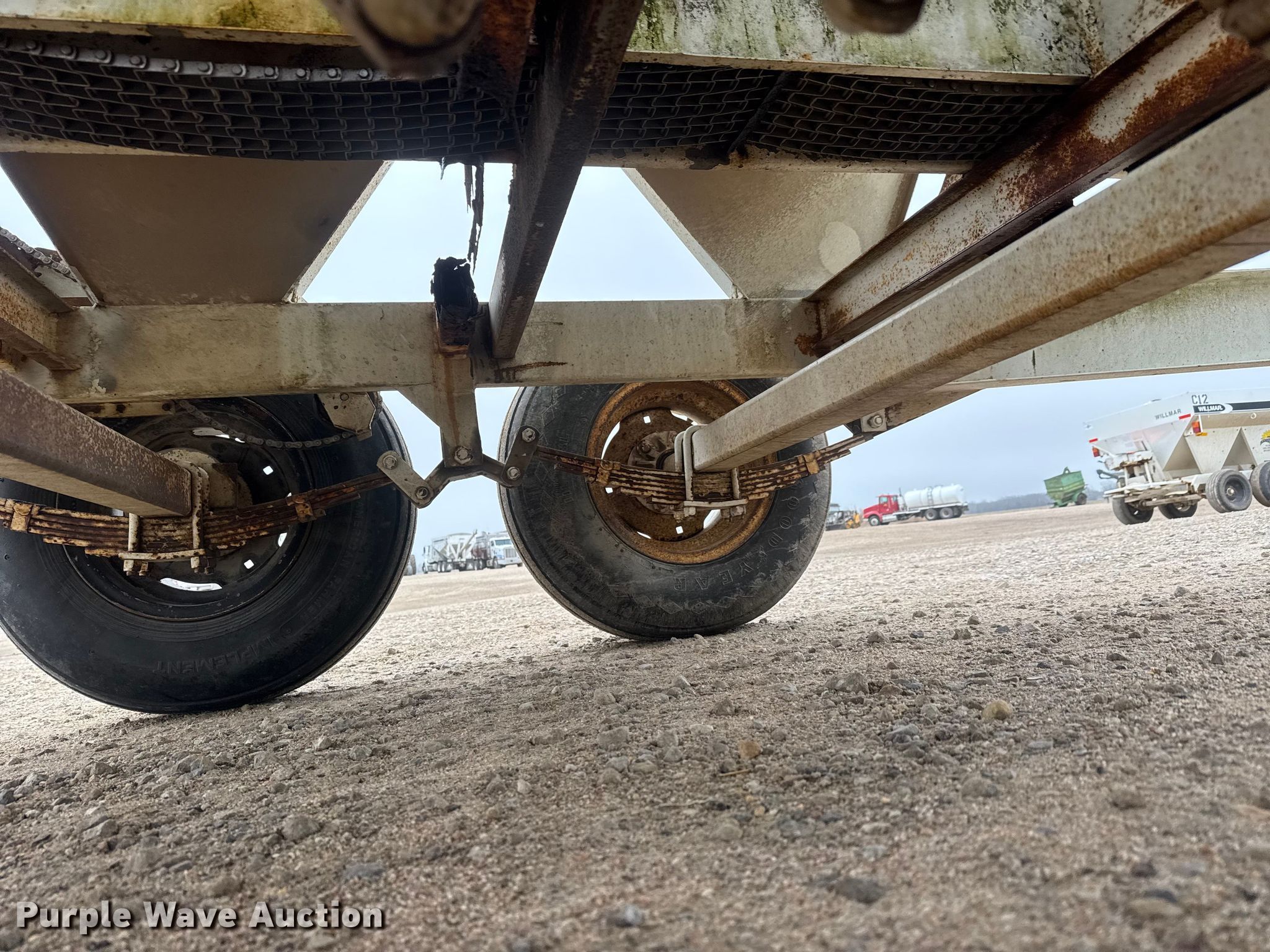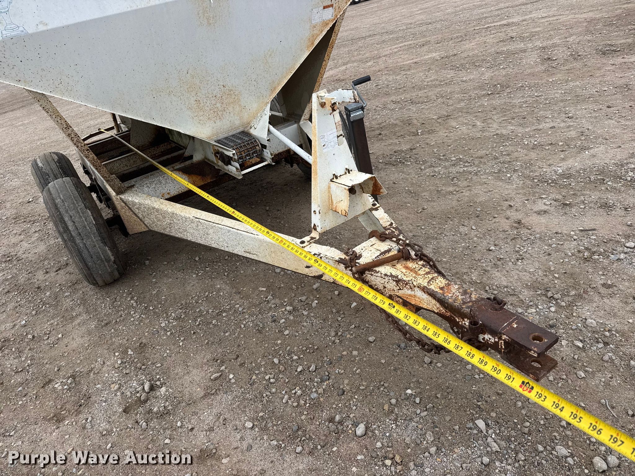 Willmar 500 spreader. Serial: 0010215446, Unit #: F3. Features Dry fertilizer spreader Dual spinners, Conveyor/chain Width: 7", Conveyor: Ground driven. Tires Size: 11L-15SL. Notes PTO shaft missing. Kanza Coop Andale Agronomy Center. Andale, KS 67001