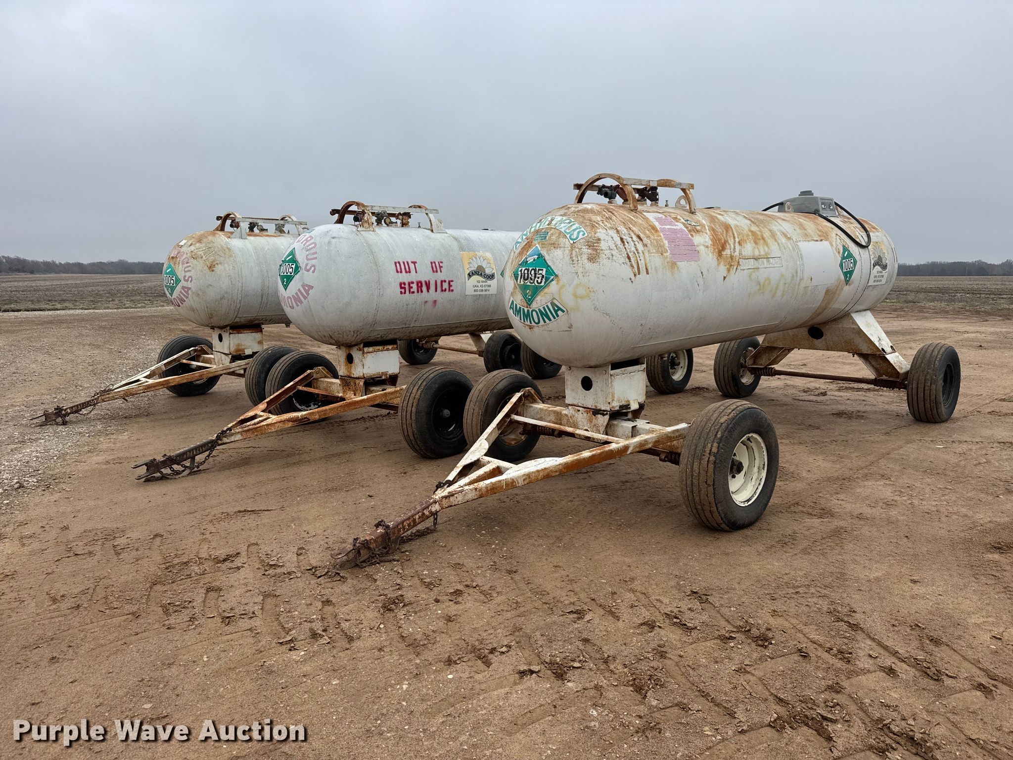 (3) NH3 tank trailers for sale in Andale, Kansas. Item ET1661 will sell on April 1st, 2026.