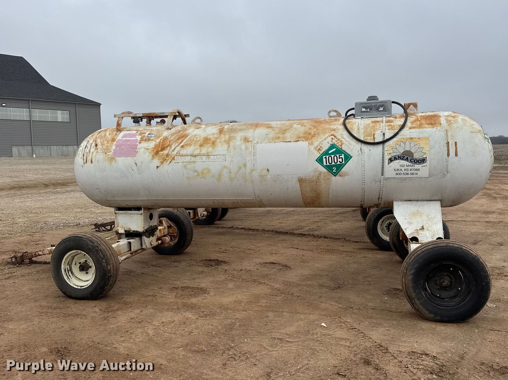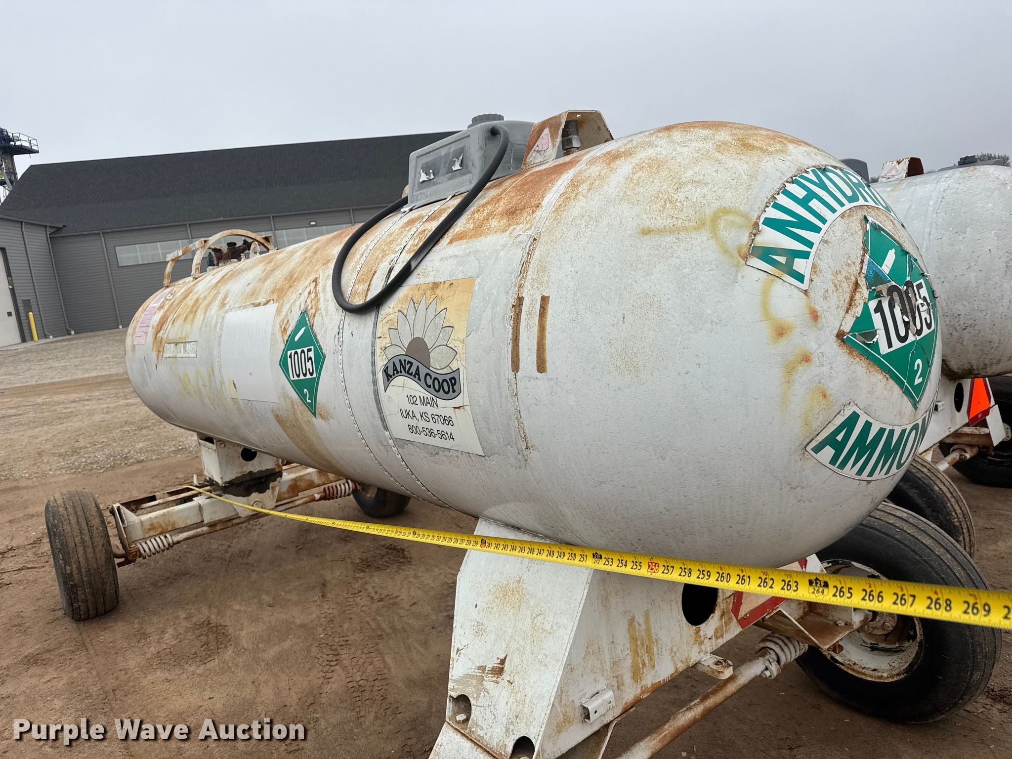 (3) NH3 tank trailers. Dimensions. Overall Length: 21', Width: 84". Features Tank type: Steel Capacity: 1,000 gallons. Tires Steel wheels, Size: 11L-15. Notes Unknown operating condition. This is worksite support equipment and will not come with a title. Transfer of ownership documentation will be a bill of sale. Kanza Coop Andale Agronomy Center. Andale, KS 67001