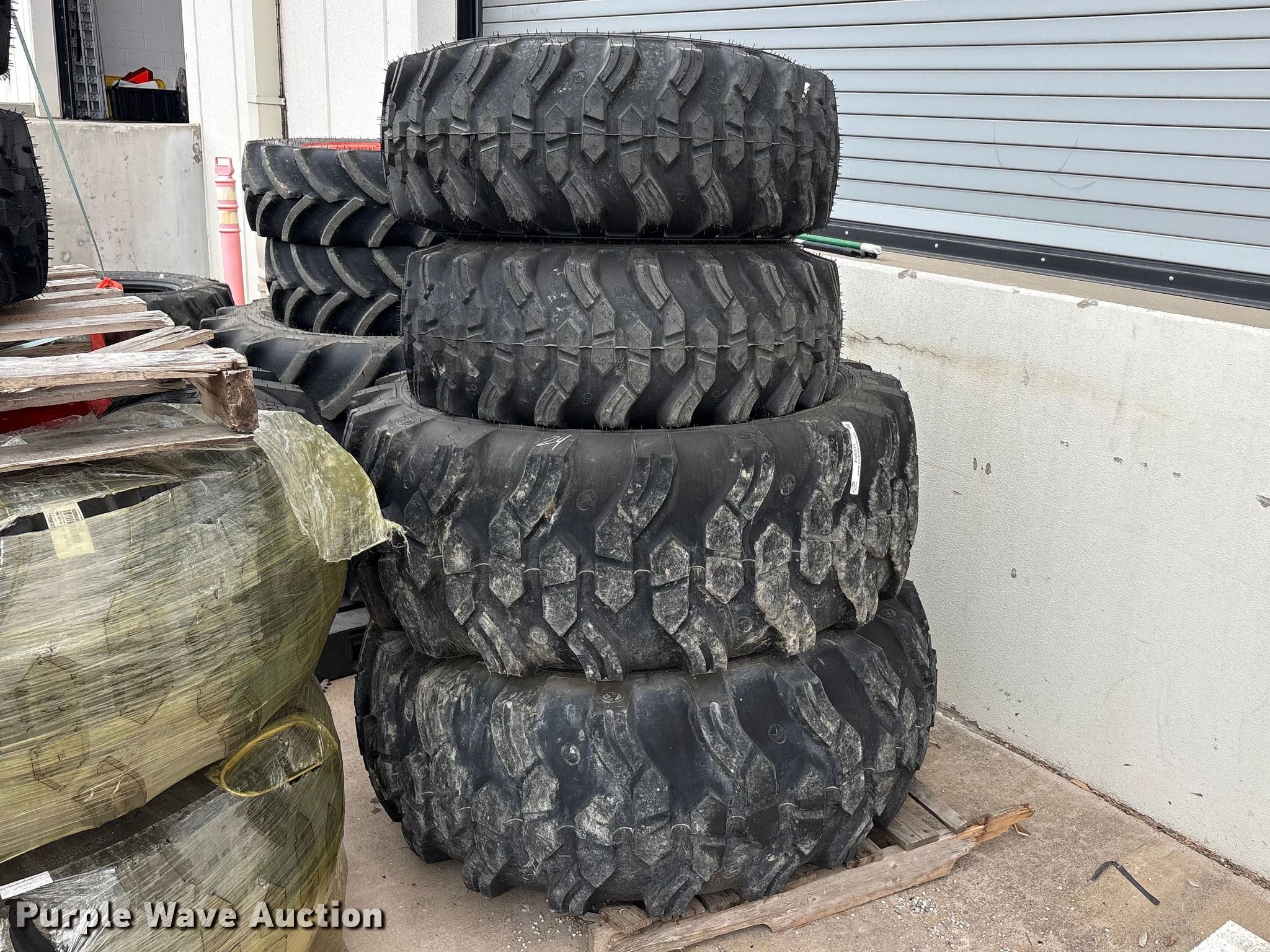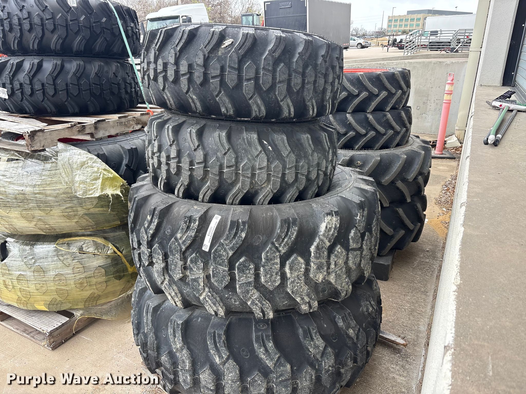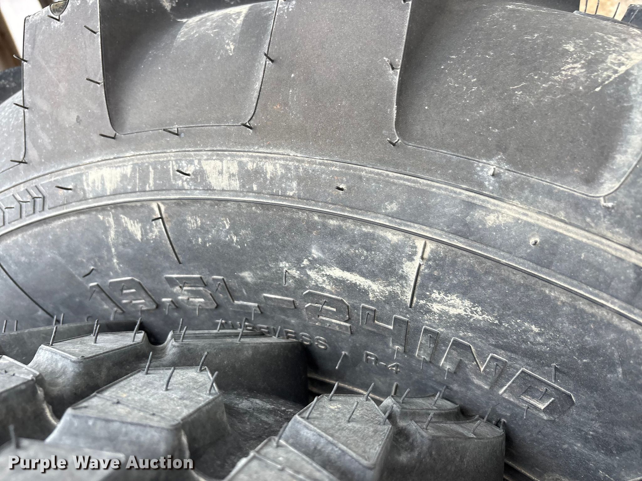 Purple Wave is selling a used Industrial Tires or Tracks in Texas. This item is a Tires and wheels with the following: (2) Titan 14-17.5NHS, (2) Titan 19.5L-24IND
