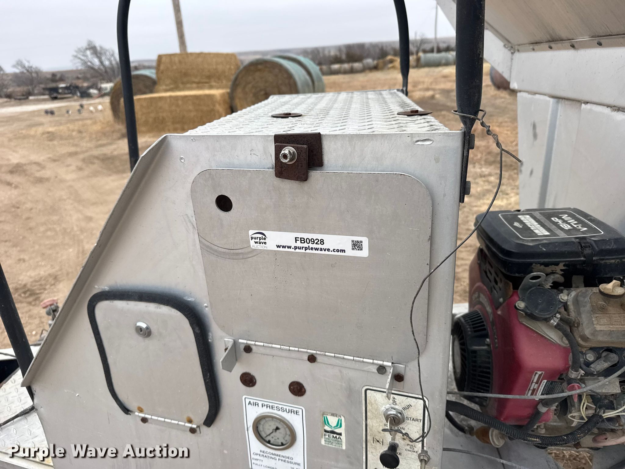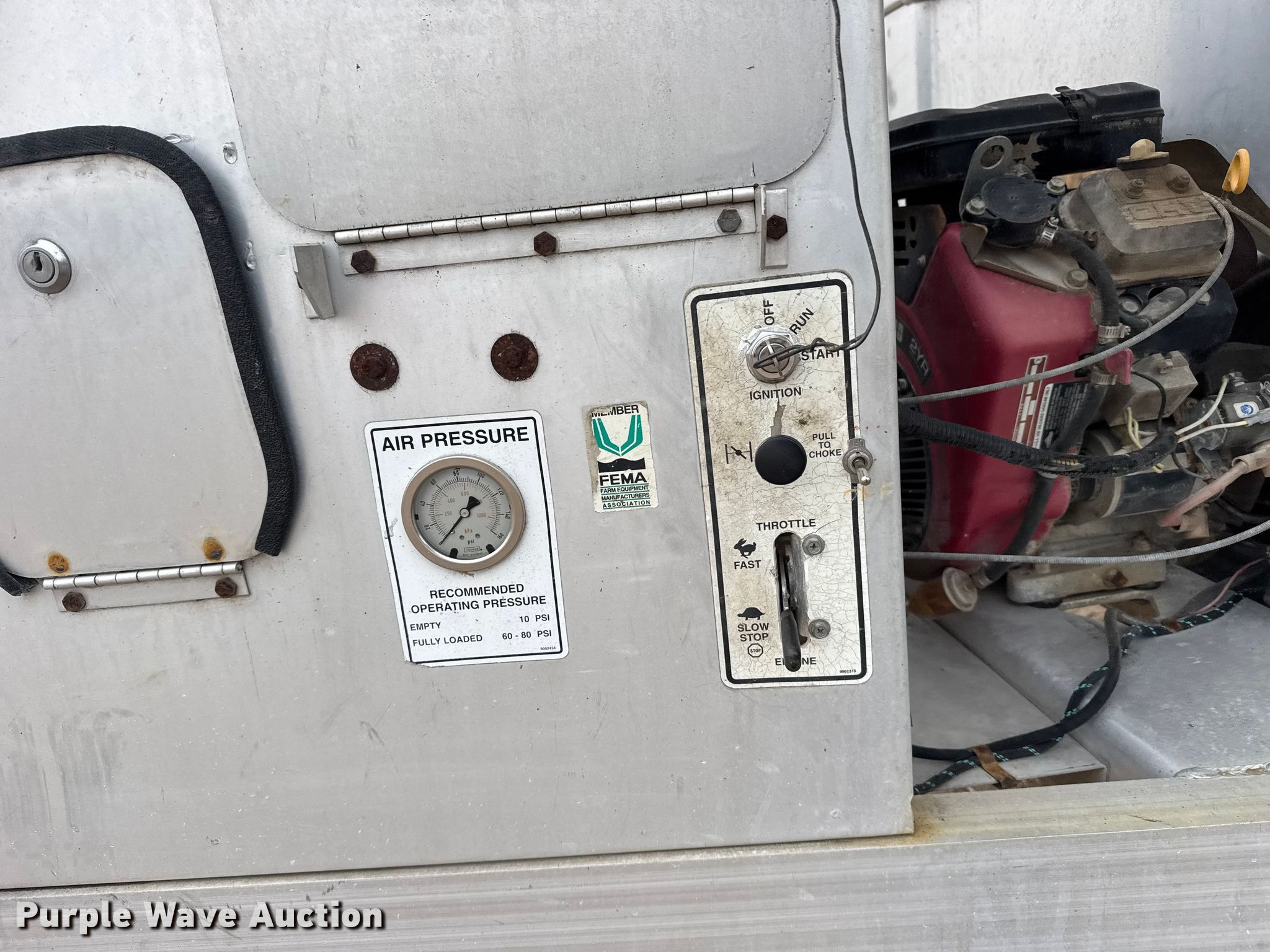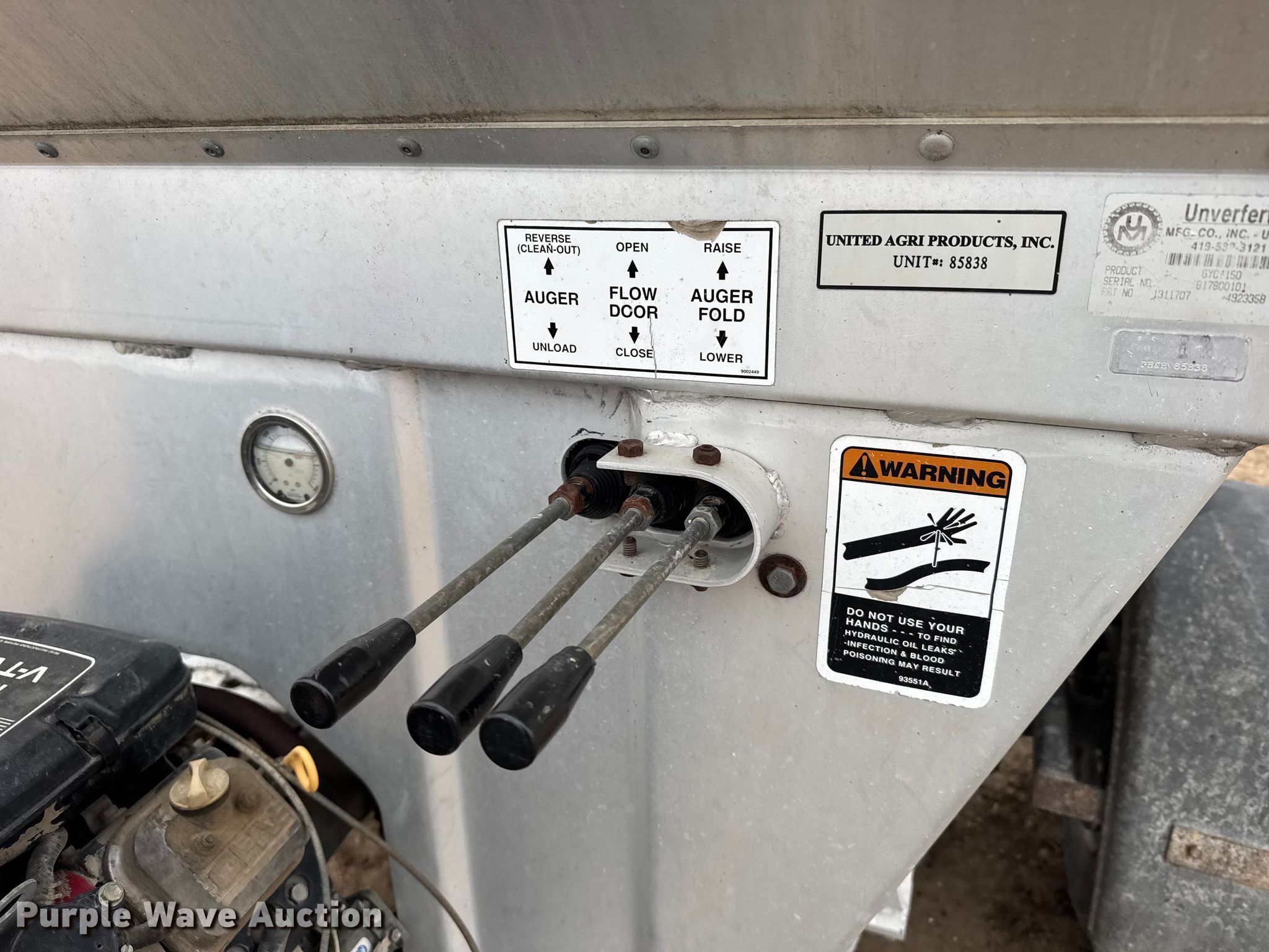 Brent GYC-150 seed tender. Serial: B17800101. Engine Briggs & Stratton Vanguard, Cylinders: 2, Fuel type: Gas, HP: 18. Features Auger diameter: 9", Shut-off gate: Hydraulic, Scales Digi star Univerferth 410, Monitor, Sight glass, Roll tarp, Ball hitch size: 2". Tires Front: 12-16.5. Ellis, KS 67637