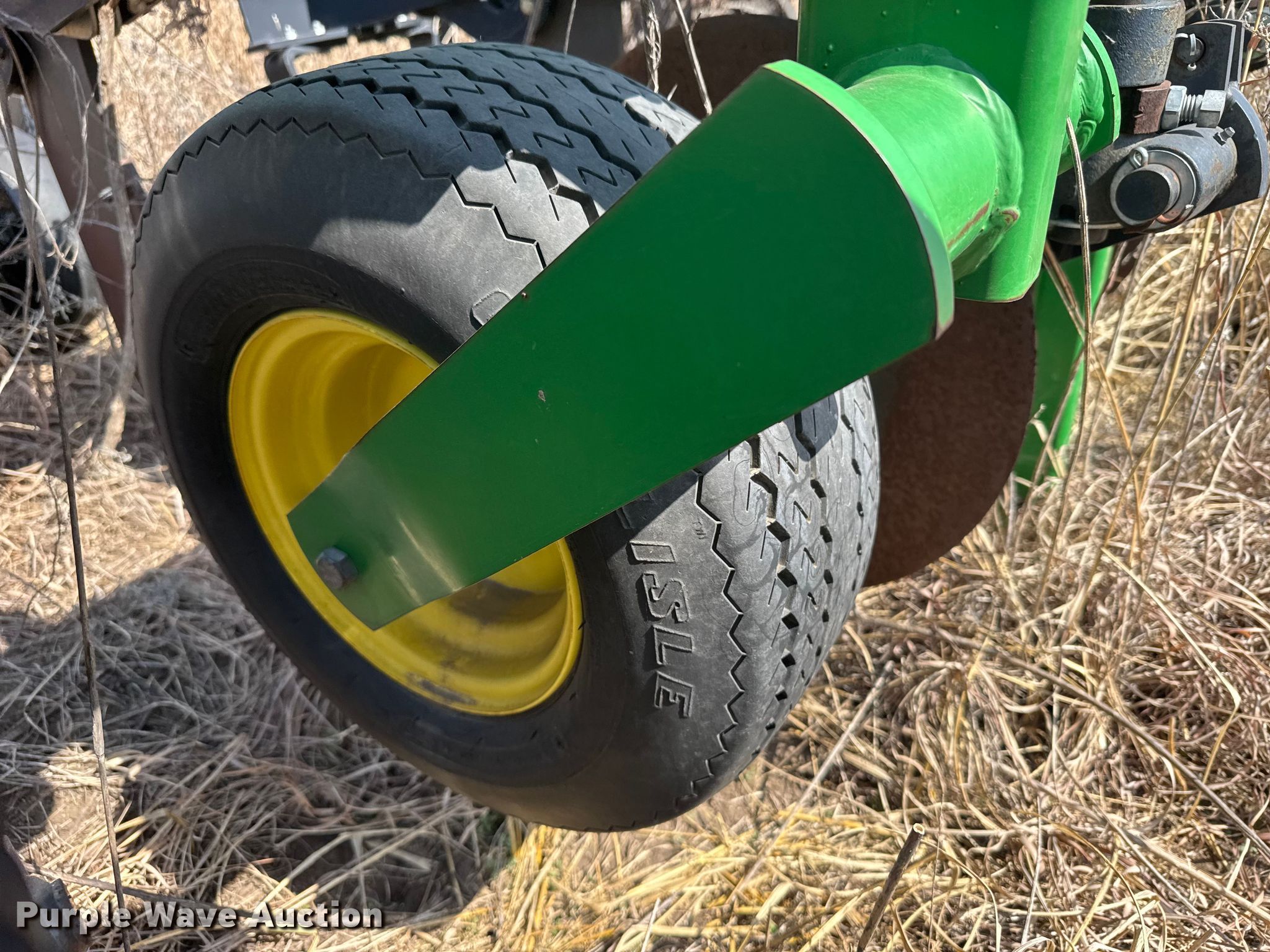 2015 John Deere 2100 in-line ripper. Overall width: 21', Serial: 1A82100XCF0760112. Features Blade diameter Front: 22", Spacing: 30", Rippers: 7 Length: 24", Spacing: 30", Transport lights, Hitch: Three point. Tires Gauge wheels Size: 20.5x8.0-10. Russell, KS 67665