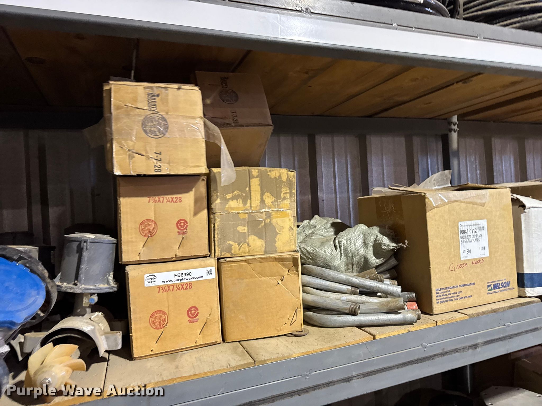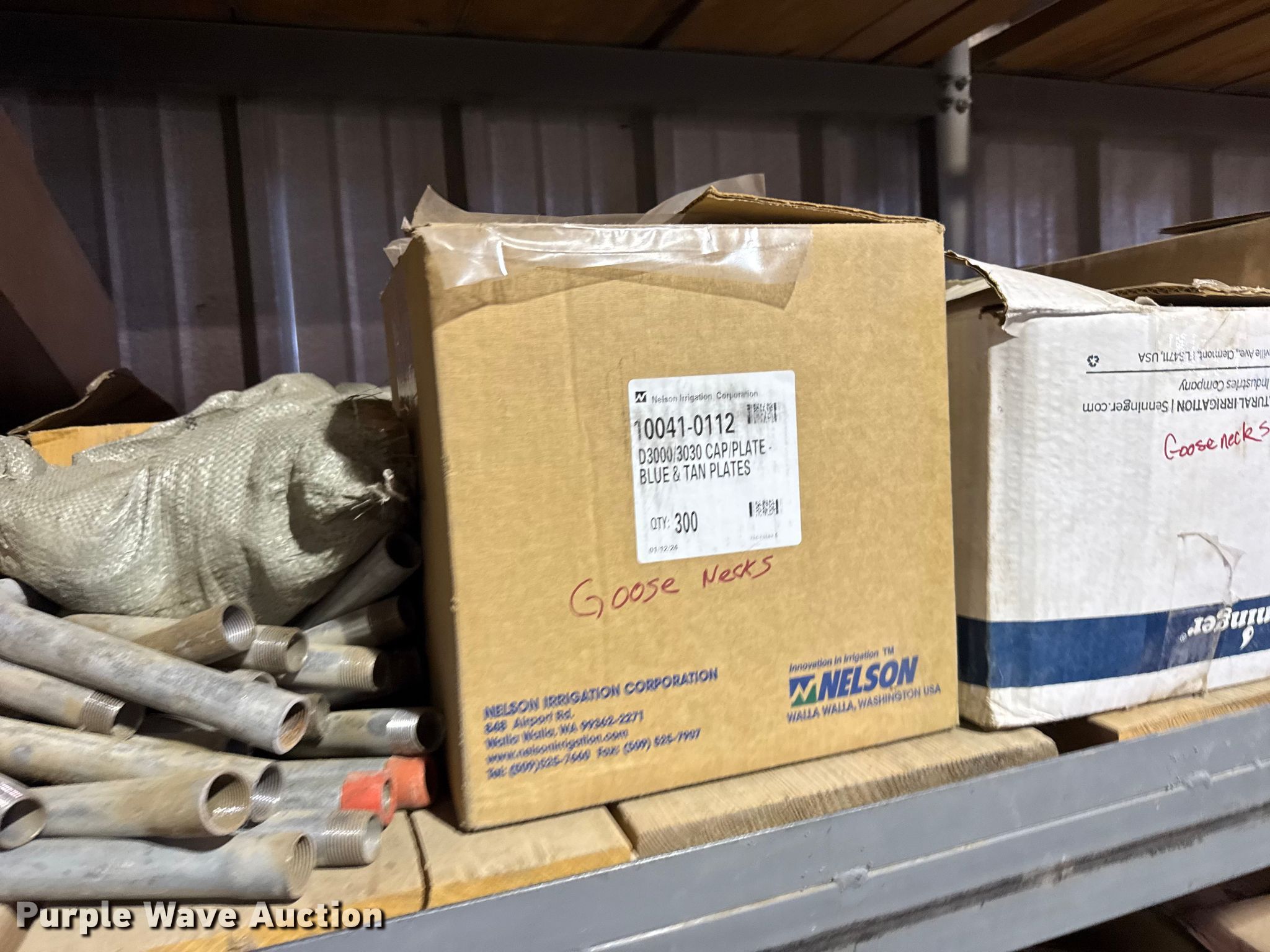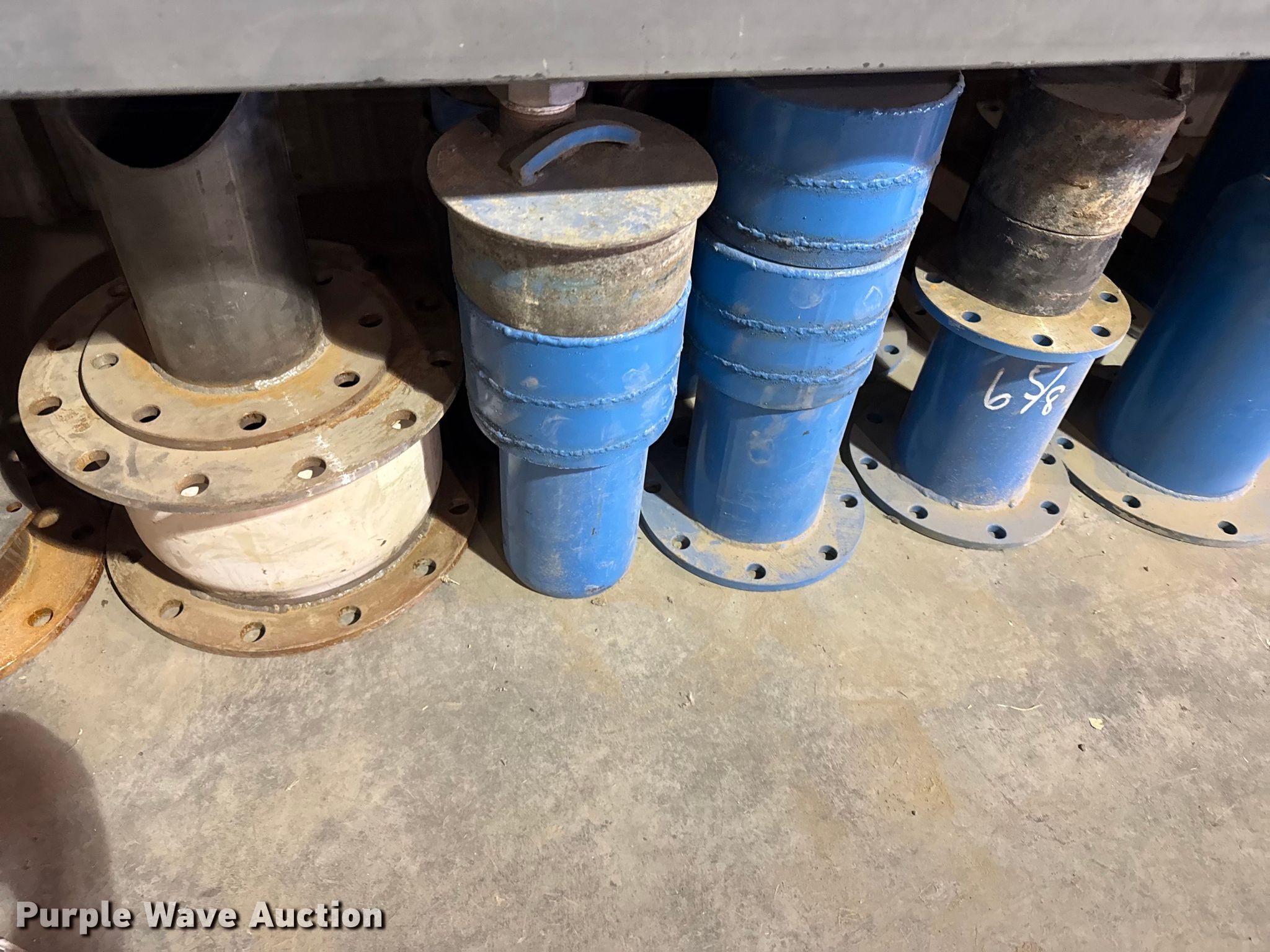 Purple Wave is selling a used Irrigation Equip. Attach. in Kansas. This item is a Pivot irrigation parts with the following: Pipe flanges, Pipe, Hitches, Impellers, Shelving not included