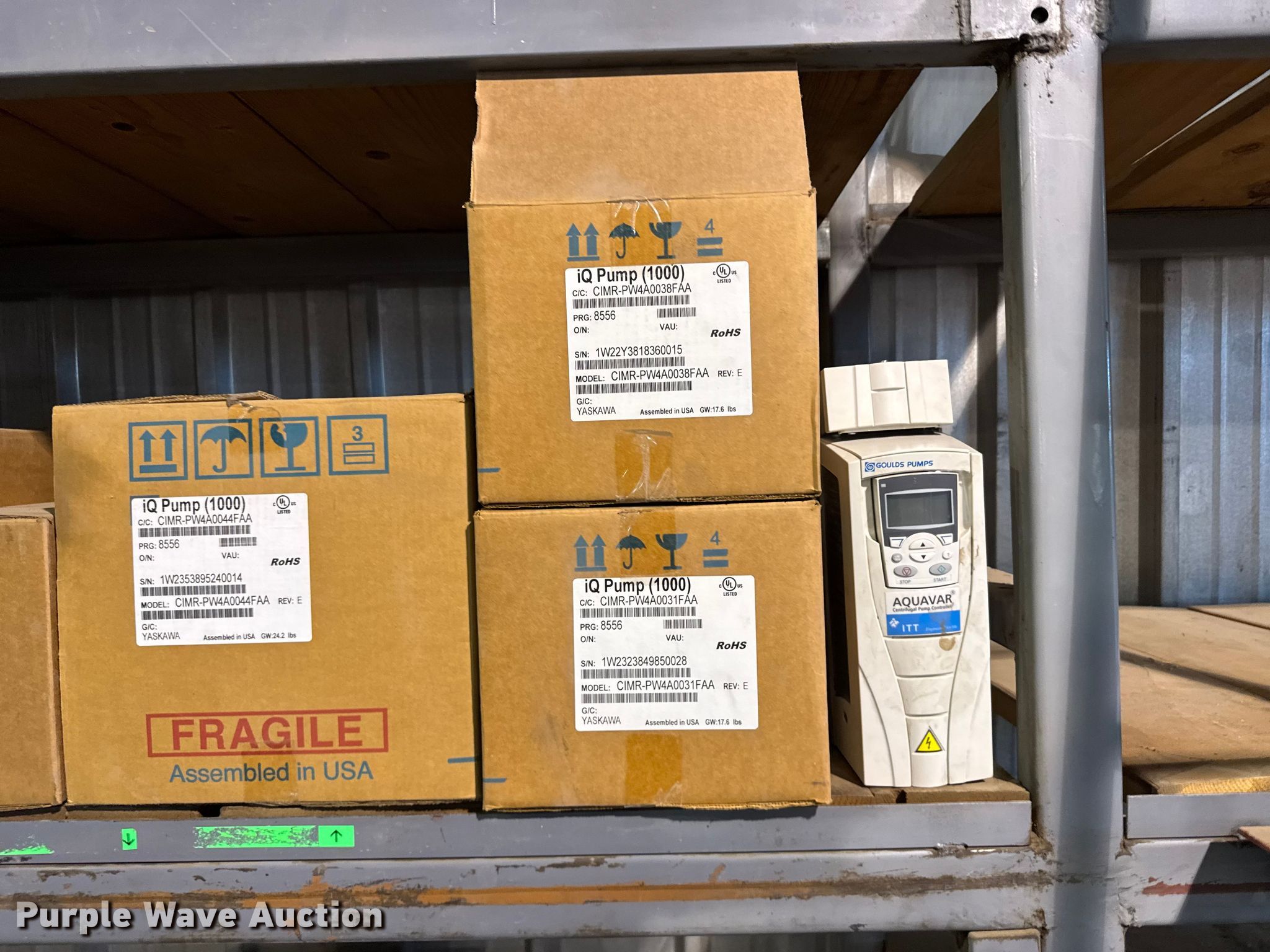 Purple Wave is selling a used Irrigation Equip. Attach. in Kansas. This item is a IQ pump 1000 with the following: Aquavar pump controller, (7) junction boxes, Shelving not included