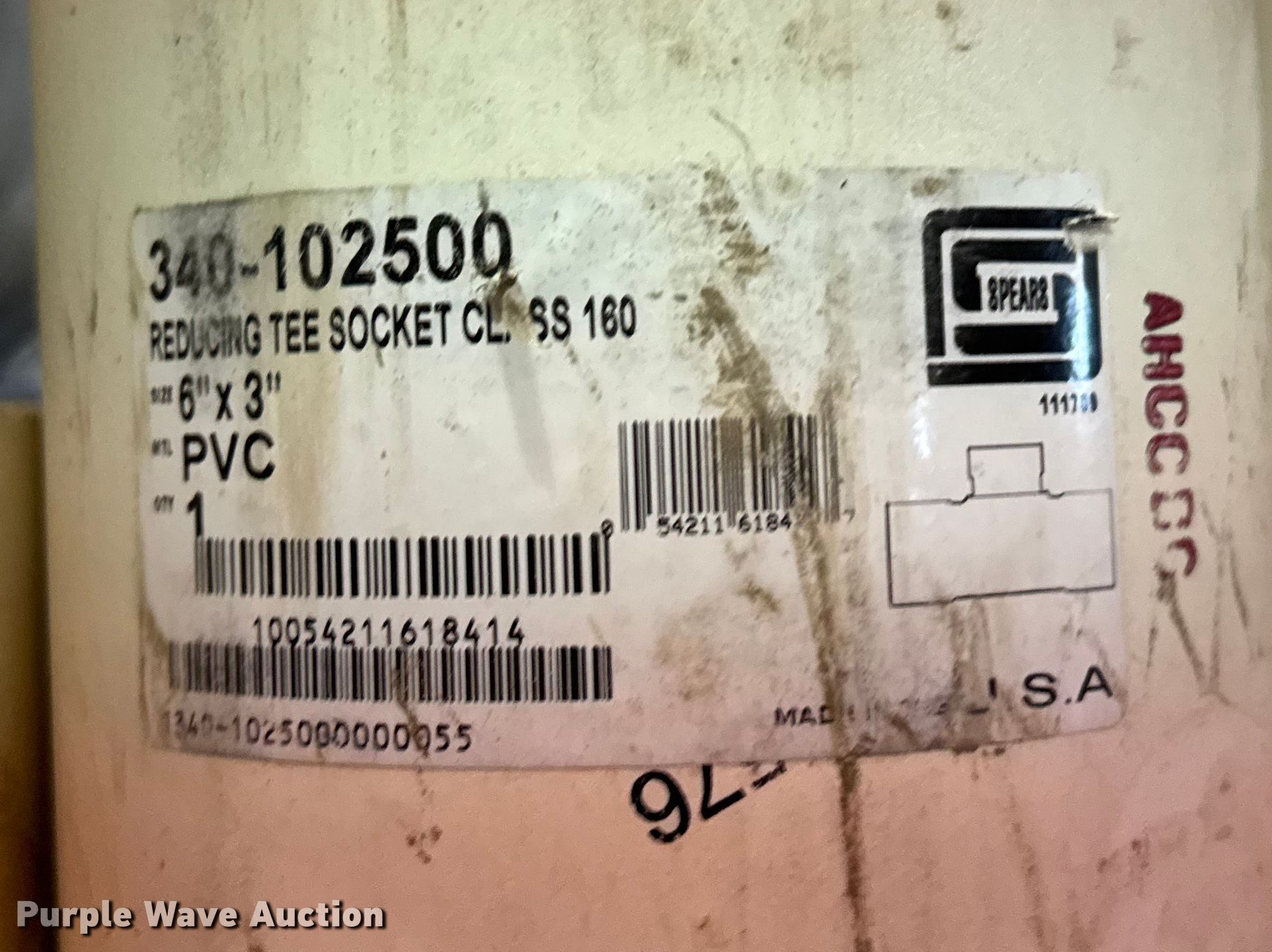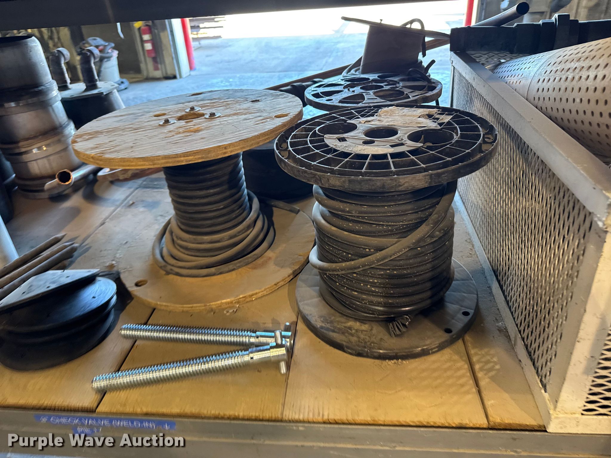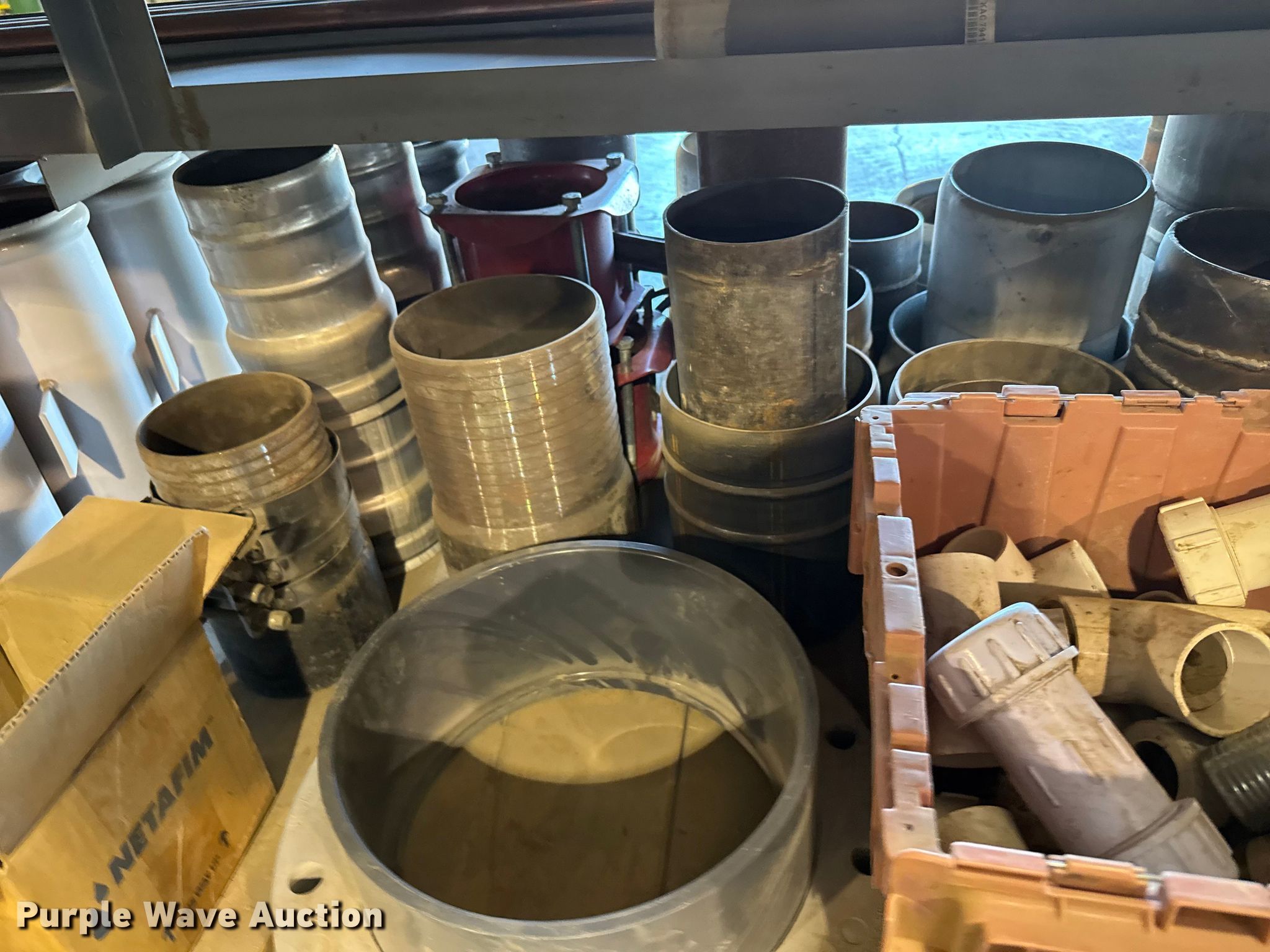 Purple Wave is selling a used Pipe in Kansas. This item is a PVC pipe fittings with the following: Wire, Shelving not included